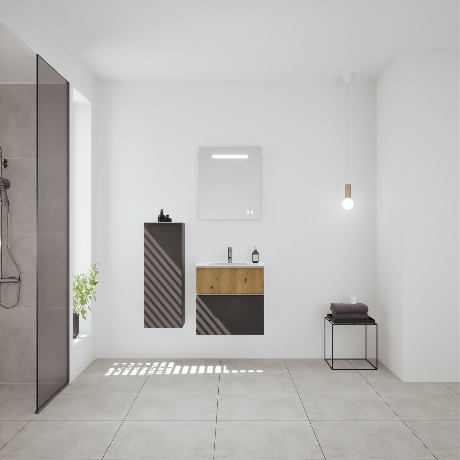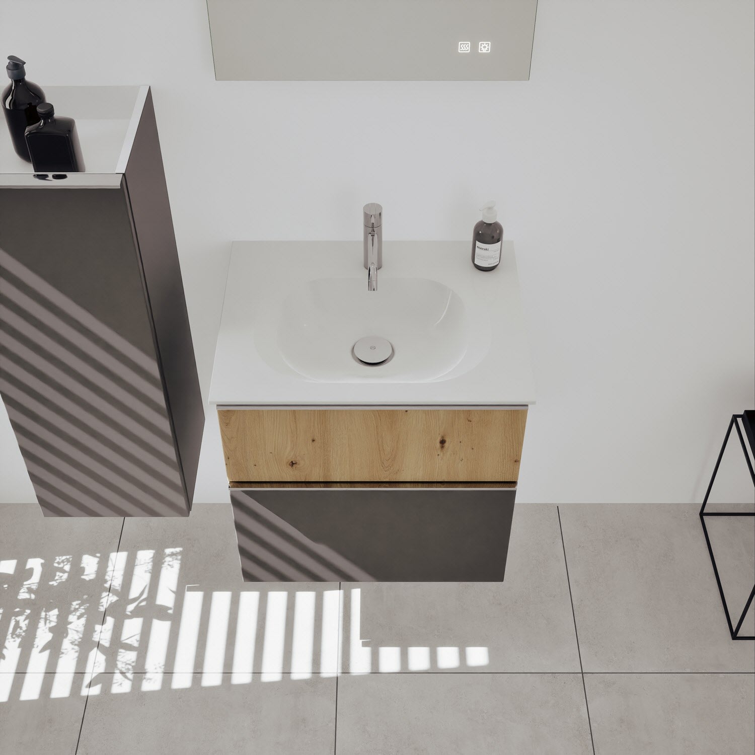 burgbad Fiumo 2.0 Mineralguss-Waschtisch mit Waschtischunterschrank 62 cm, mit Griff G0146