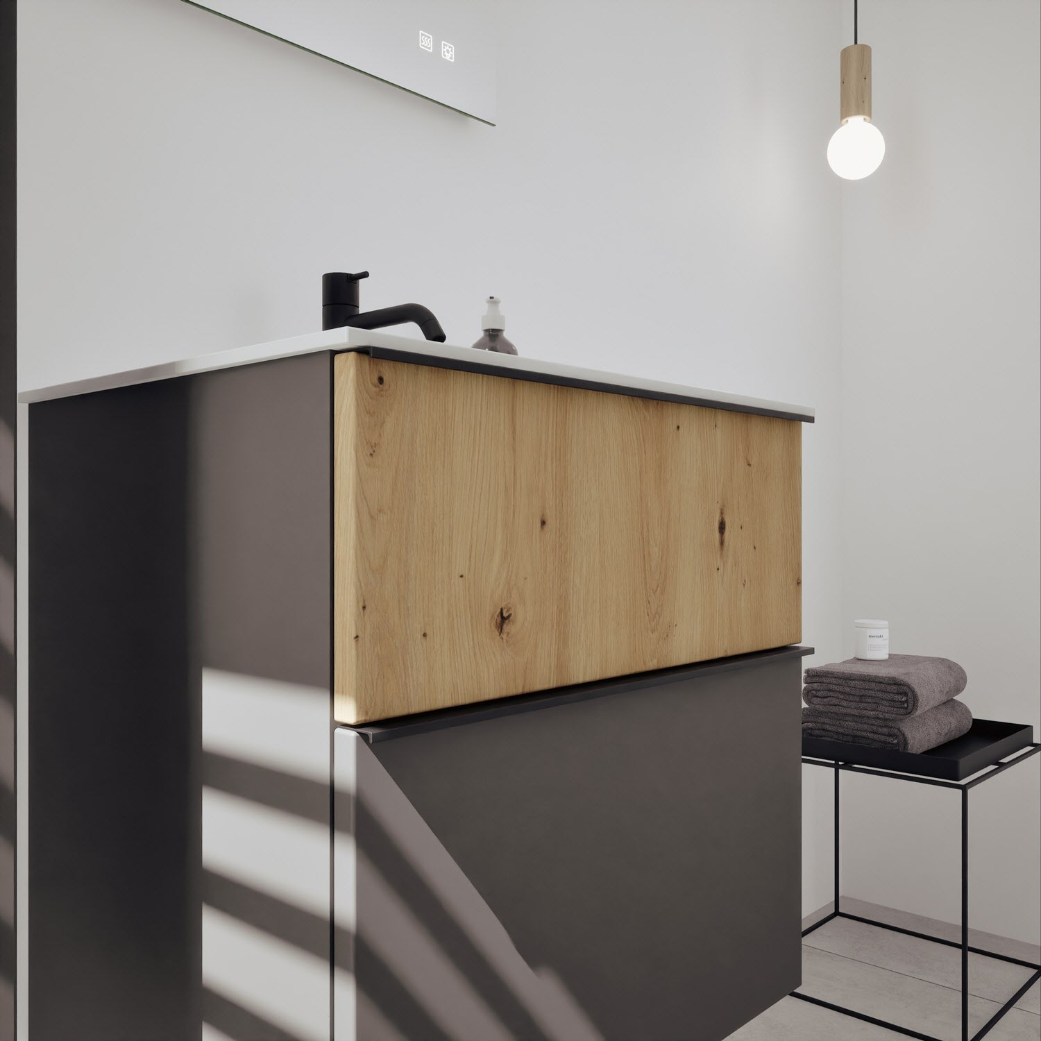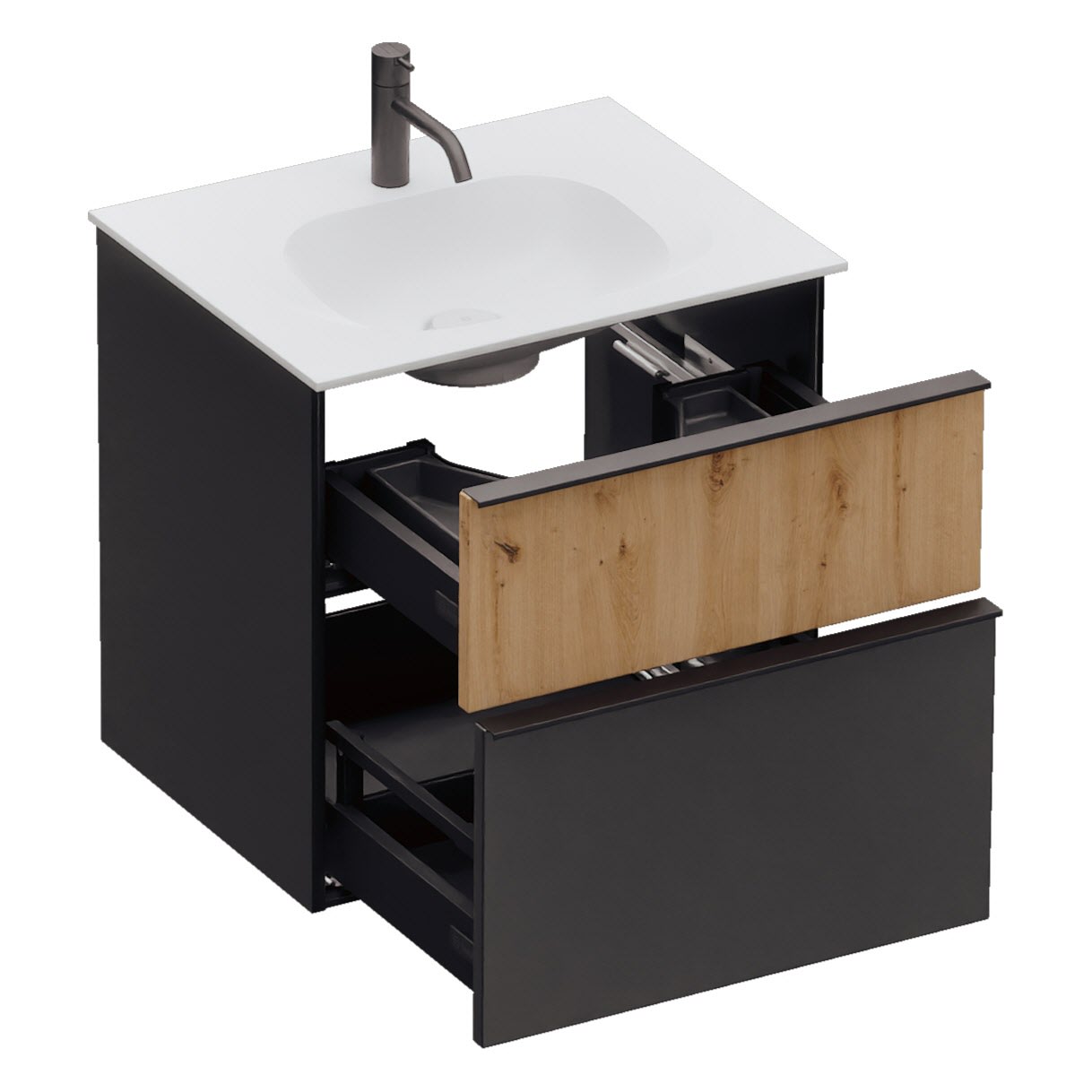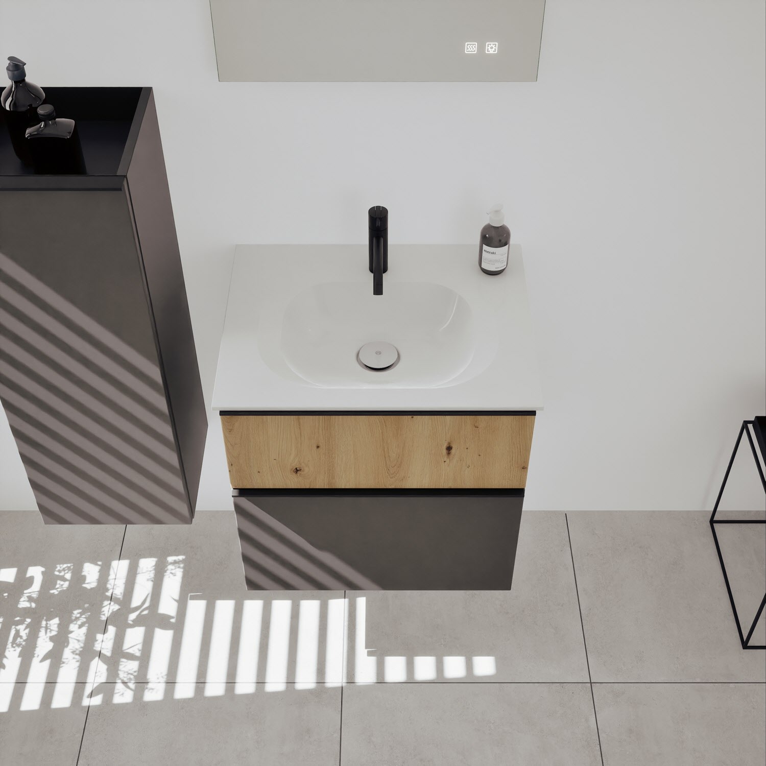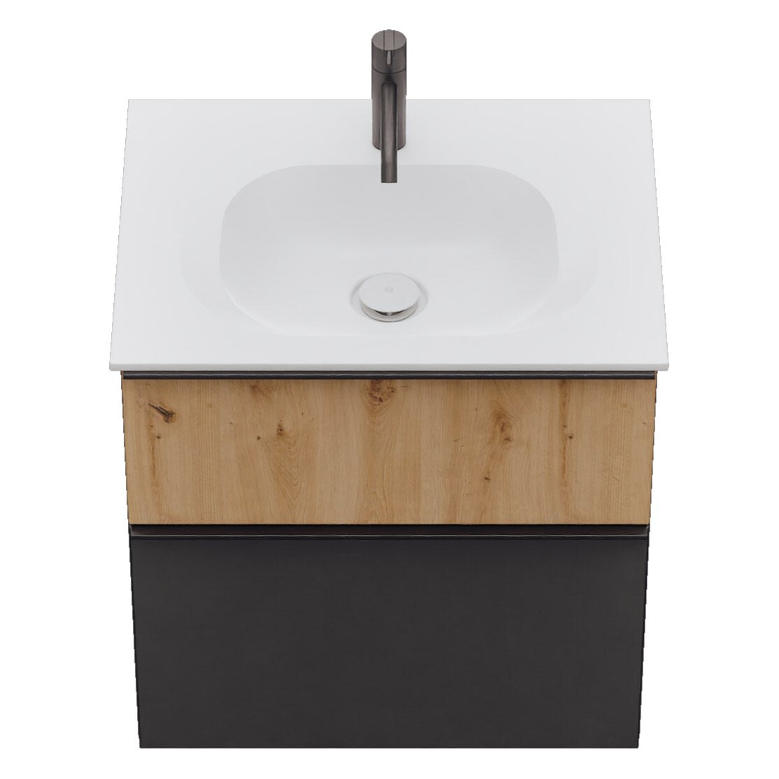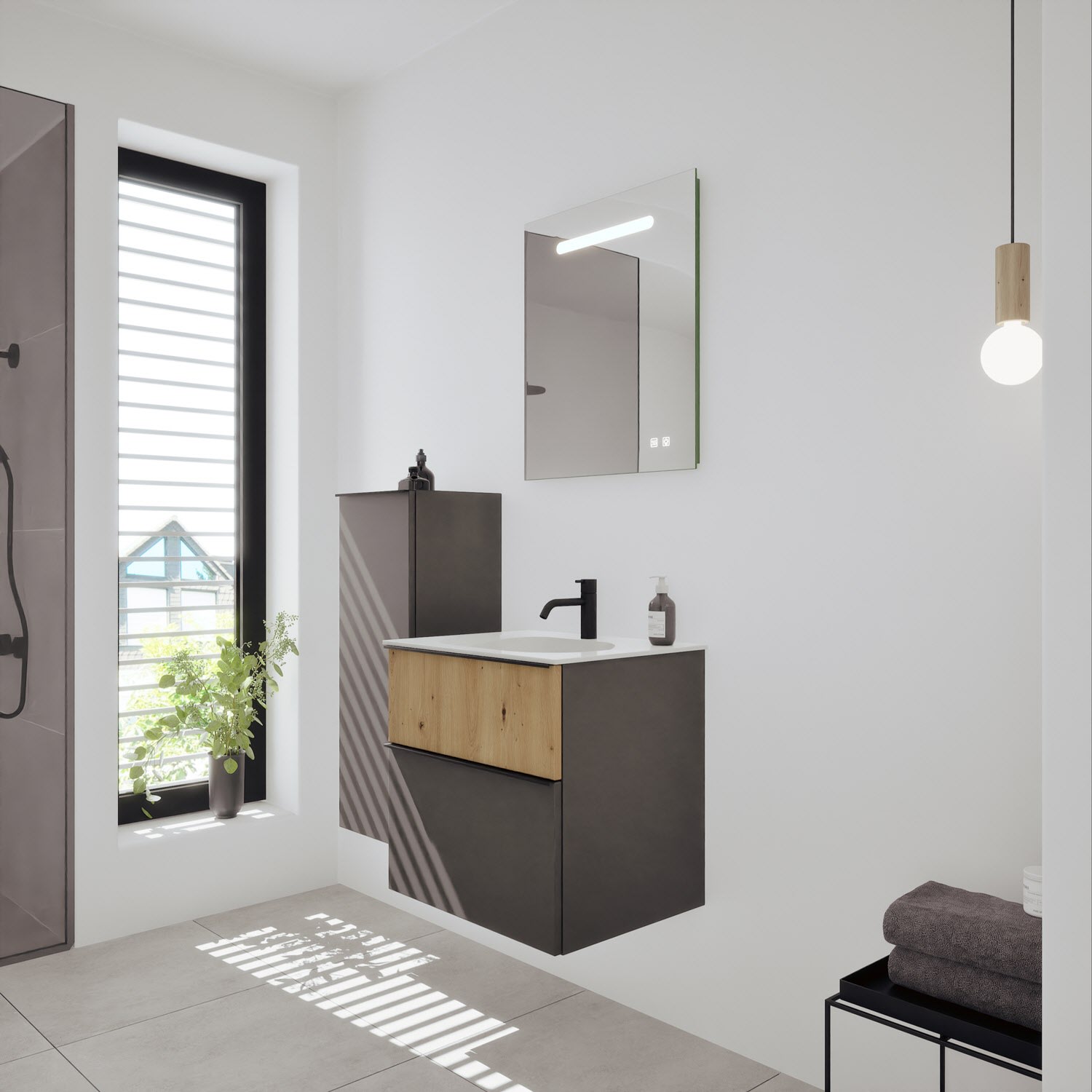 burgbad Fiumo 2.0 Mineralguss-Waschtisch mit Waschtischunterschrank 62 cm, mit Griff G0200