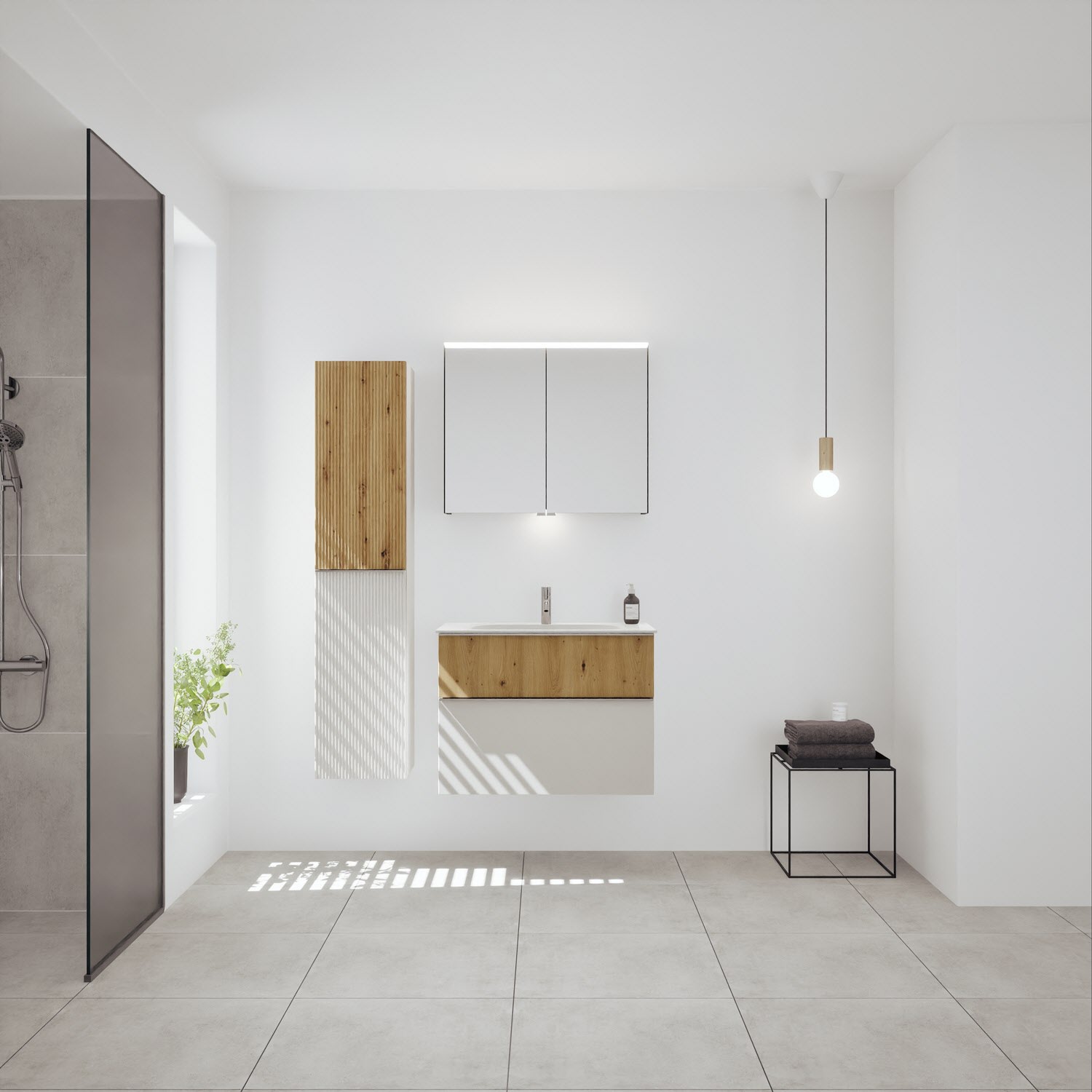 burgbad Fiumo 2.0 Mineralguss-Waschtisch mit Waschtischunterschrank 82 cm, mit Griff G0146