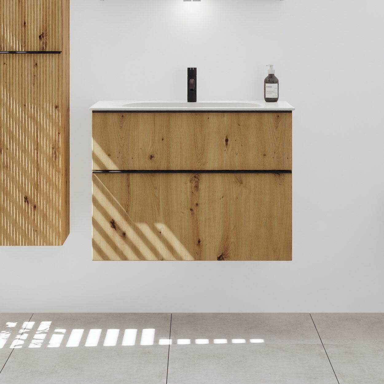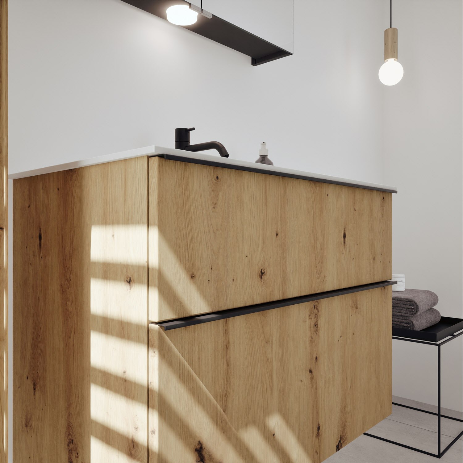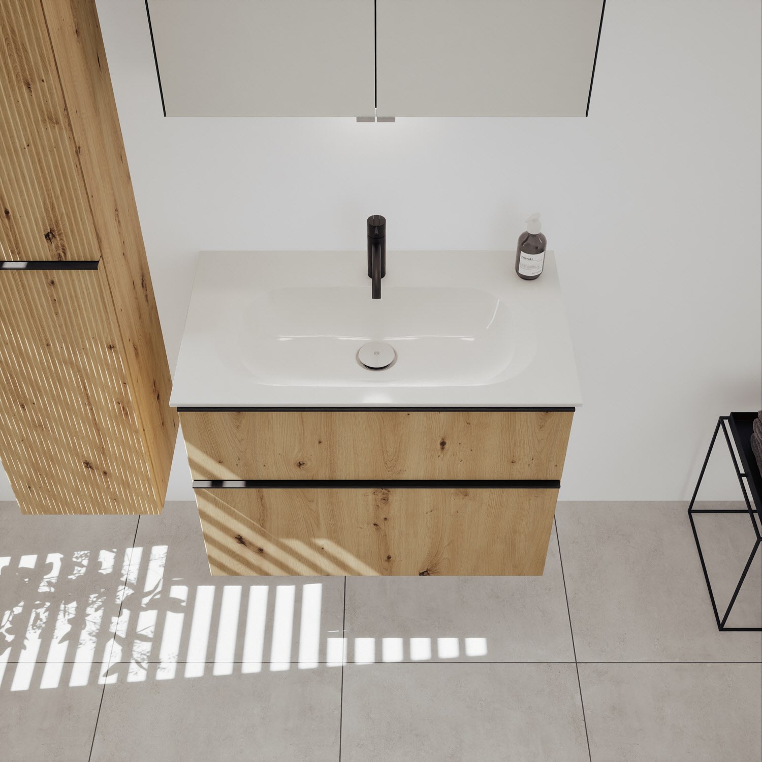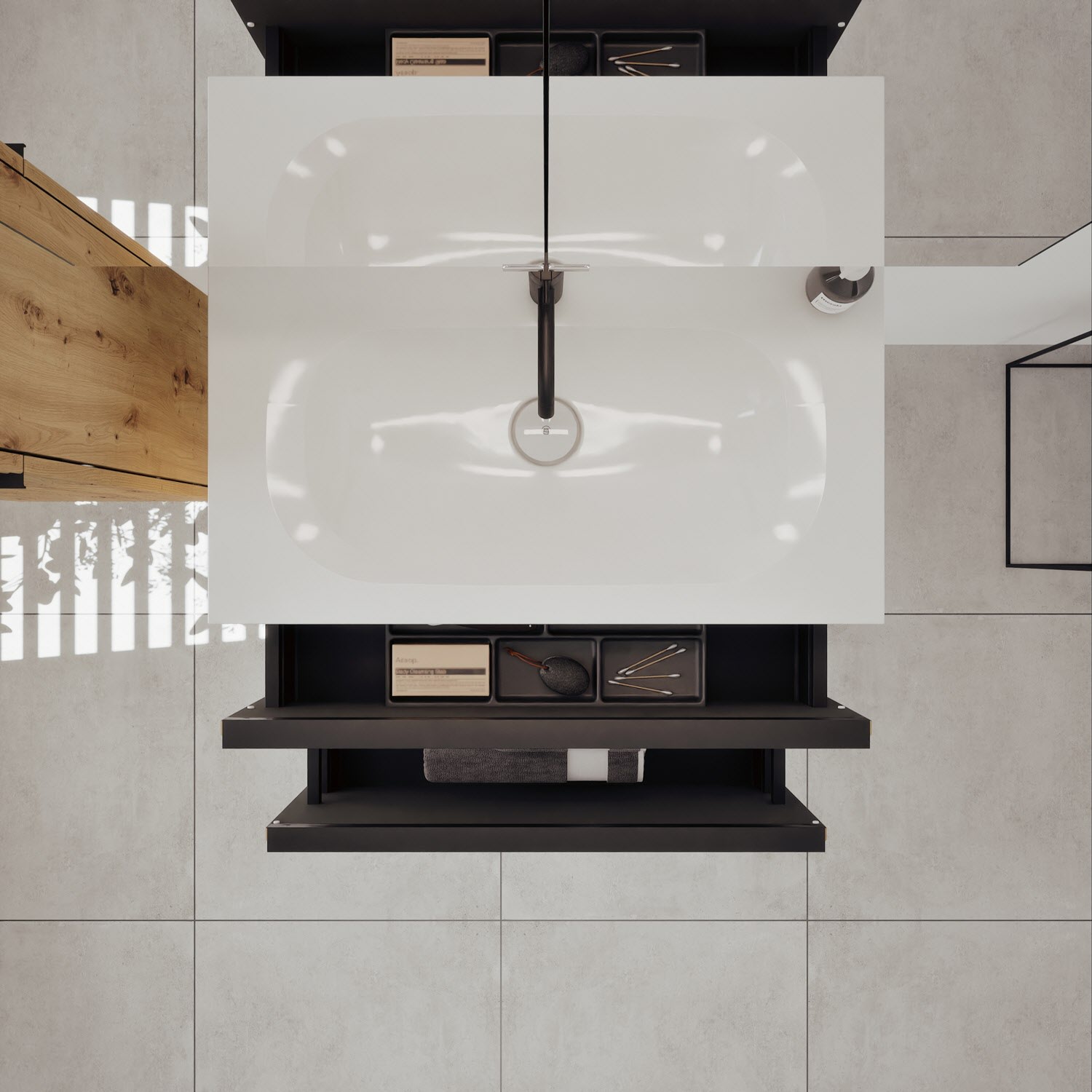 burgbad Fiumo 2.0 Mineralguss-Waschtisch mit Waschtischunterschrank 82 cm, mit Griff G0200