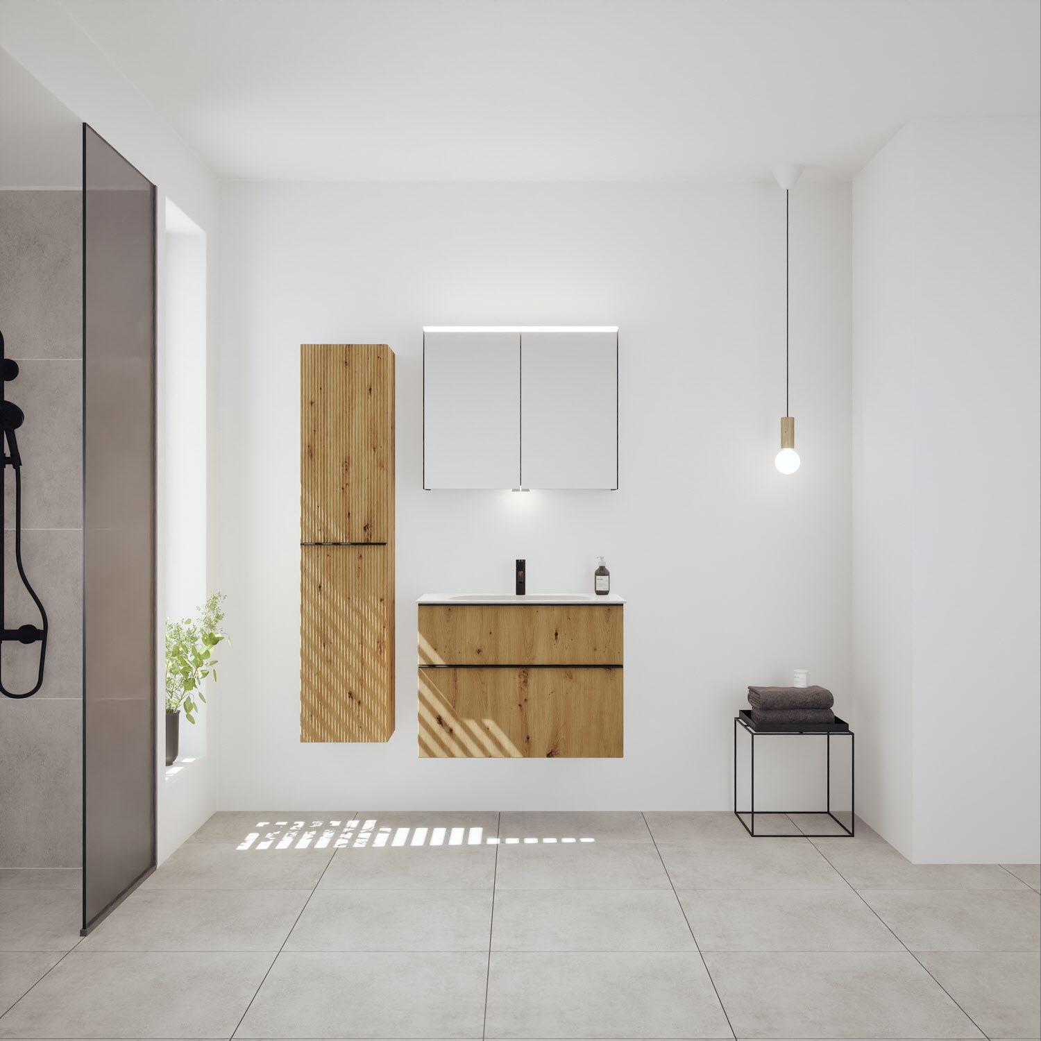 burgbad Fiumo 2.0 Spiegelschrank 80,6 cm mit LED-Aufsatzleuchte und Waschplatzbeleuchtung, 2 Spiegeltüren
