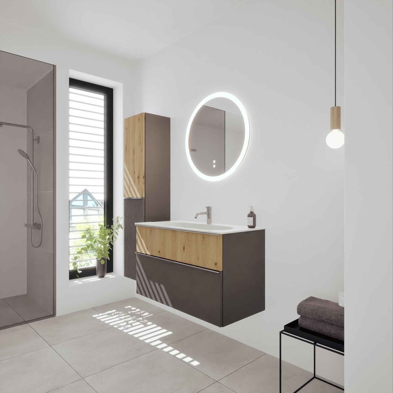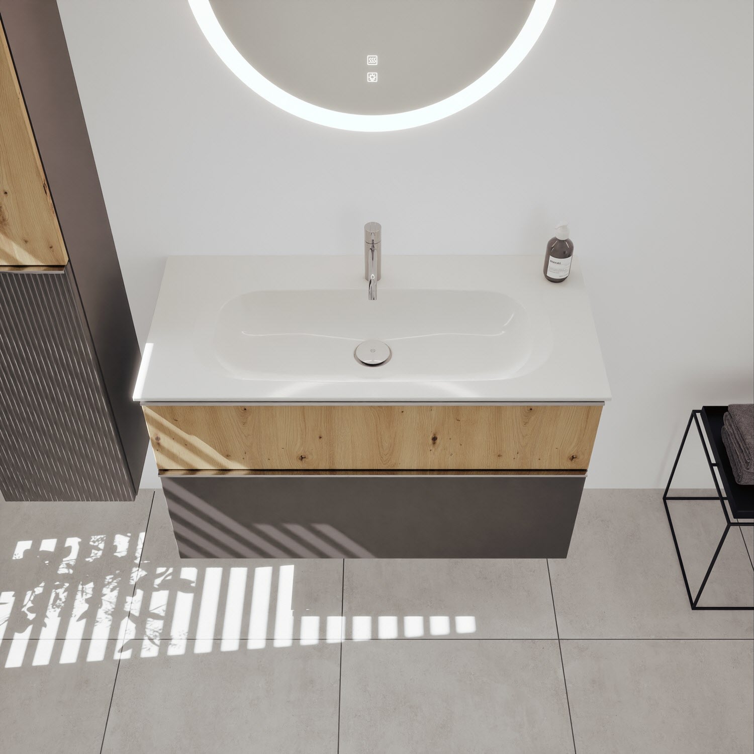 burgbad Fiumo 2.0 Mineralguss-Waschtisch mit Waschtischunterschrank 102 cm, mit Griff G0146