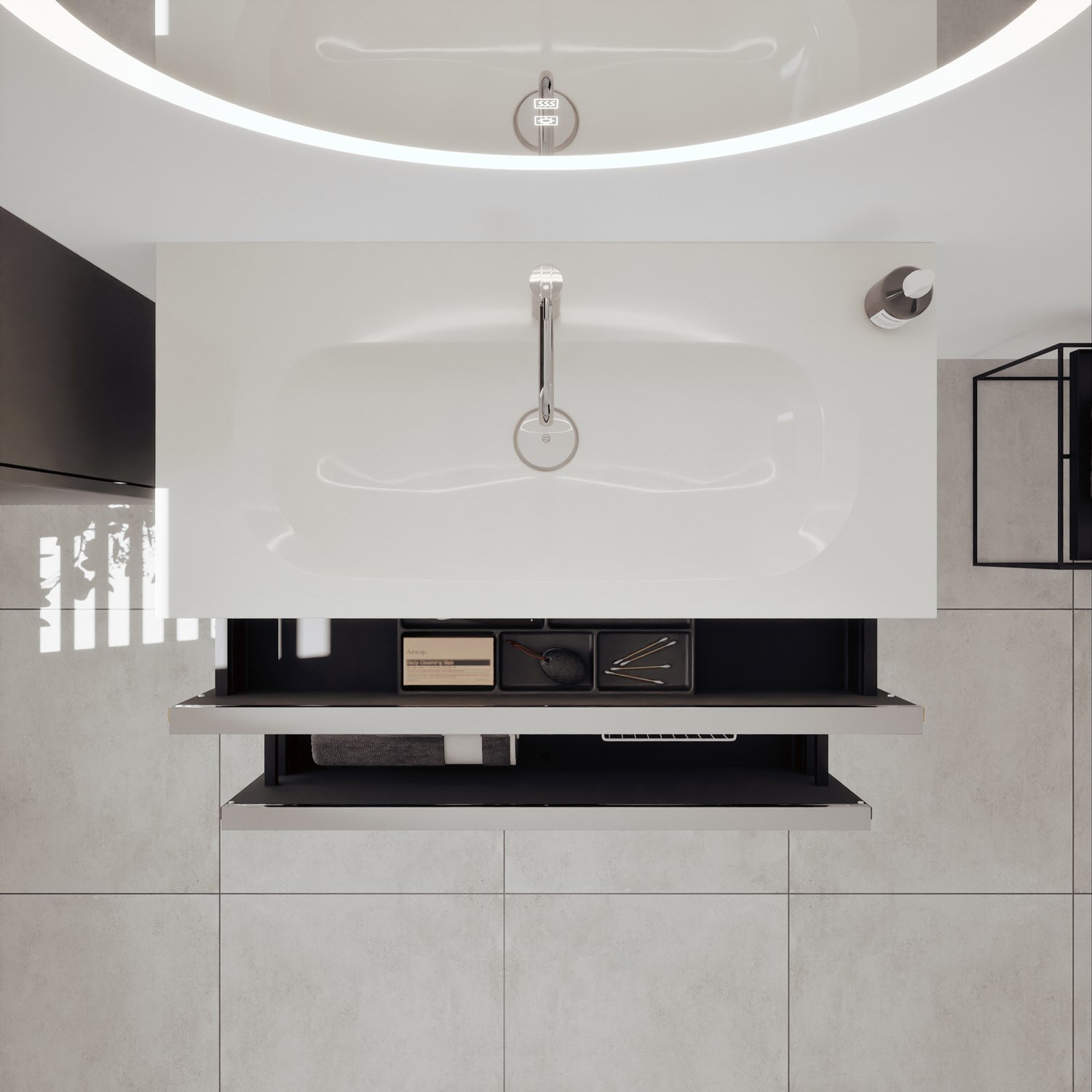 burgbad Cleanflow+ Ablaufabdeckung mit Staufunktion für burgbad Mineralguss-Waschtische