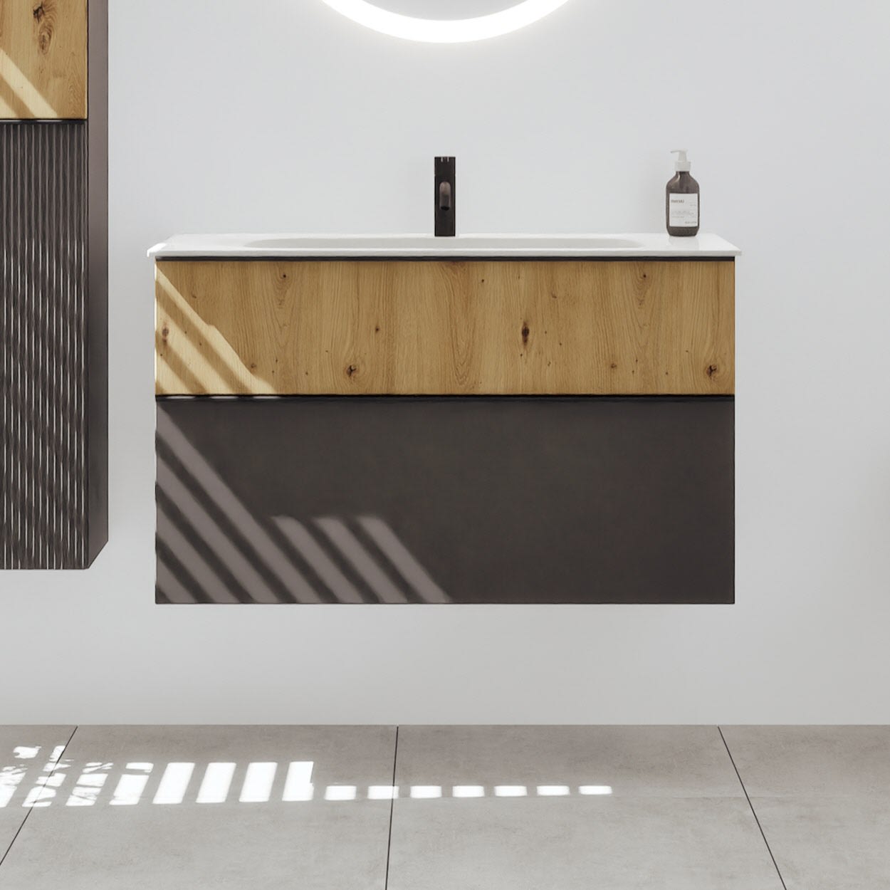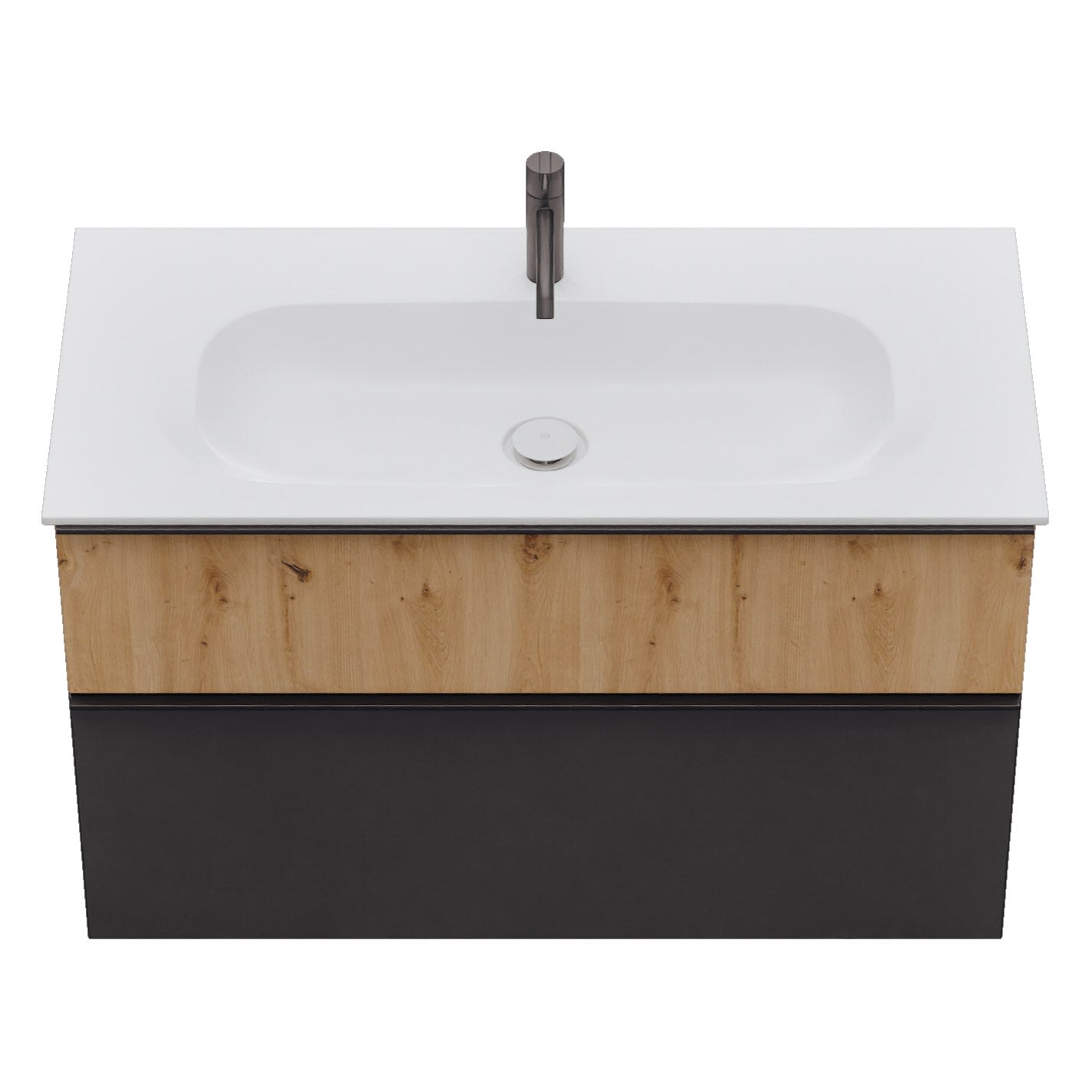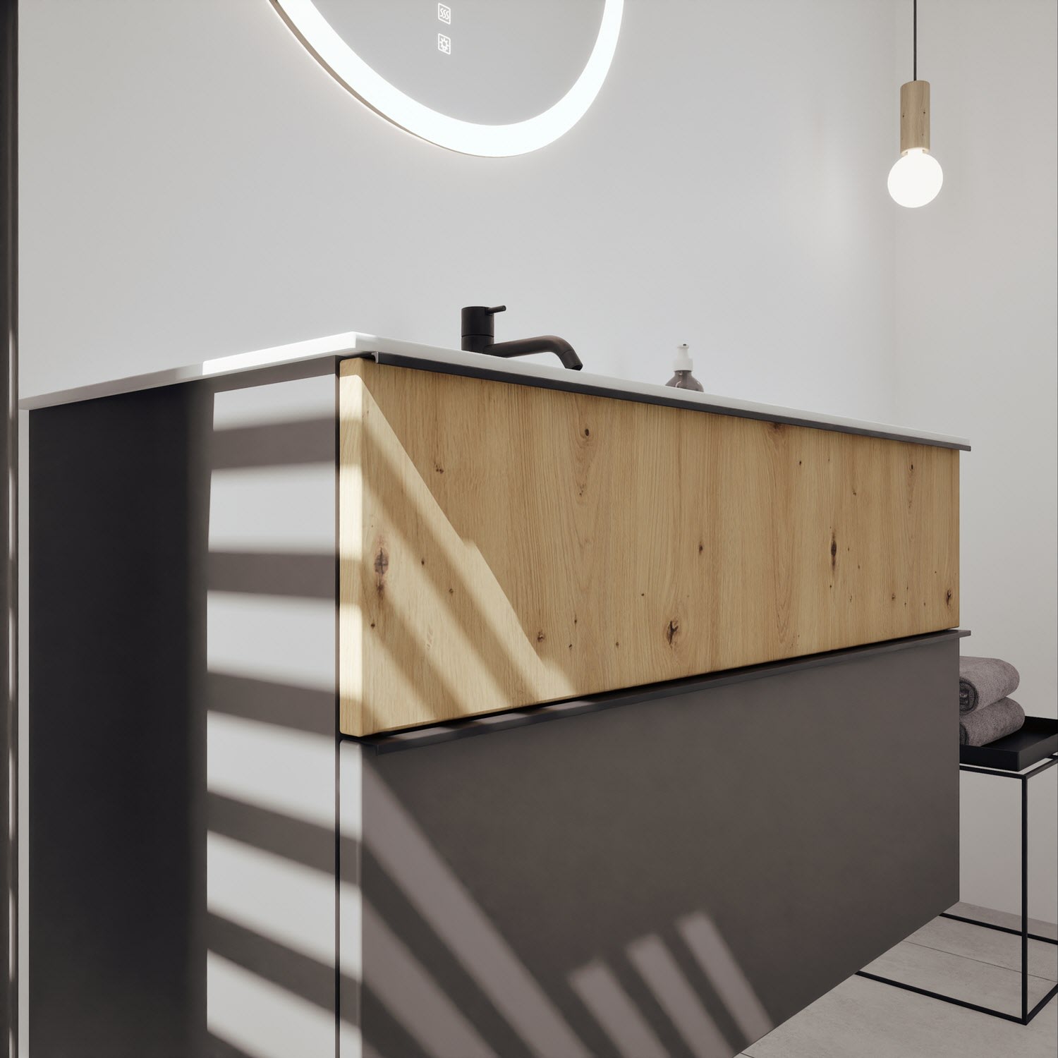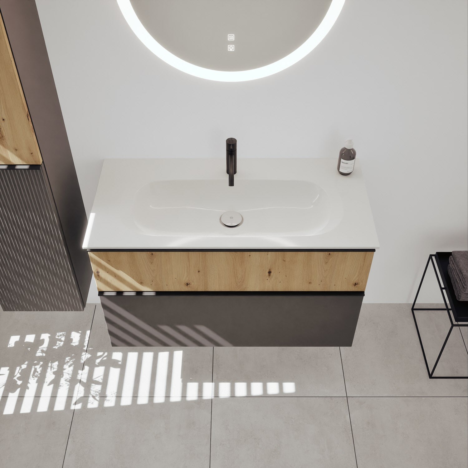 burgbad Fiumo 2.0 Mineralguss-Waschtisch mit Waschtischunterschrank 102 cm, mit Griff G0200