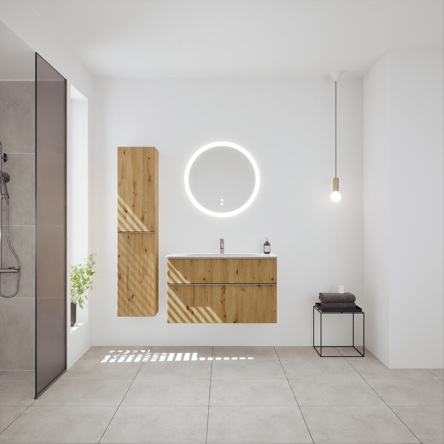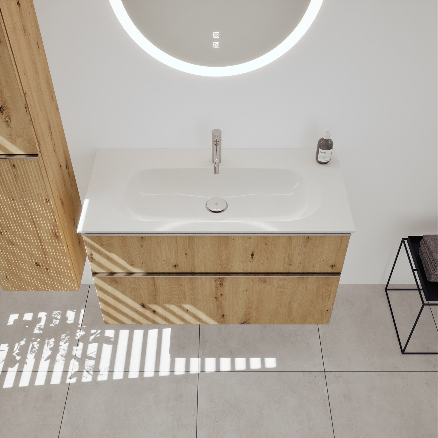 burgbad Fiumo 2.0 Mineralguss-Waschtisch mit Waschtischunterschrank 102 cm, mit Griff G0146