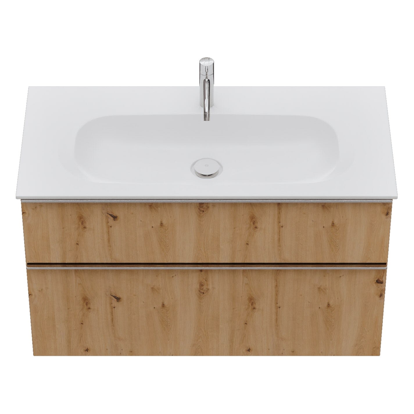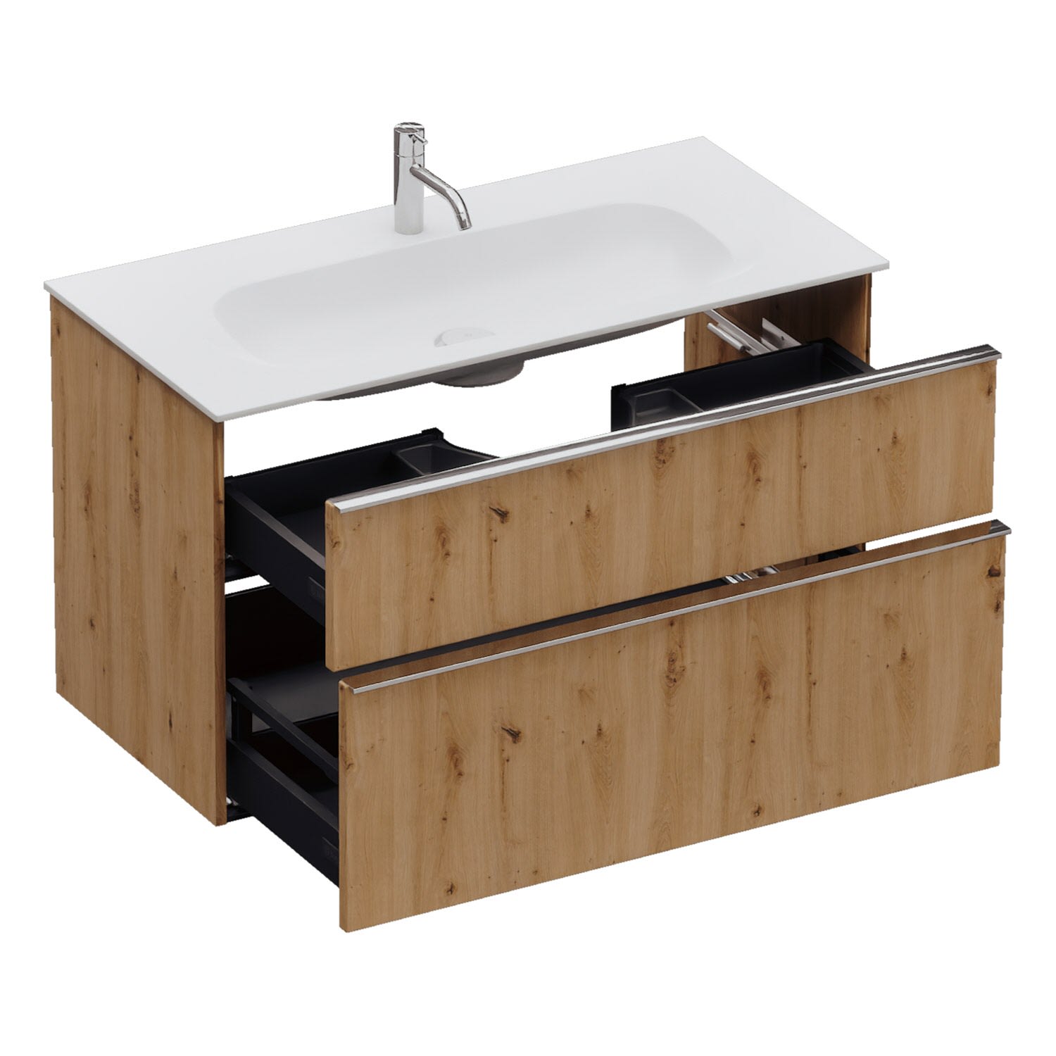 - 1 Schublade oben, 35 cm tief, mit Siphonausschnitt und Inneneinteilung