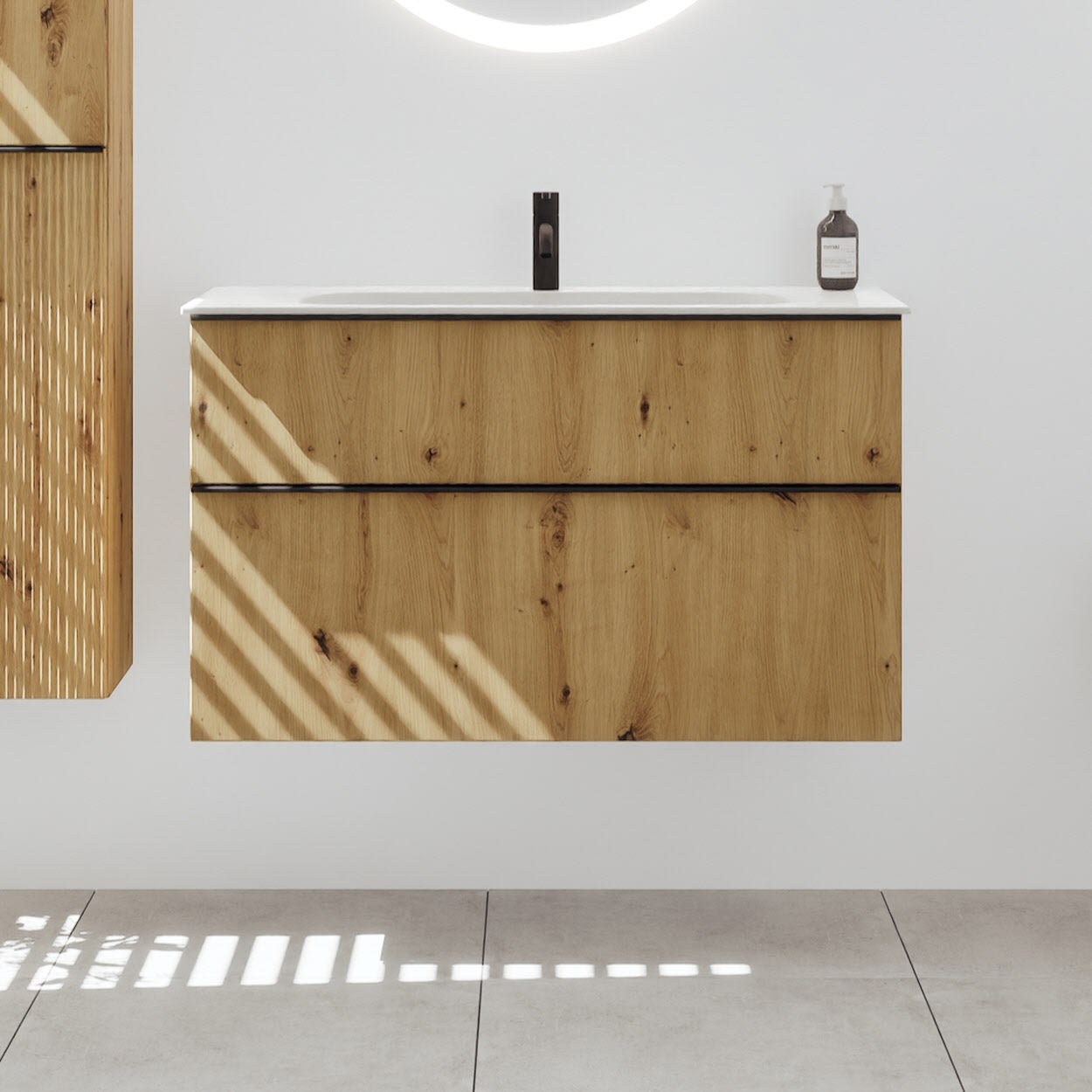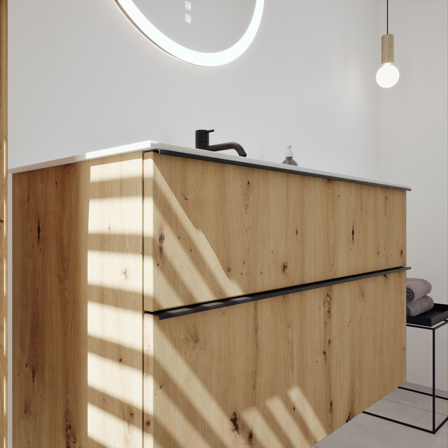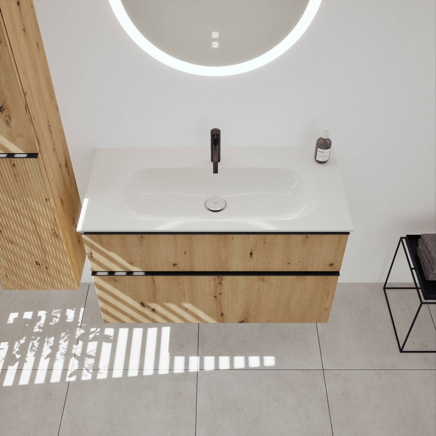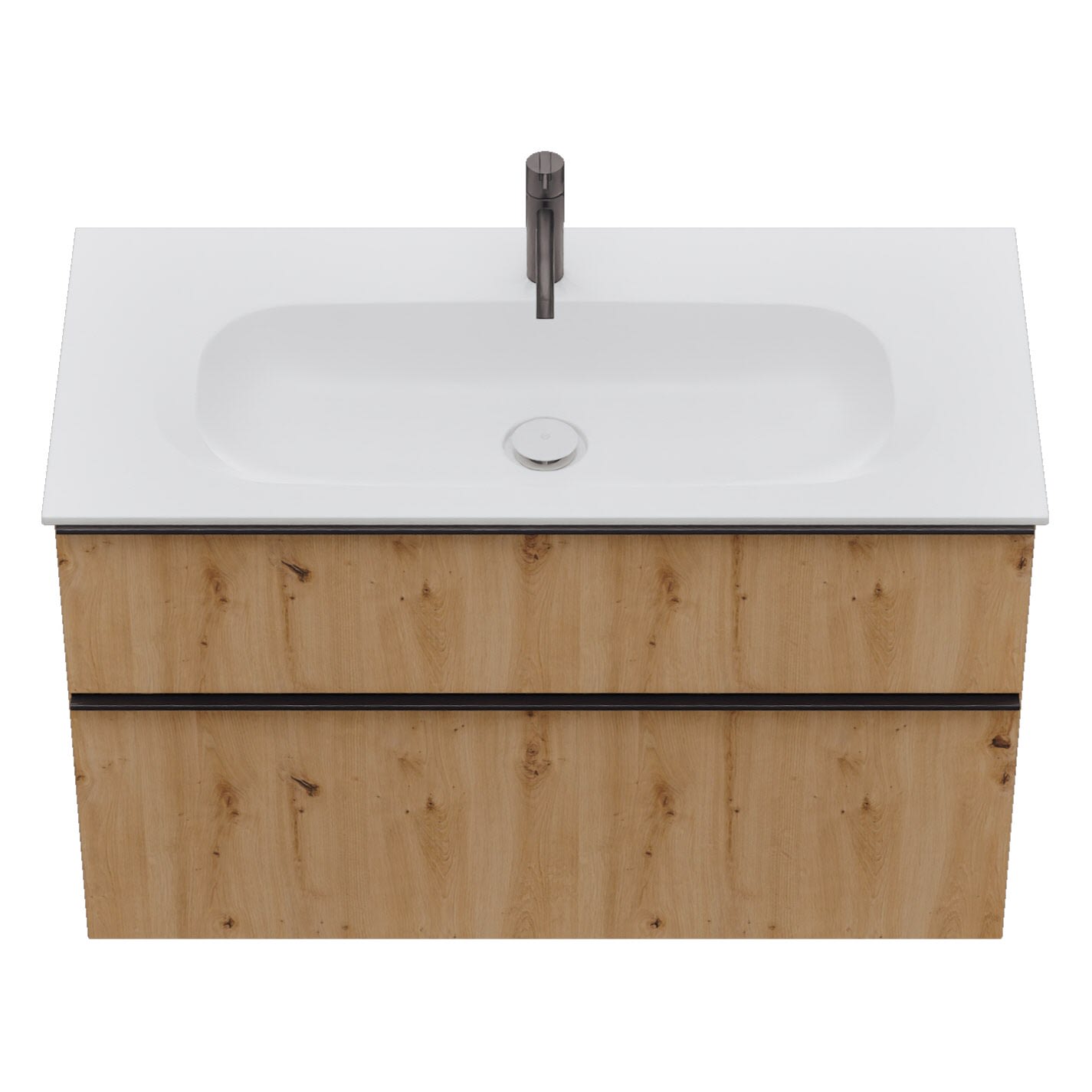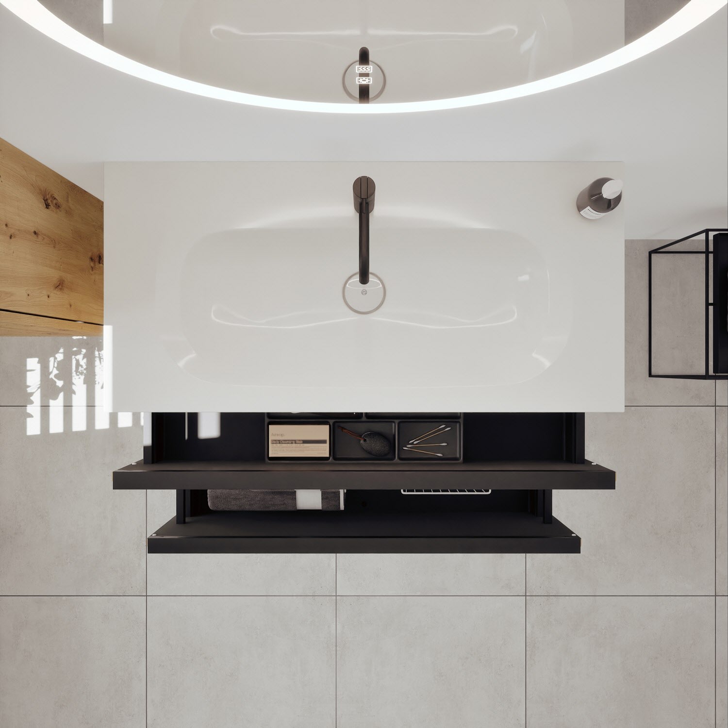 burgbad Fiumo 2.0 Mineralguss-Waschtisch mit Waschtischunterschrank 102 cm, mit Griff G0200