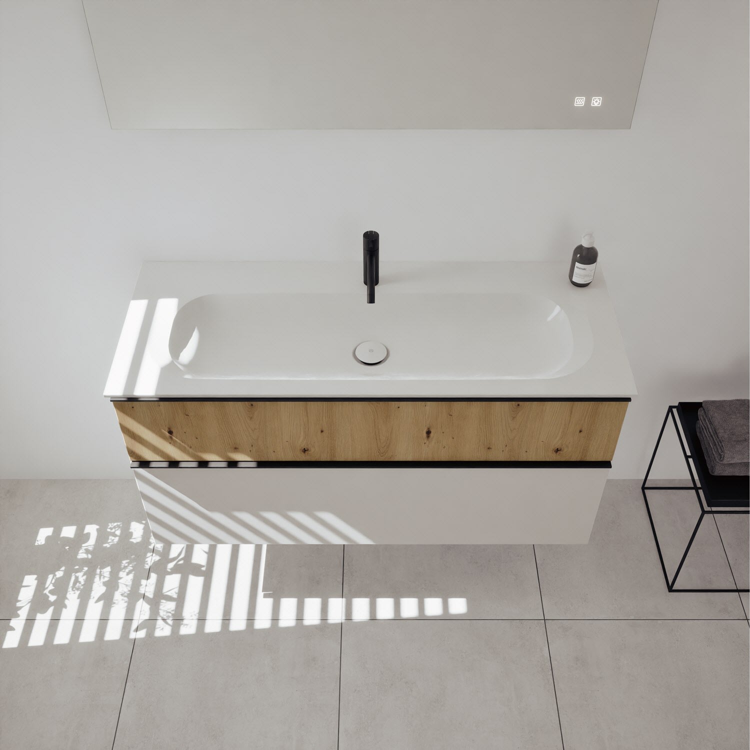 burgbad Fiumo 2.0 Mineralguss-Waschtisch mit Waschtischunterschrank 122 cm, mit Griff G0200