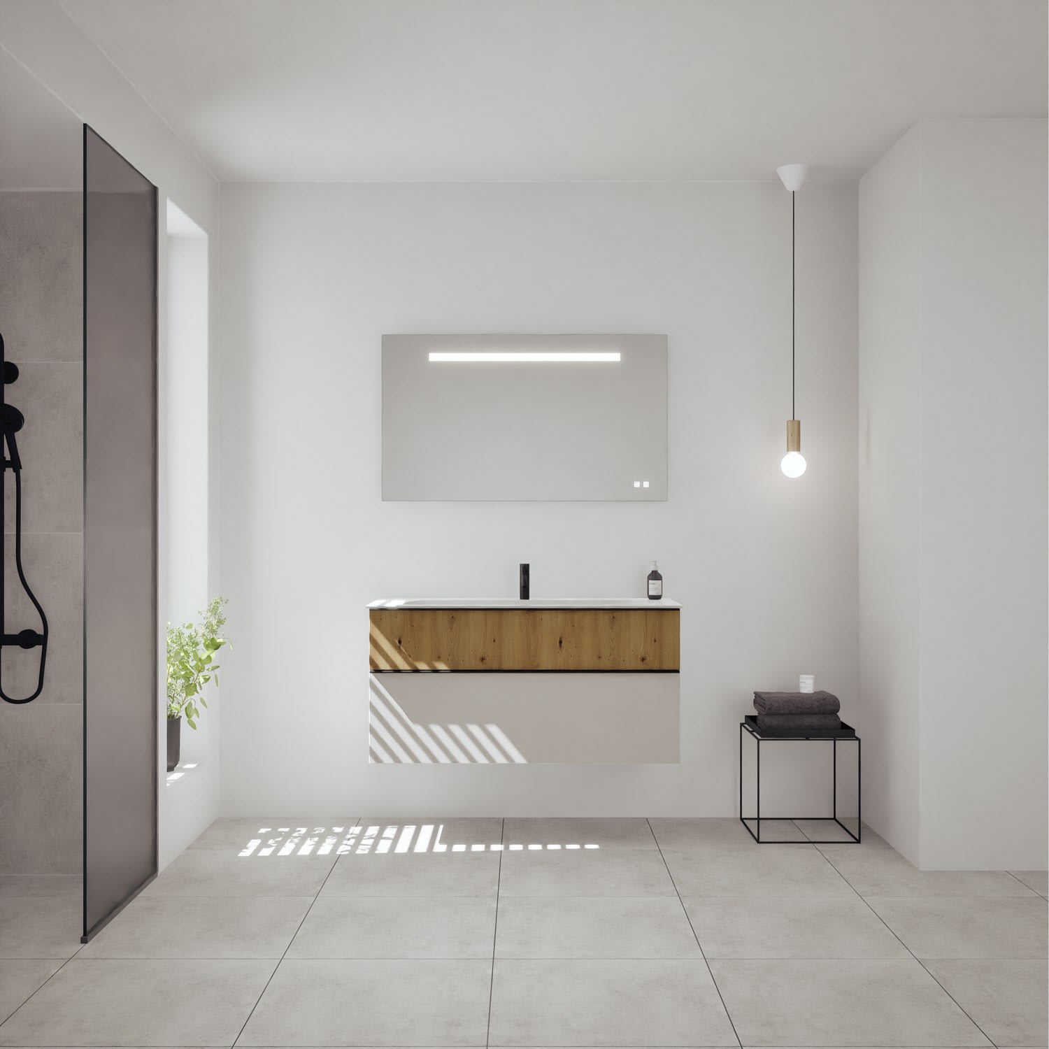 burgbad Fiumo 2.0 Badmöbelset 62 cm mit Waschtisch mit Unterschrank mit Griff G0146 und Spiegelschrank