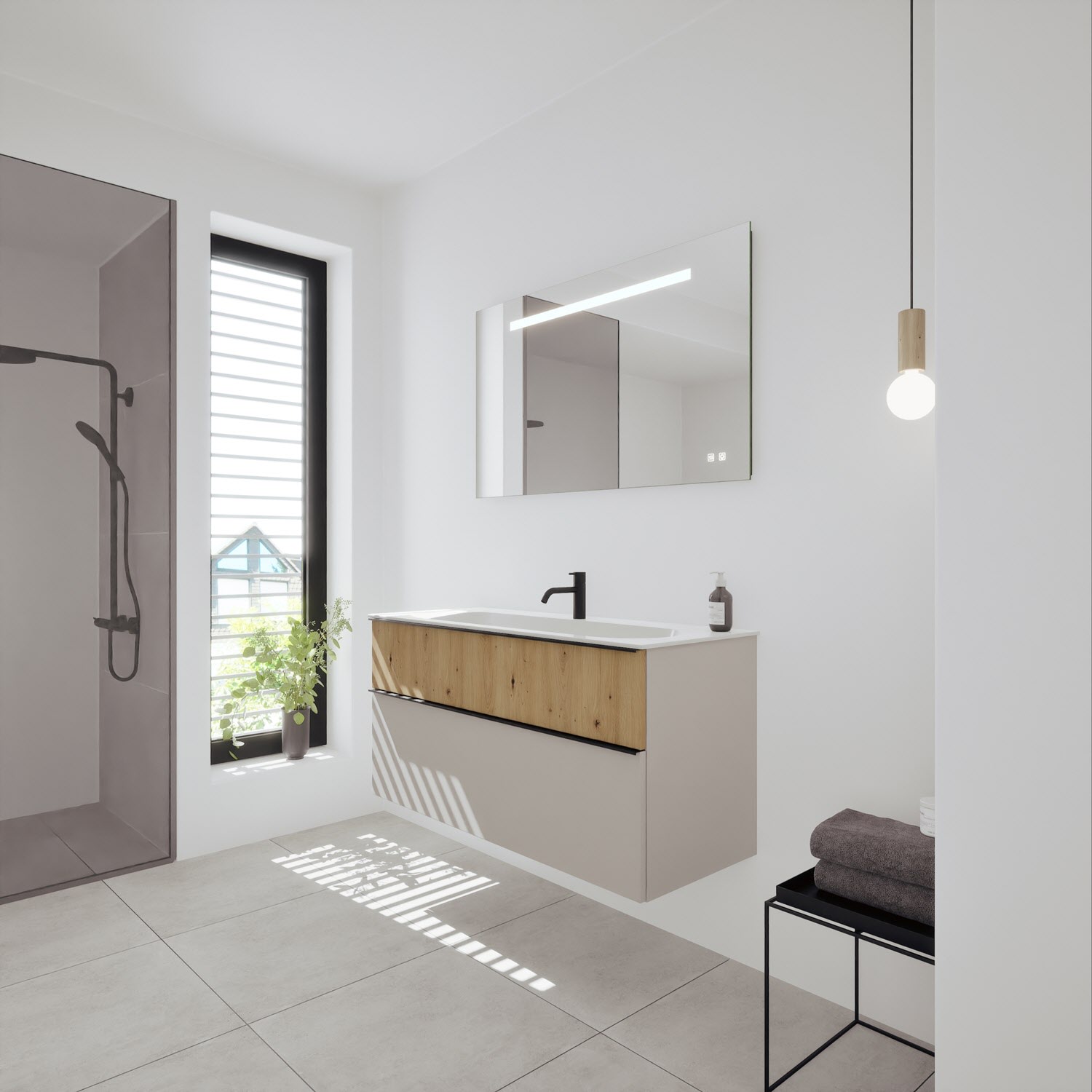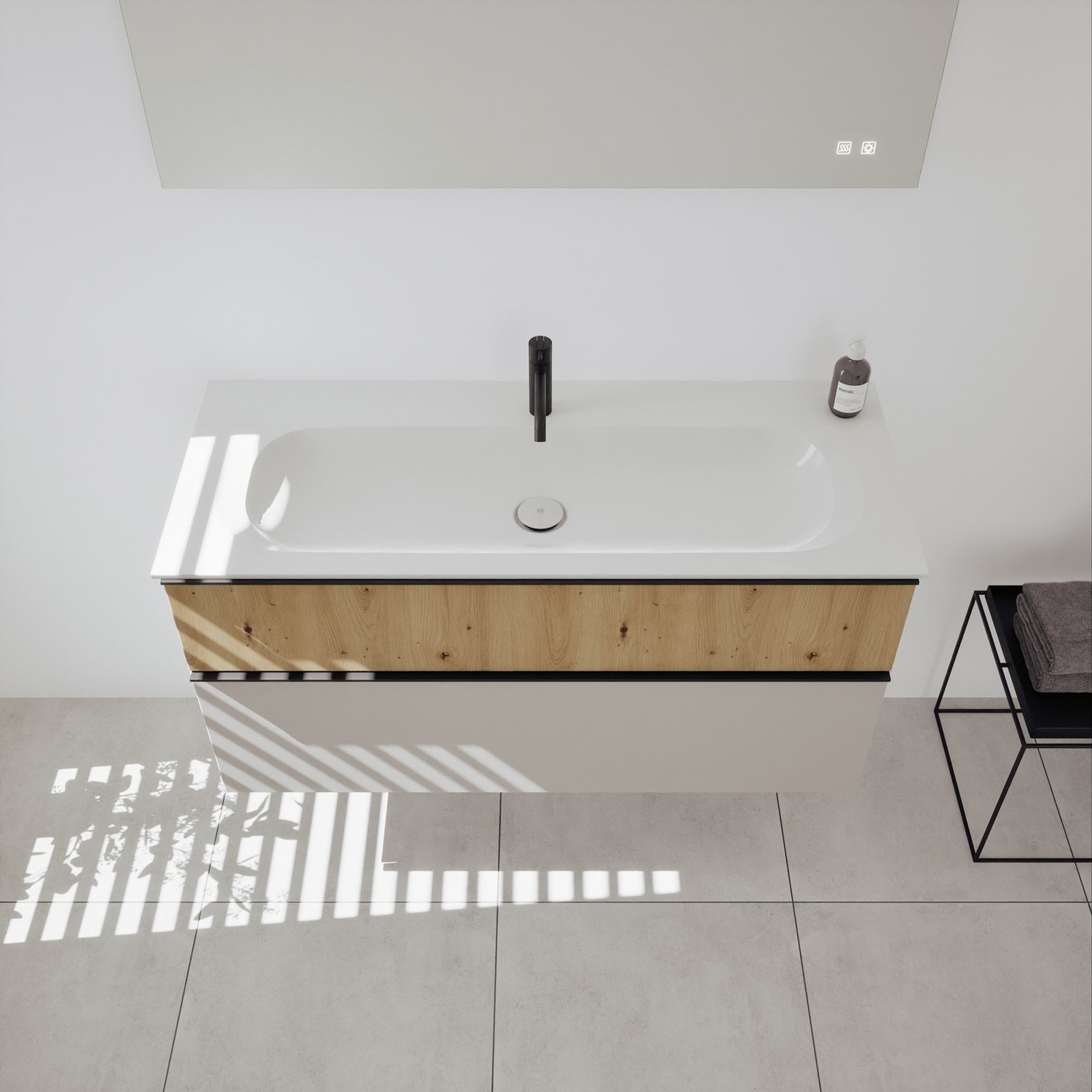 burgbad Fiumo 2.0 Badmöbelset 62 cm mit Waschtisch mit Unterschrank mit Griff G0146 und Spiegelschrank