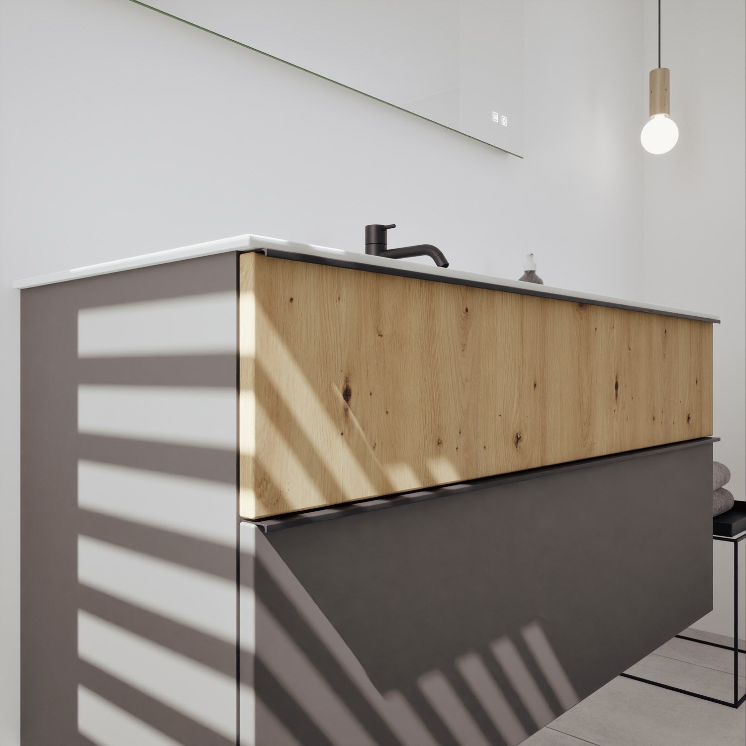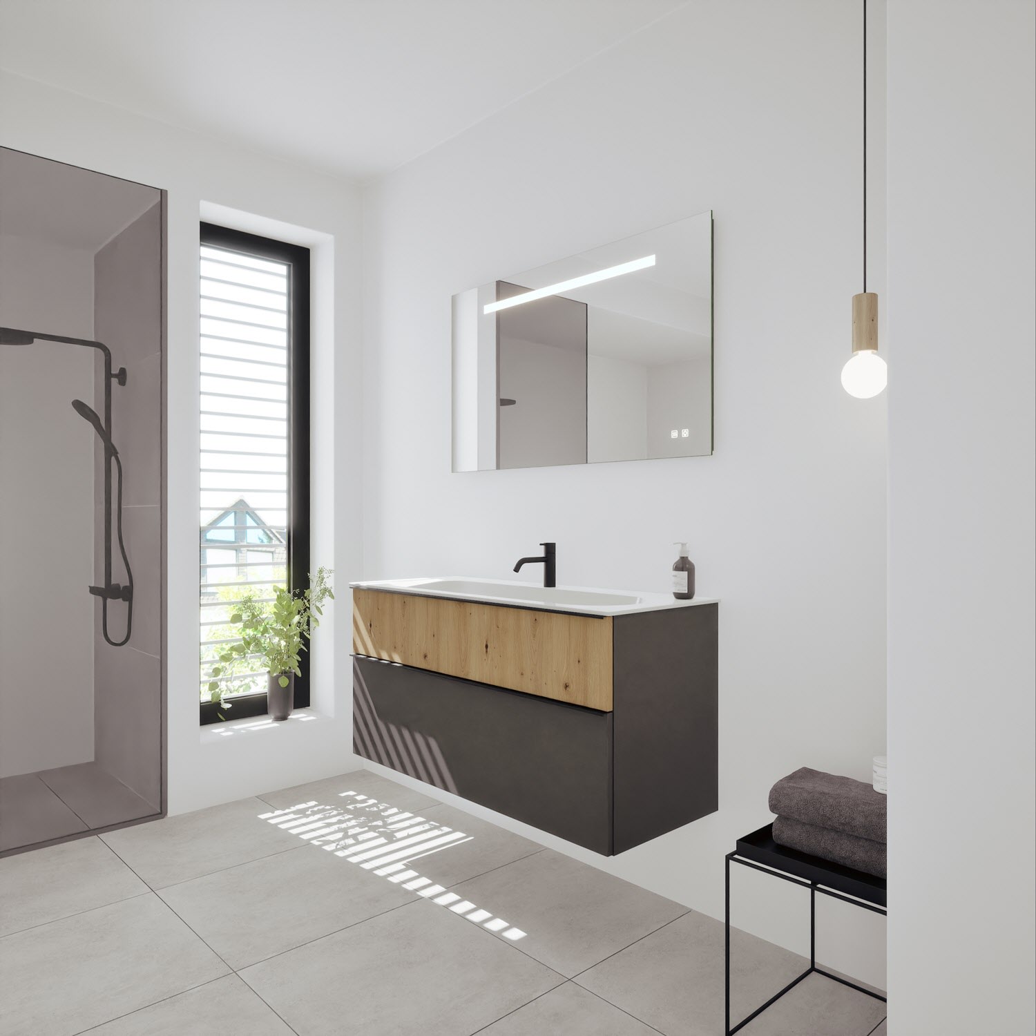 burgbad Fiumo 2.0 Mineralguss-Waschtisch mit Waschtischunterschrank 122 cm, mit Griff G0200