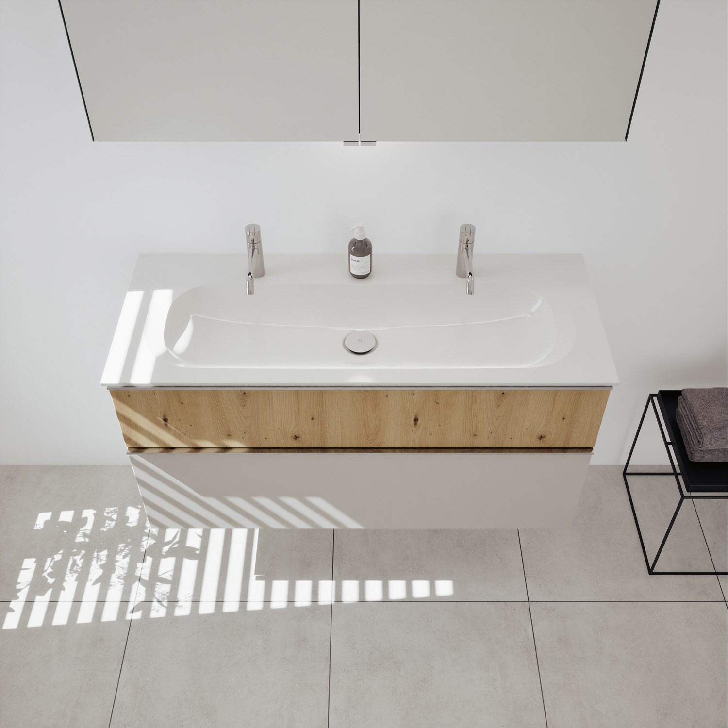 burgbad Fiumo 2.0 Mineralguss-Waschtisch mit Waschtischunterschrank 122 cm, mit Griff G0146