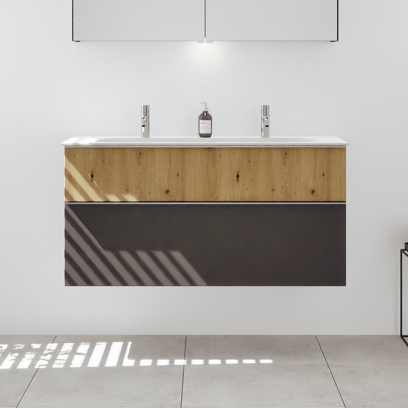 burgbad Fiumo 2.0 Mineralguss-Waschtisch mit Waschtischunterschrank 122 cm, mit Griff G0146