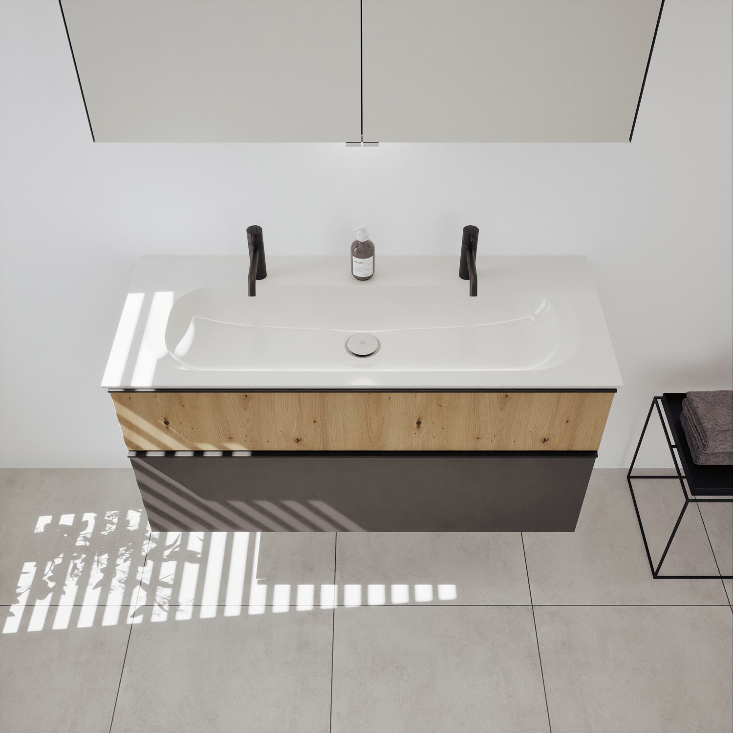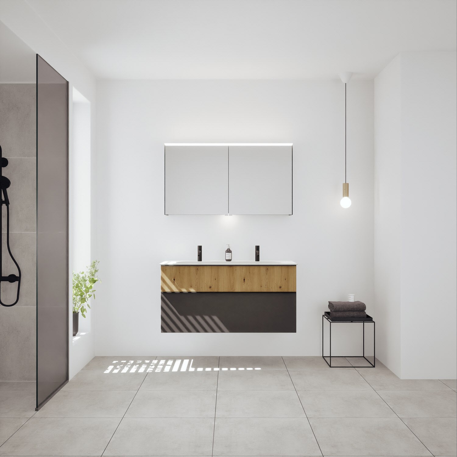 burgbad Fiumo 2.0 Badmöbelset 62 cm mit Waschtisch mit Unterschrank mit Griff G0146 und Spiegelschrank