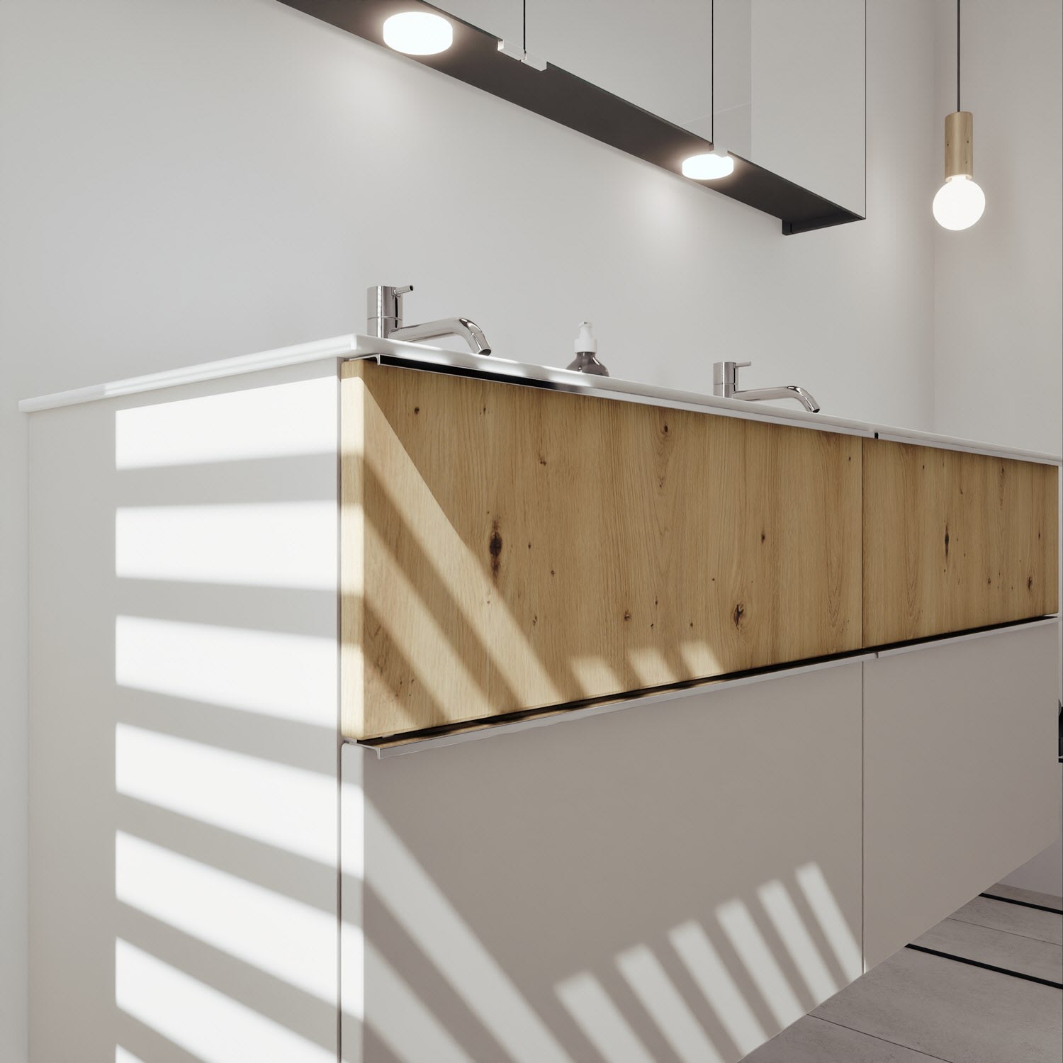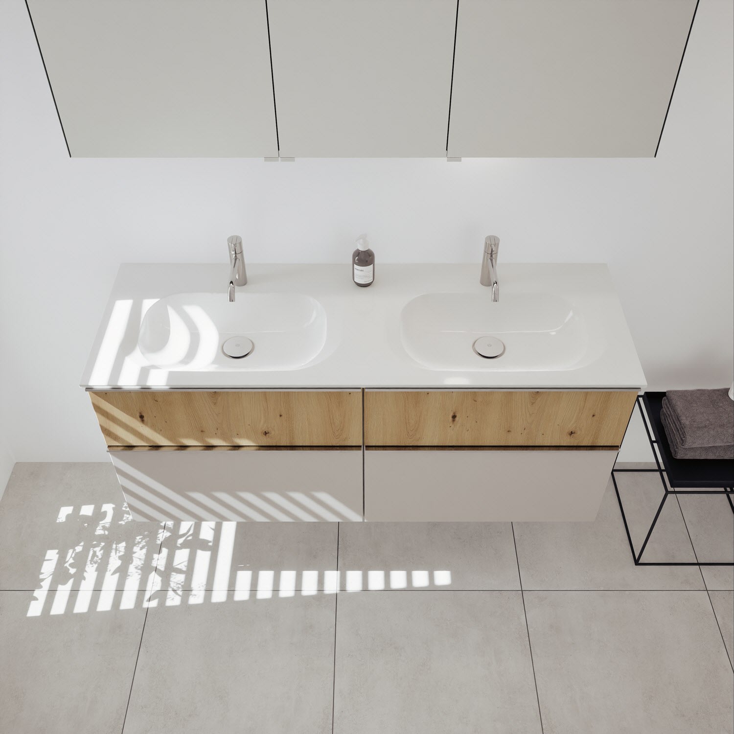 burgbad Fiumo 2.0 Mineralguss-Waschtisch mit Waschtischunterschrank 142 cm, mit Griff G0146