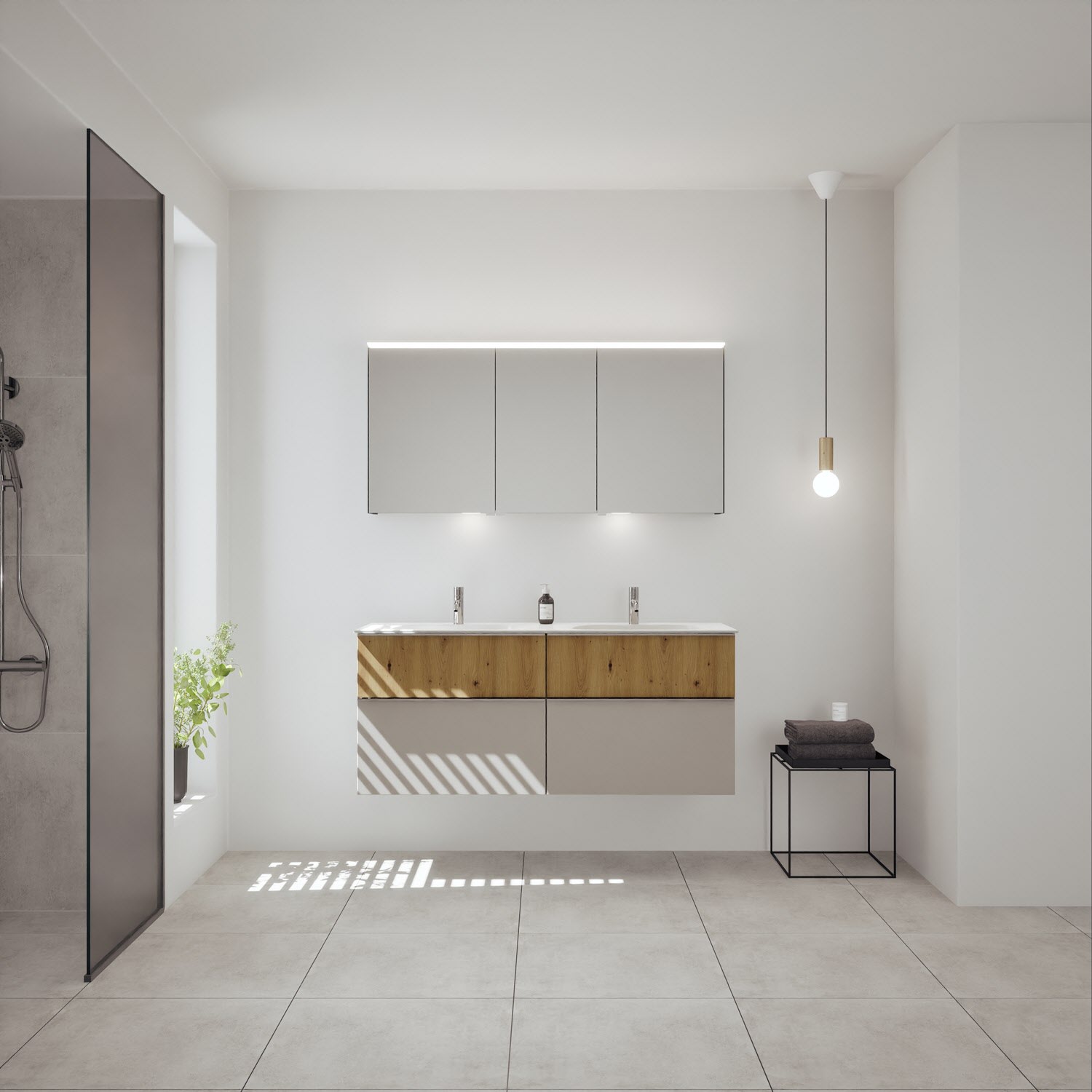 burgbad Fiumo 2.0 Spiegelschrank 140,6 cm mit LED-Aufsatzleuchte und Waschplatzbeleuchtung, 3 Spiegeltüren