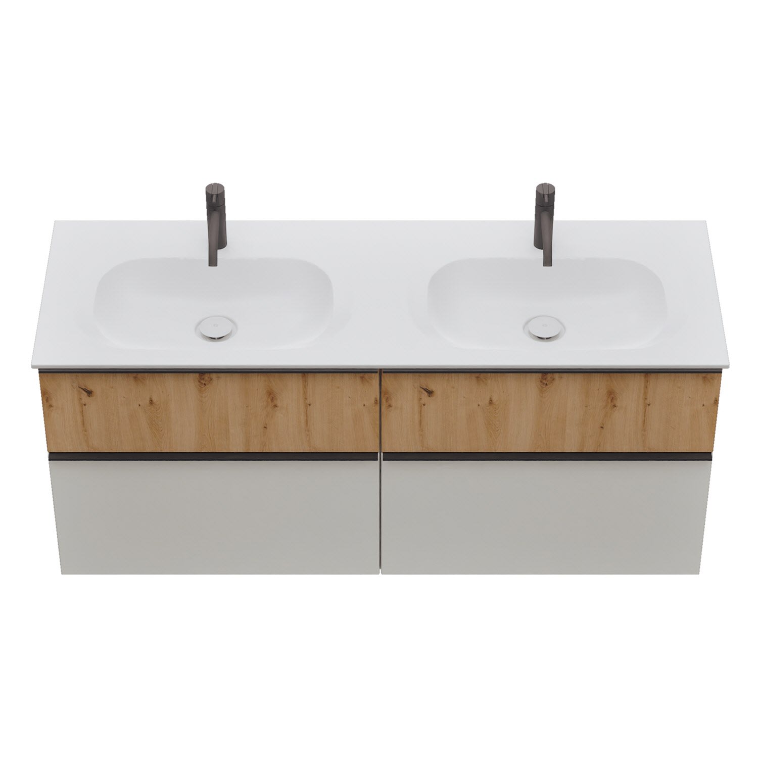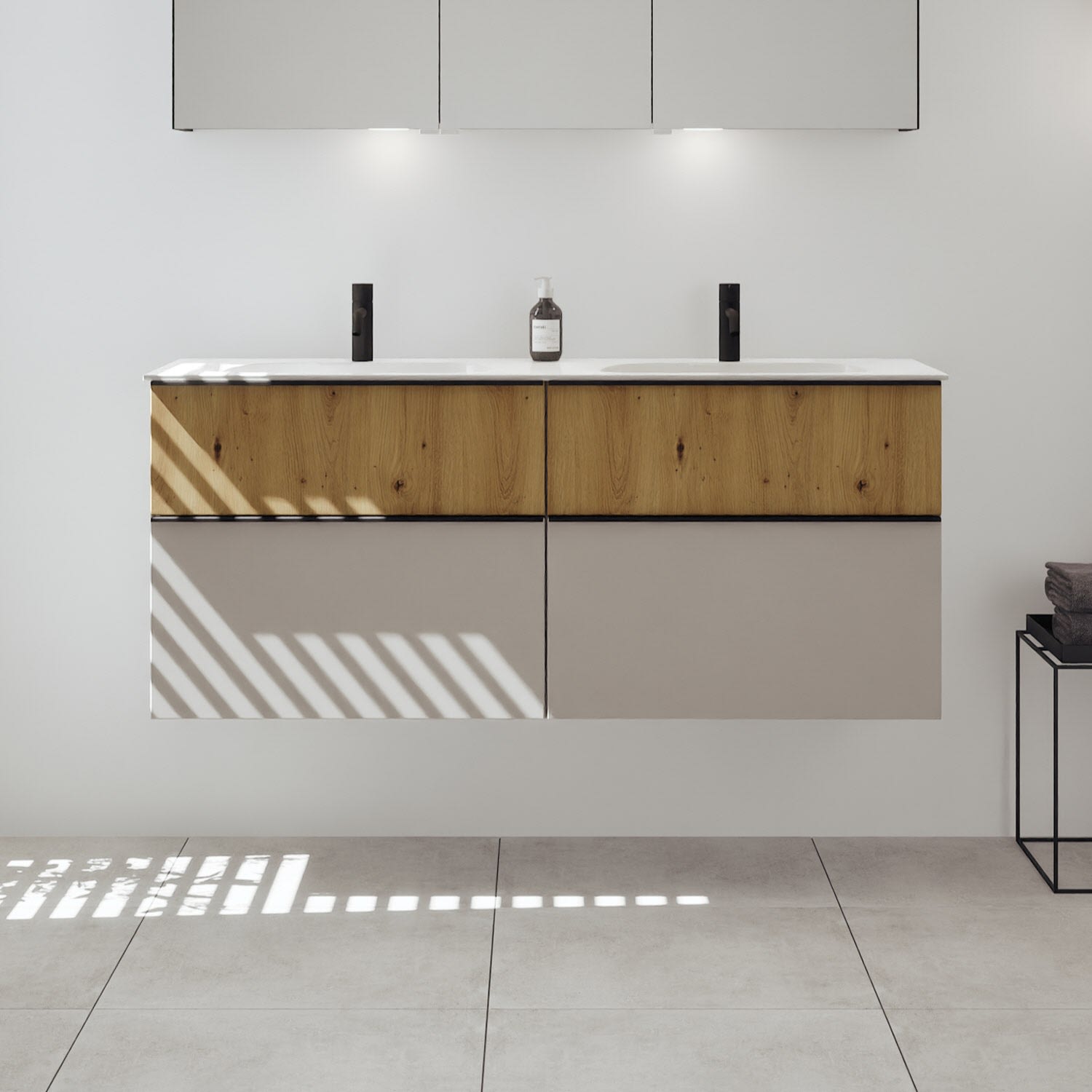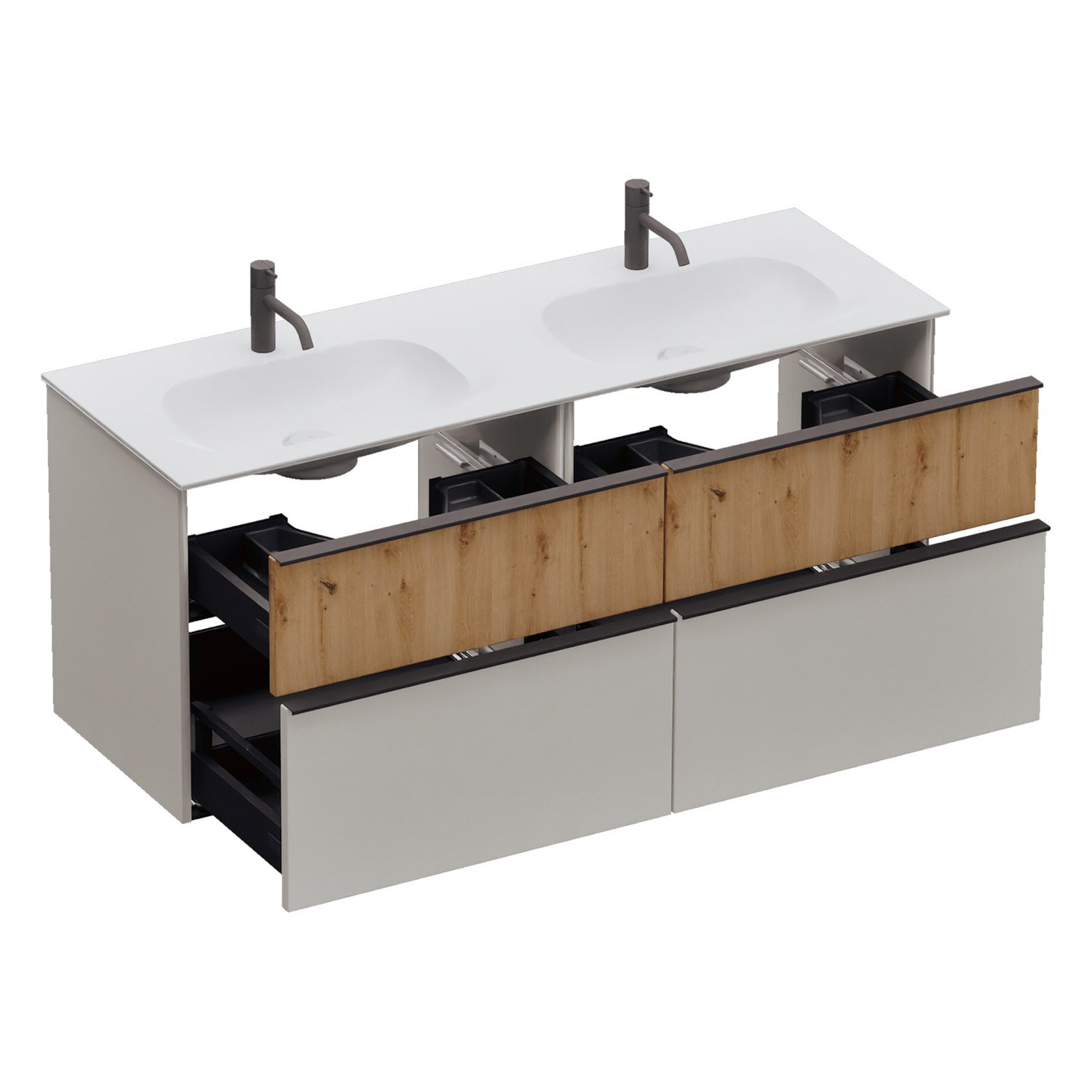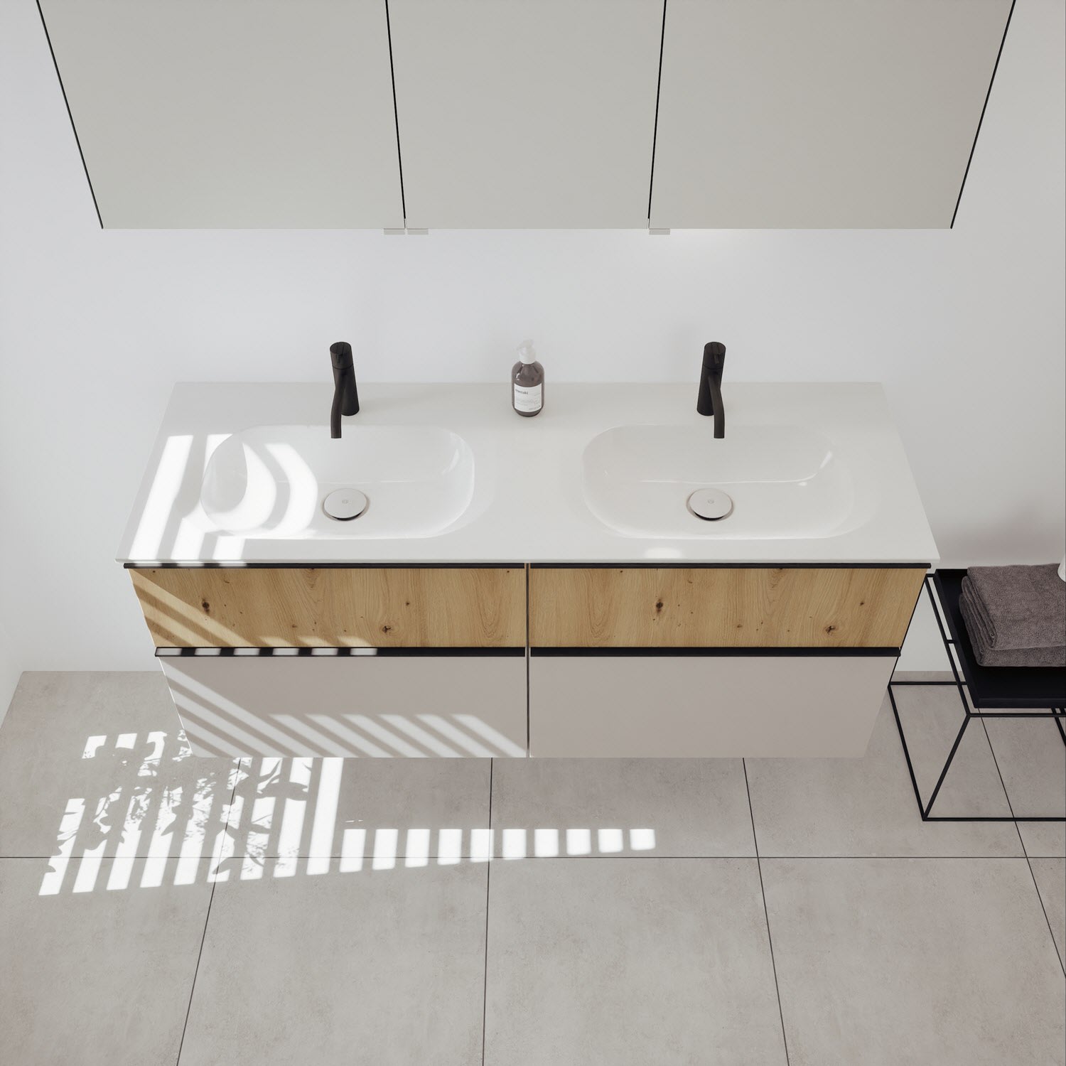 burgbad Fiumo 2.0 Mineralguss-Waschtisch mit Waschtischunterschrank 142 cm, mit Griff G0200
