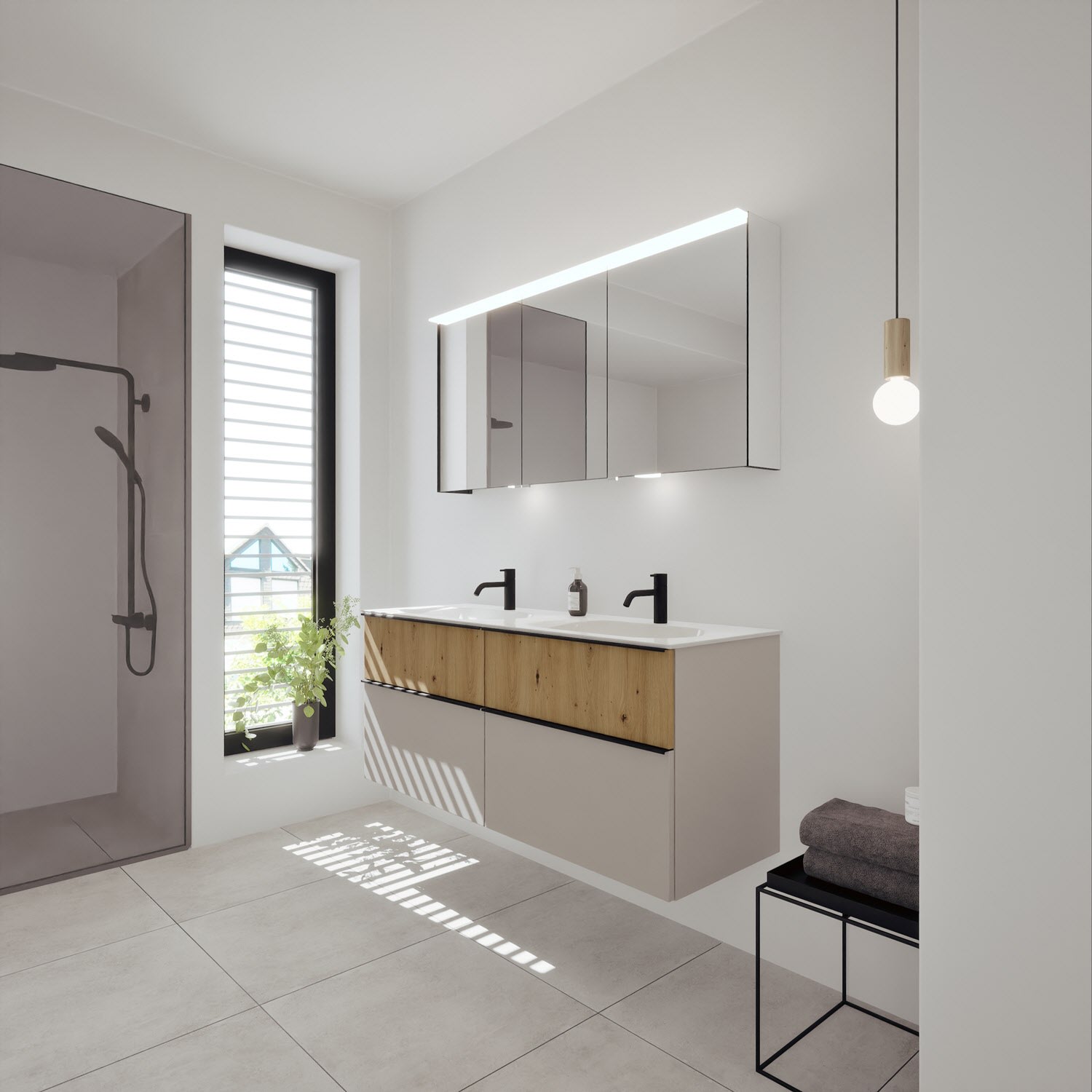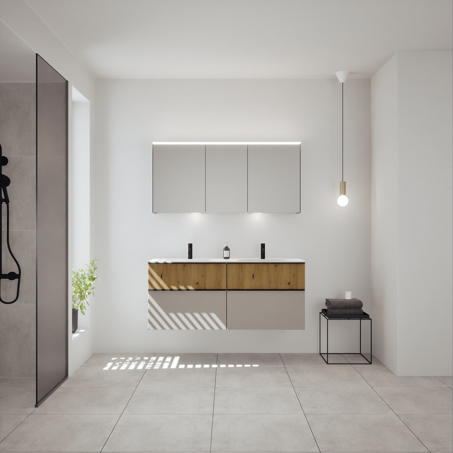 burgbad Fiumo 2.0 Spiegelschrank 140,6 cm mit LED-Aufsatzleuchte und Waschplatzbeleuchtung, 3 Spiegeltüren