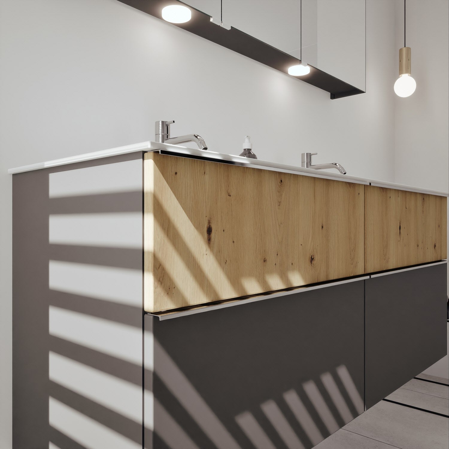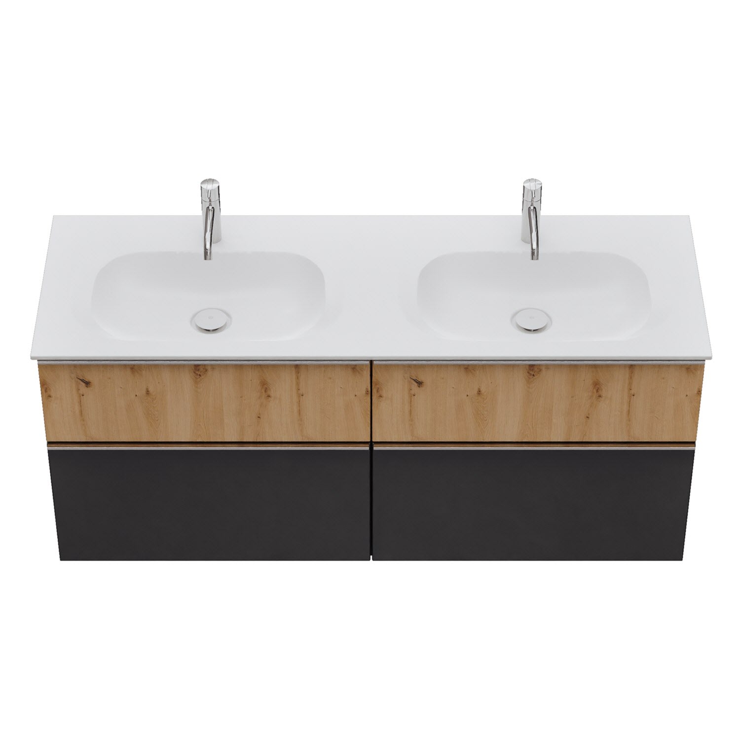 burgbad Fiumo 2.0 Mineralguss-Waschtisch mit Waschtischunterschrank 142 cm, mit Griff G0146