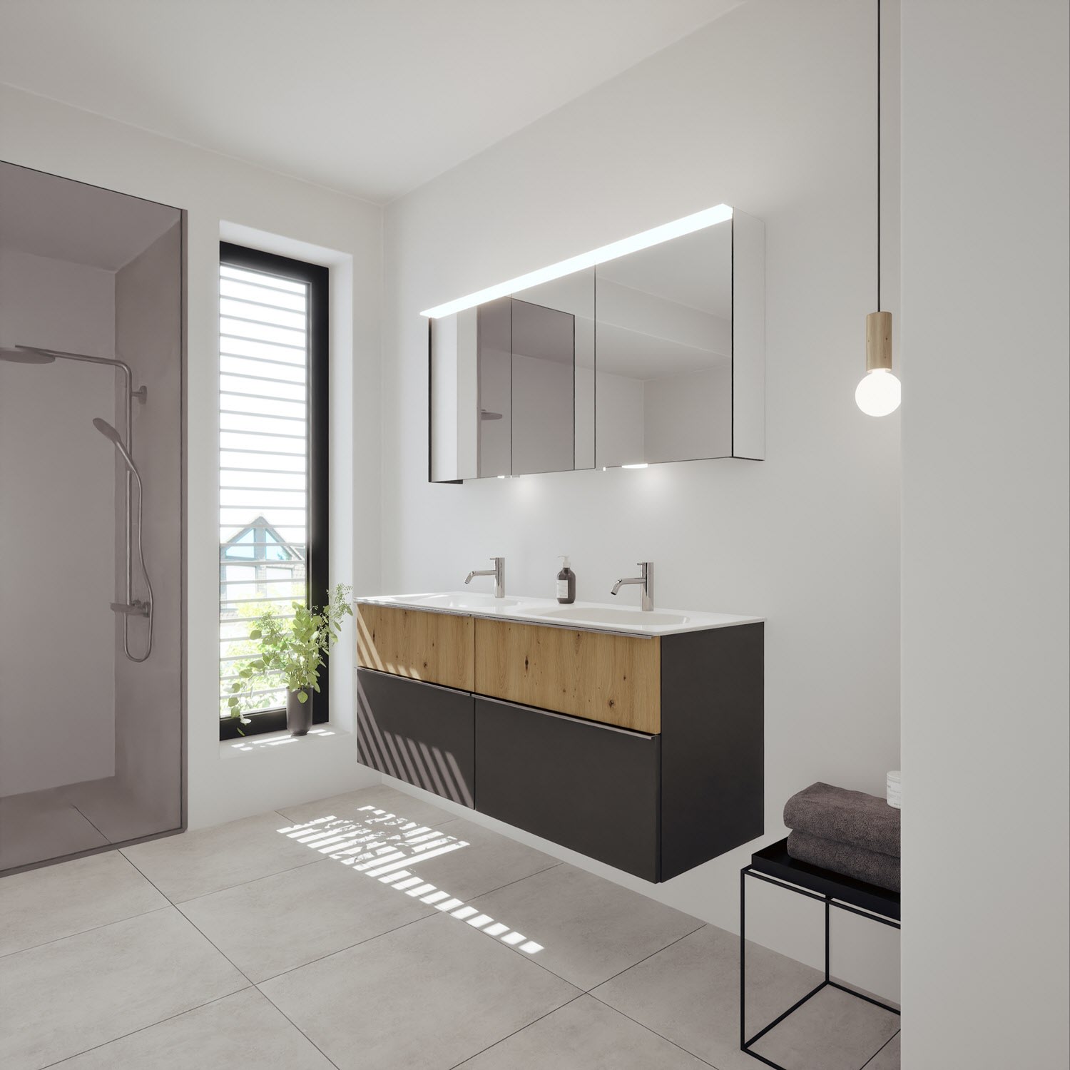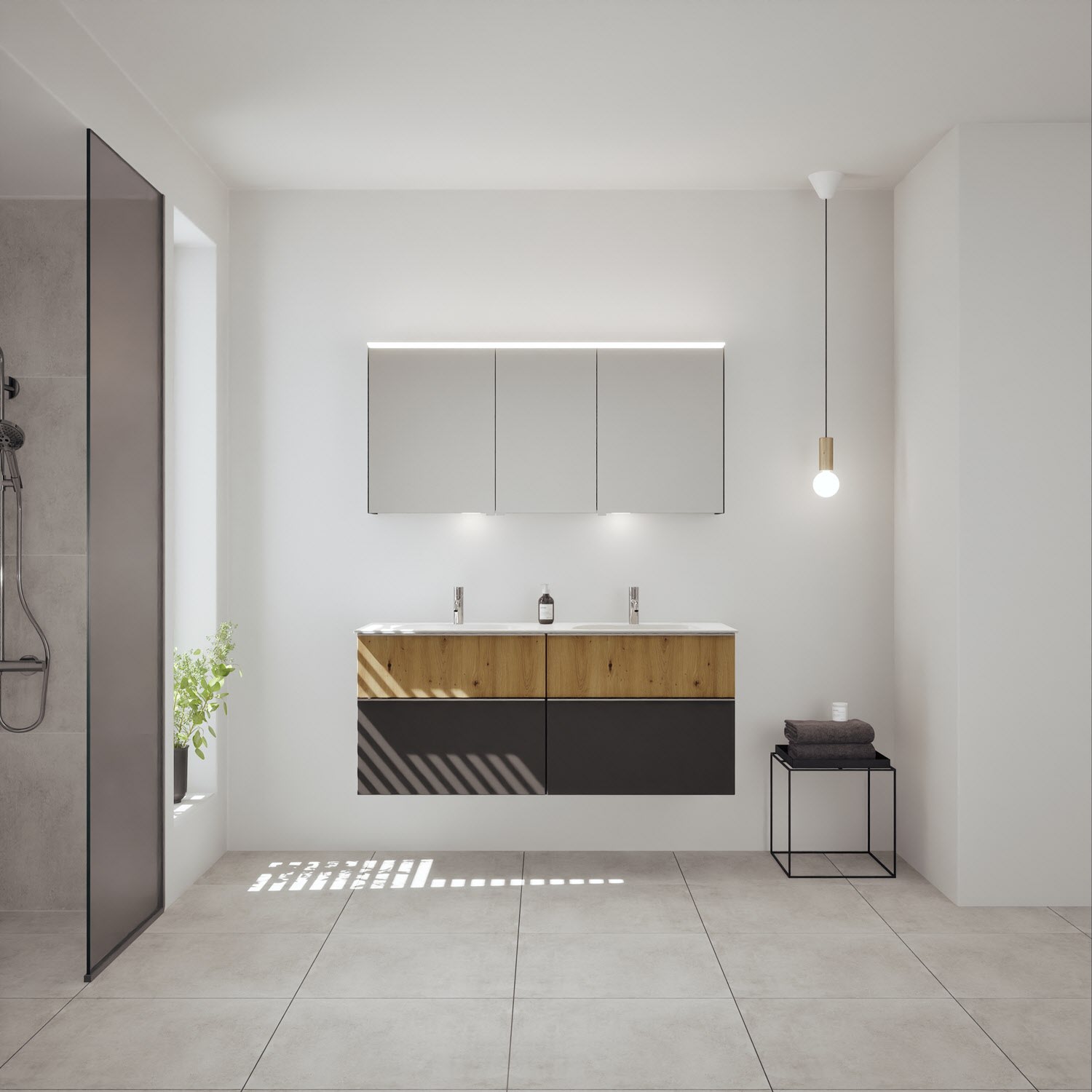 burgbad Fiumo 2.0 Spiegelschrank 140,6 cm mit LED-Aufsatzleuchte und Waschplatzbeleuchtung, 3 Spiegeltüren