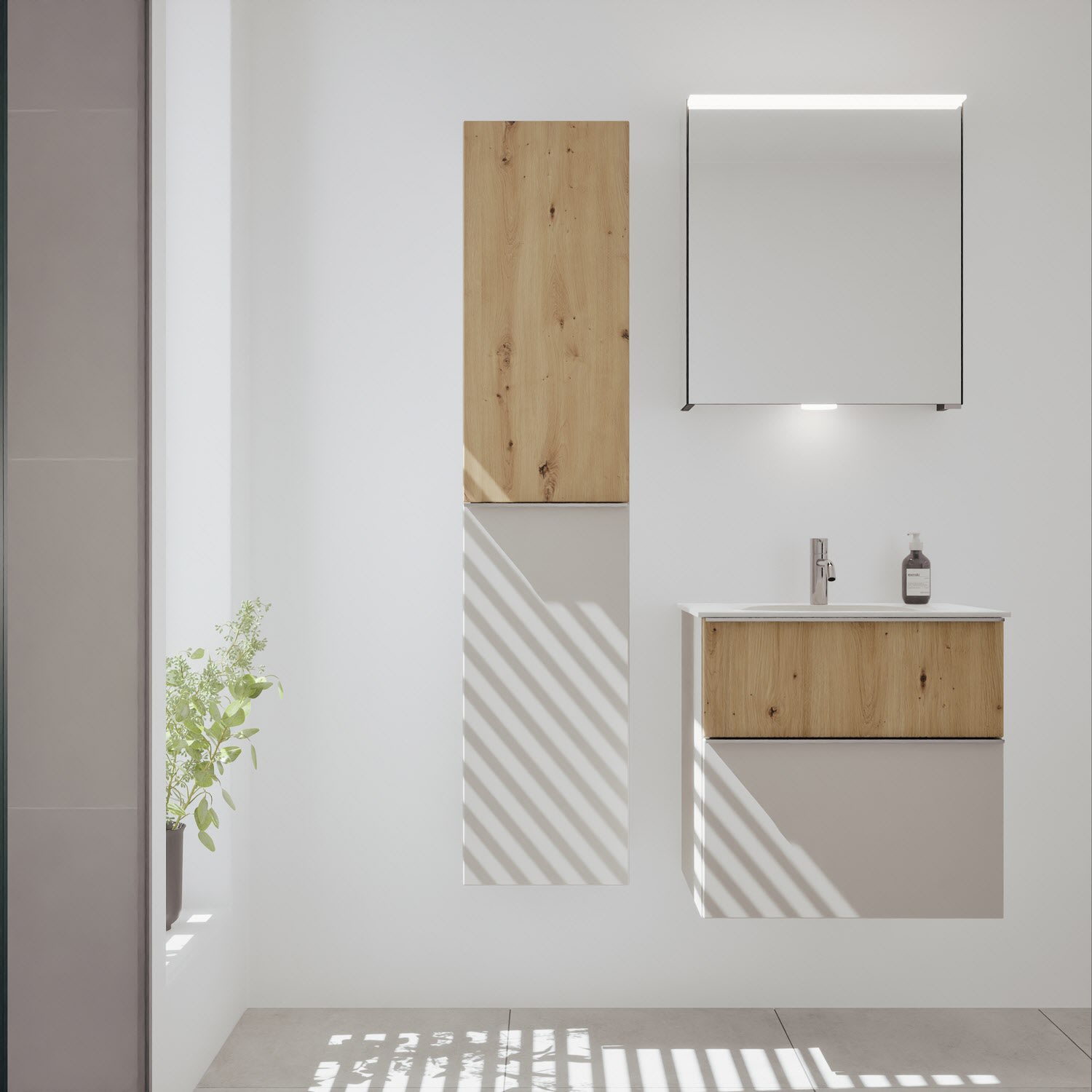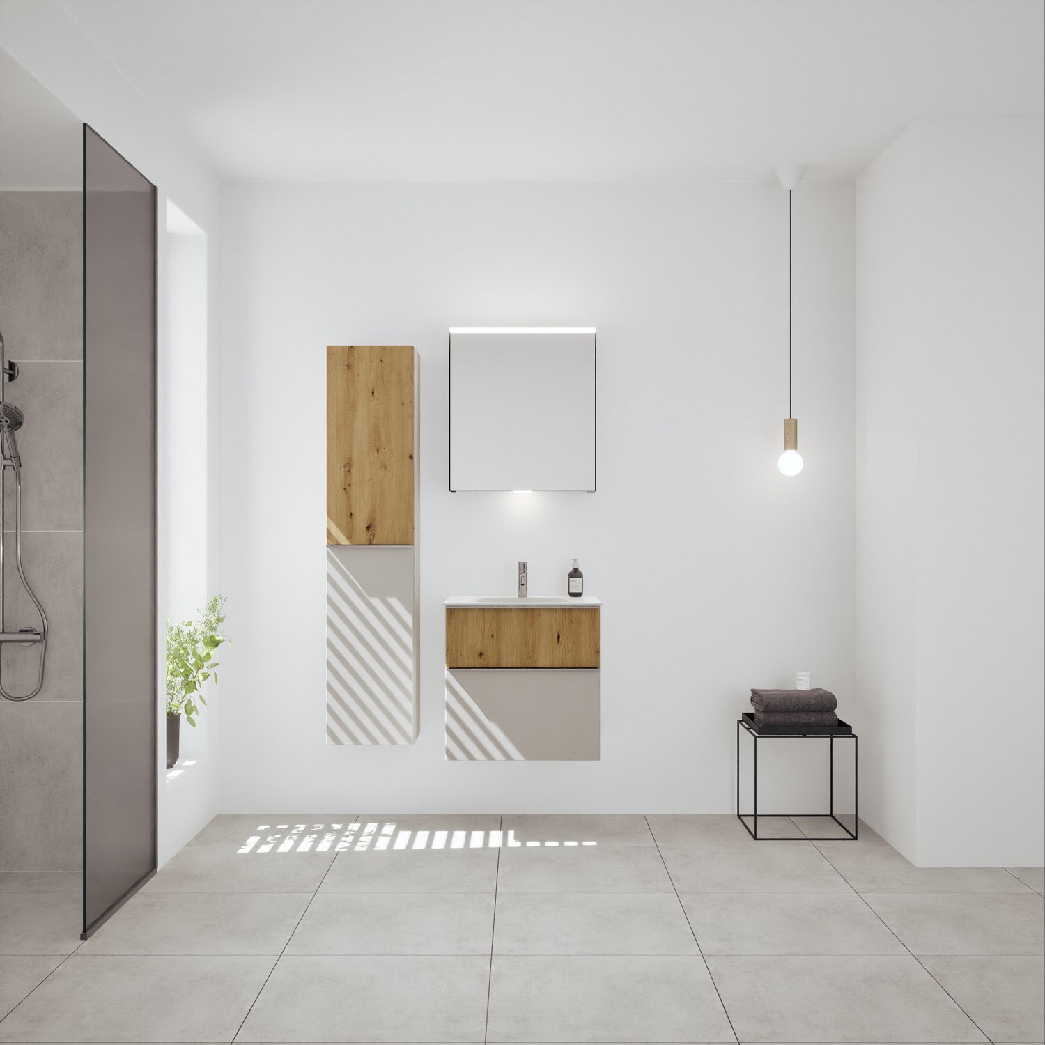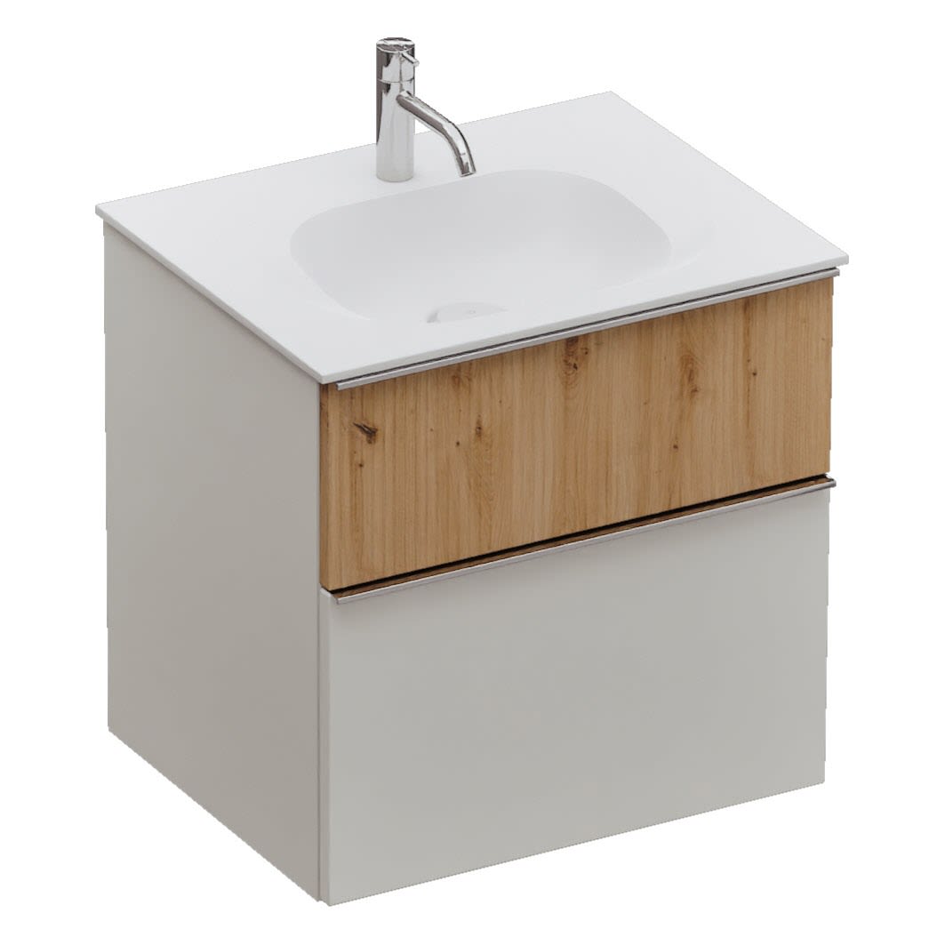 burgbad Fiumo 2.0 Mineralguss-Waschtisch mit Waschtischunterschrank 62 cm, mit Griff G0146