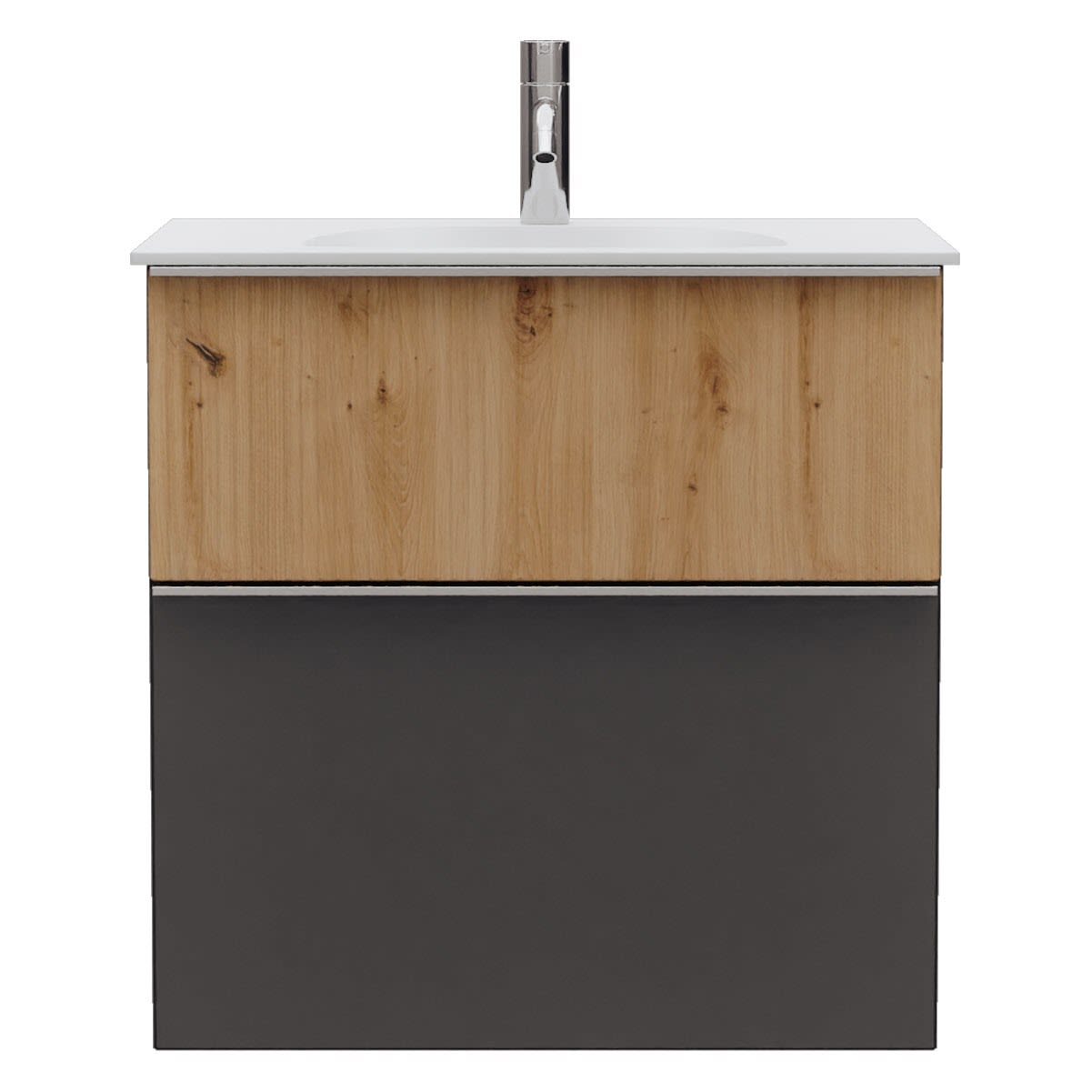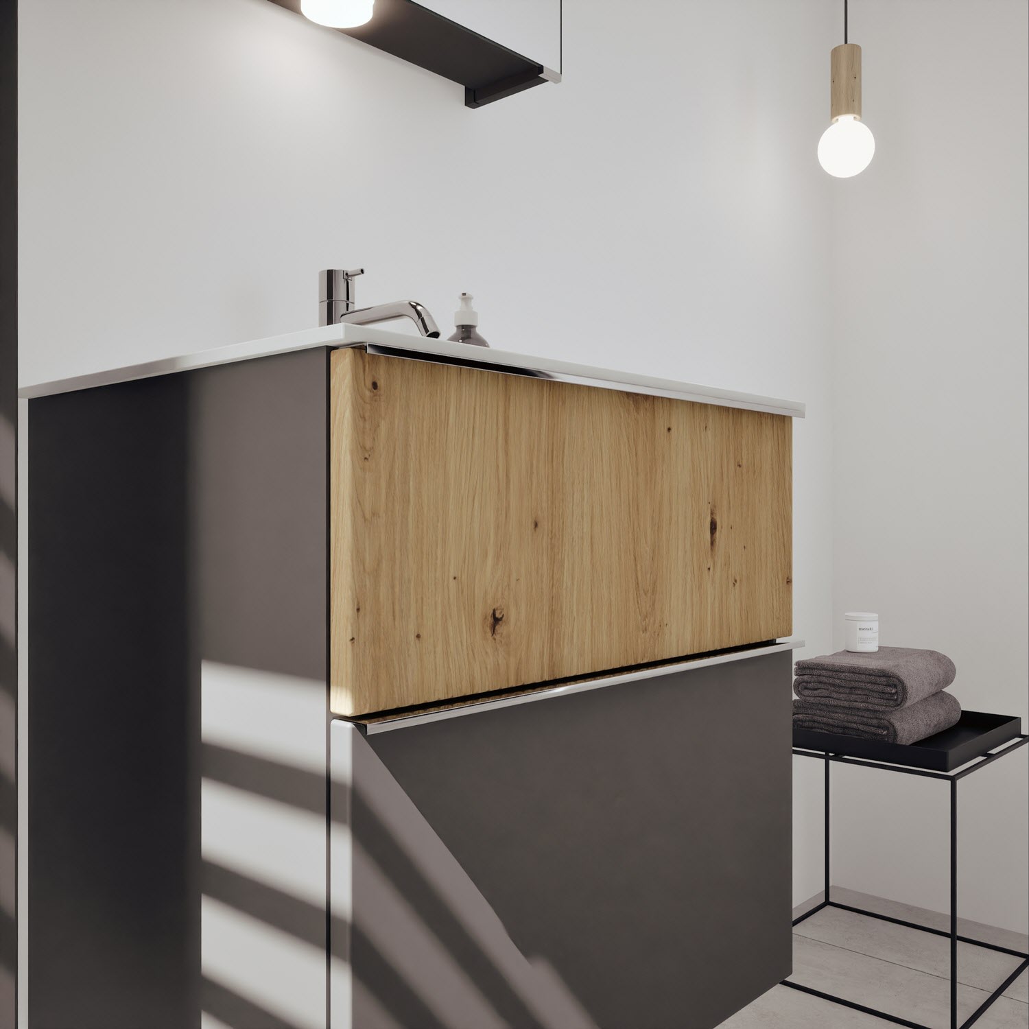 burgbad Fiumo 2.0 Mineralguss-Waschtisch mit Waschtischunterschrank 62 cm, mit Griff G0146