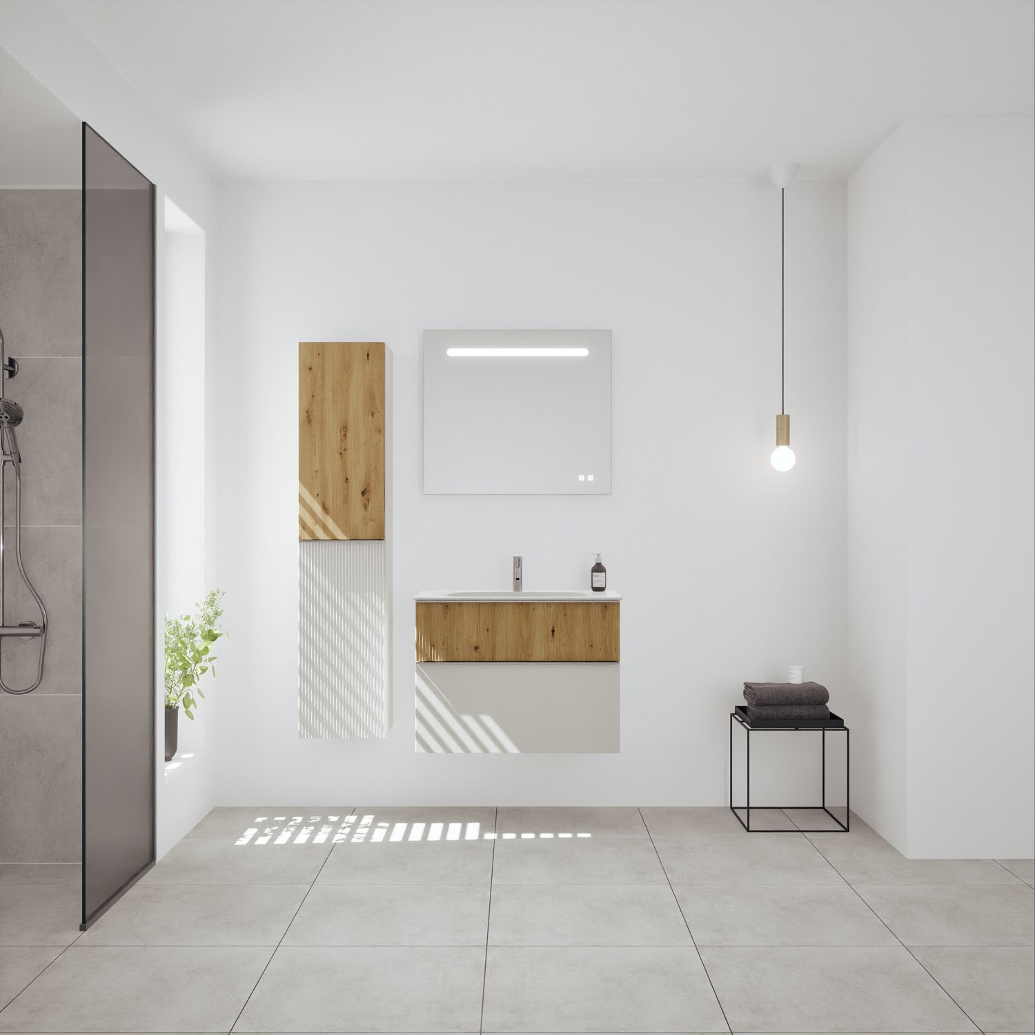 burgbad Fiumo 2.0 Mineralguss-Waschtisch mit Waschtischunterschrank 82 cm, mit Griff G0146
