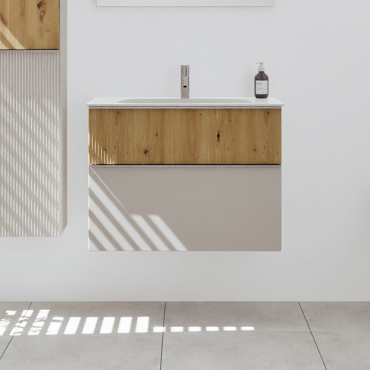 burgbad Fiumo 2.0 Mineralguss-Waschtisch mit Waschtischunterschrank 82 cm, mit Griff G0146