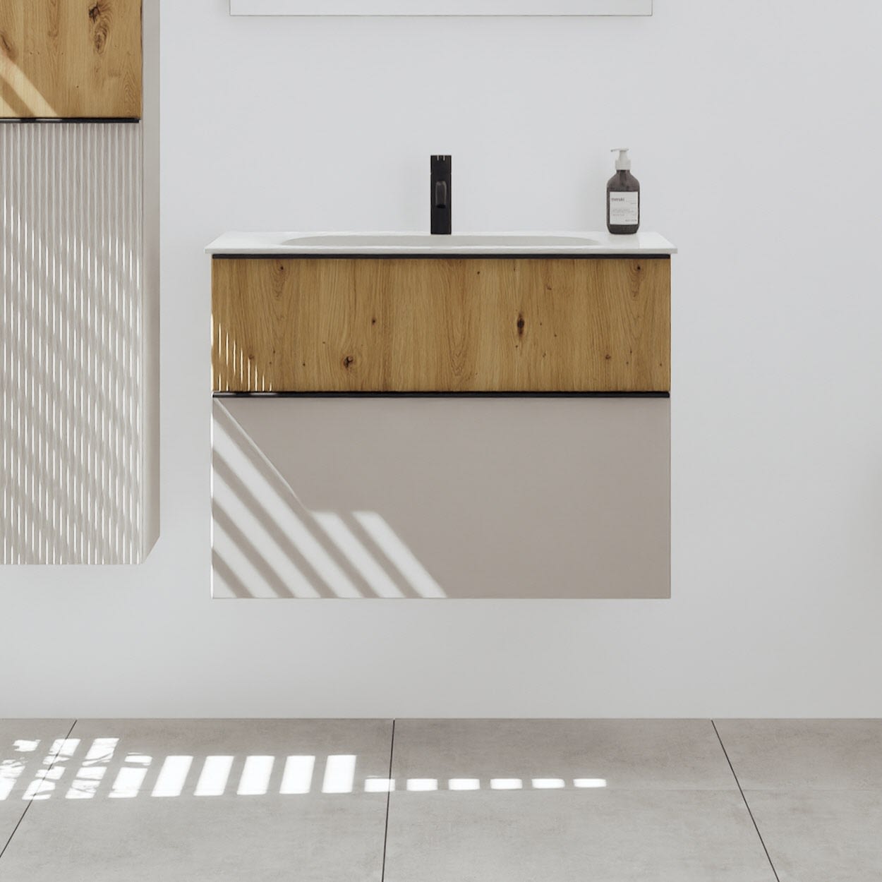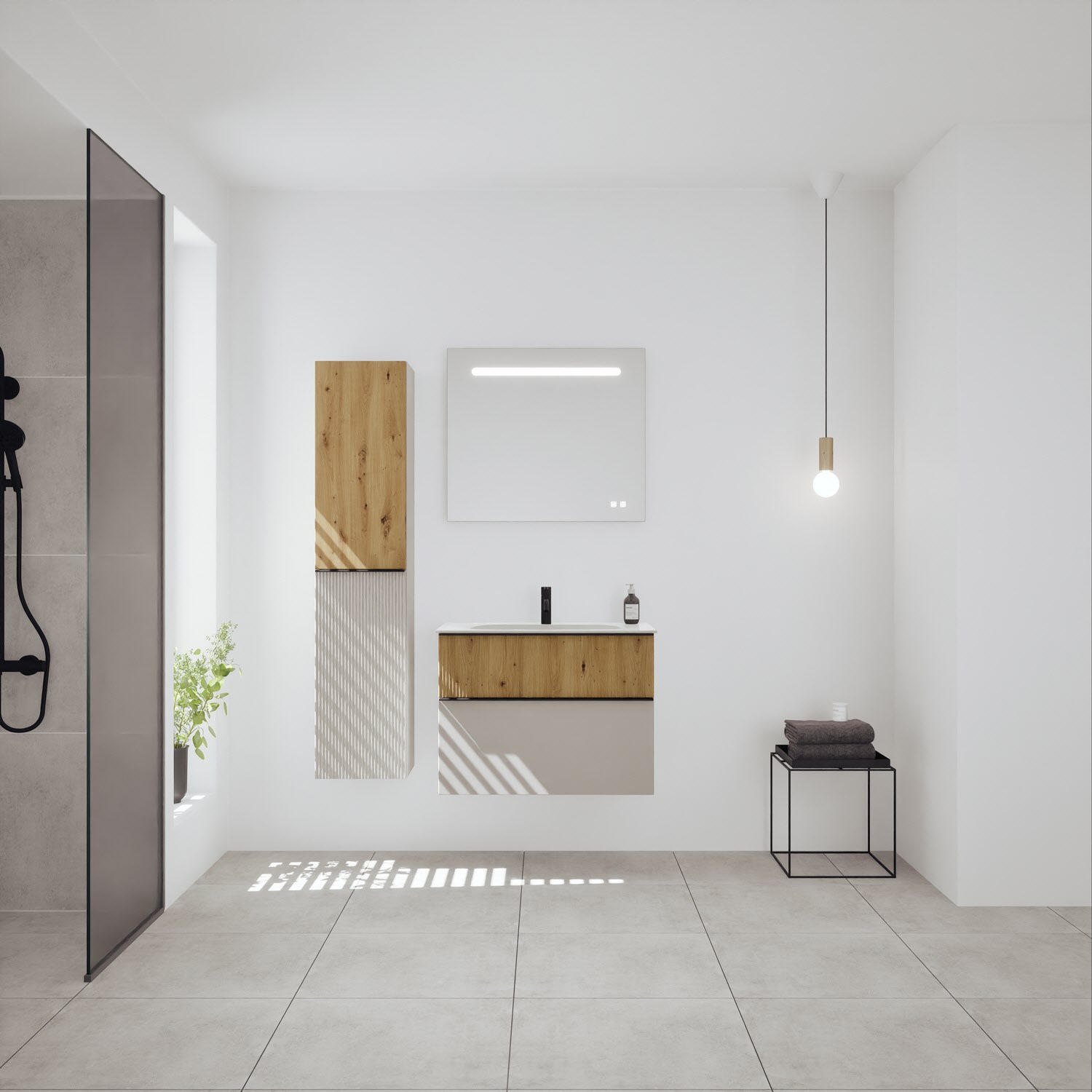burgbad Fiumo 2.0 Mineralguss-Waschtisch mit Waschtischunterschrank 82 cm, mit Griff G0200
