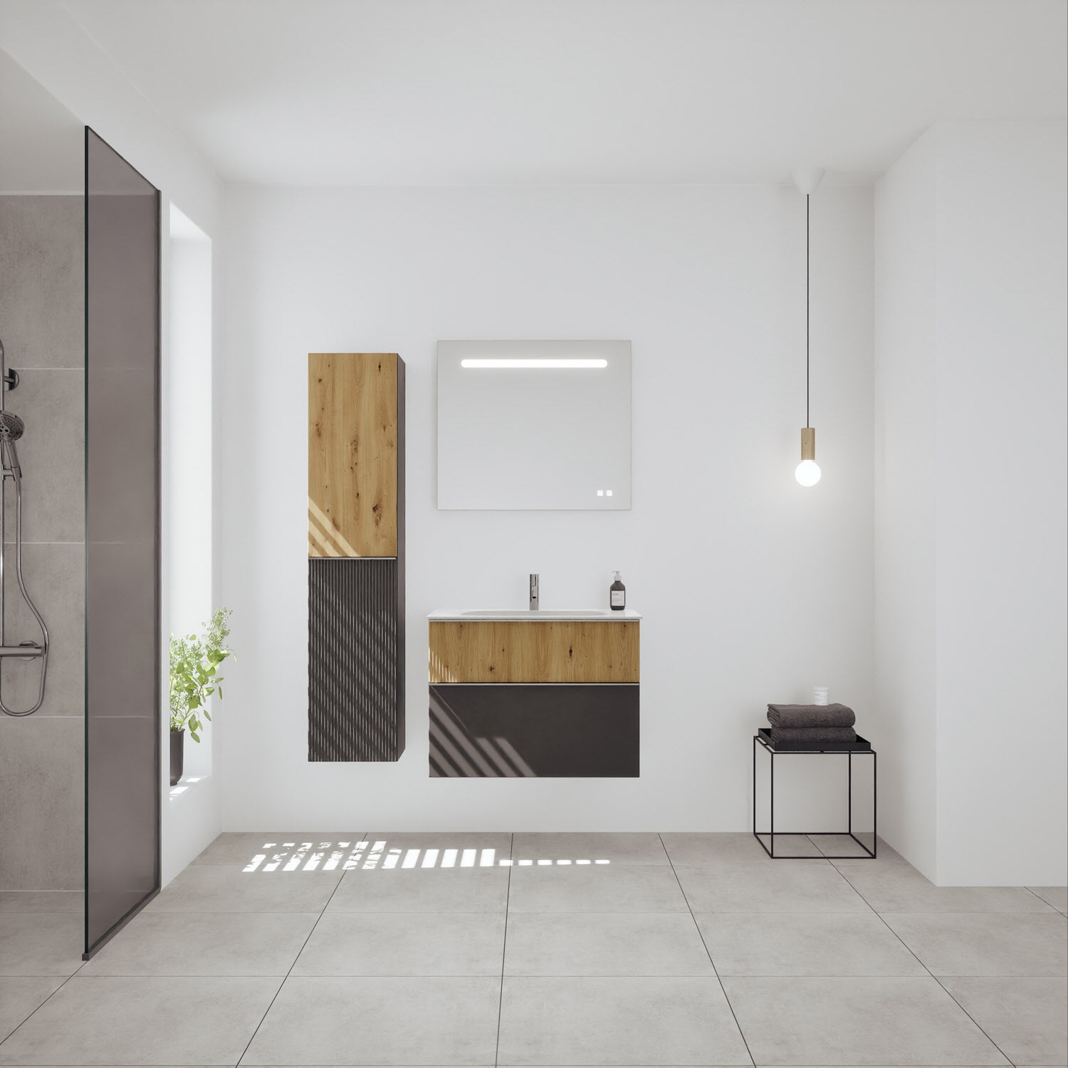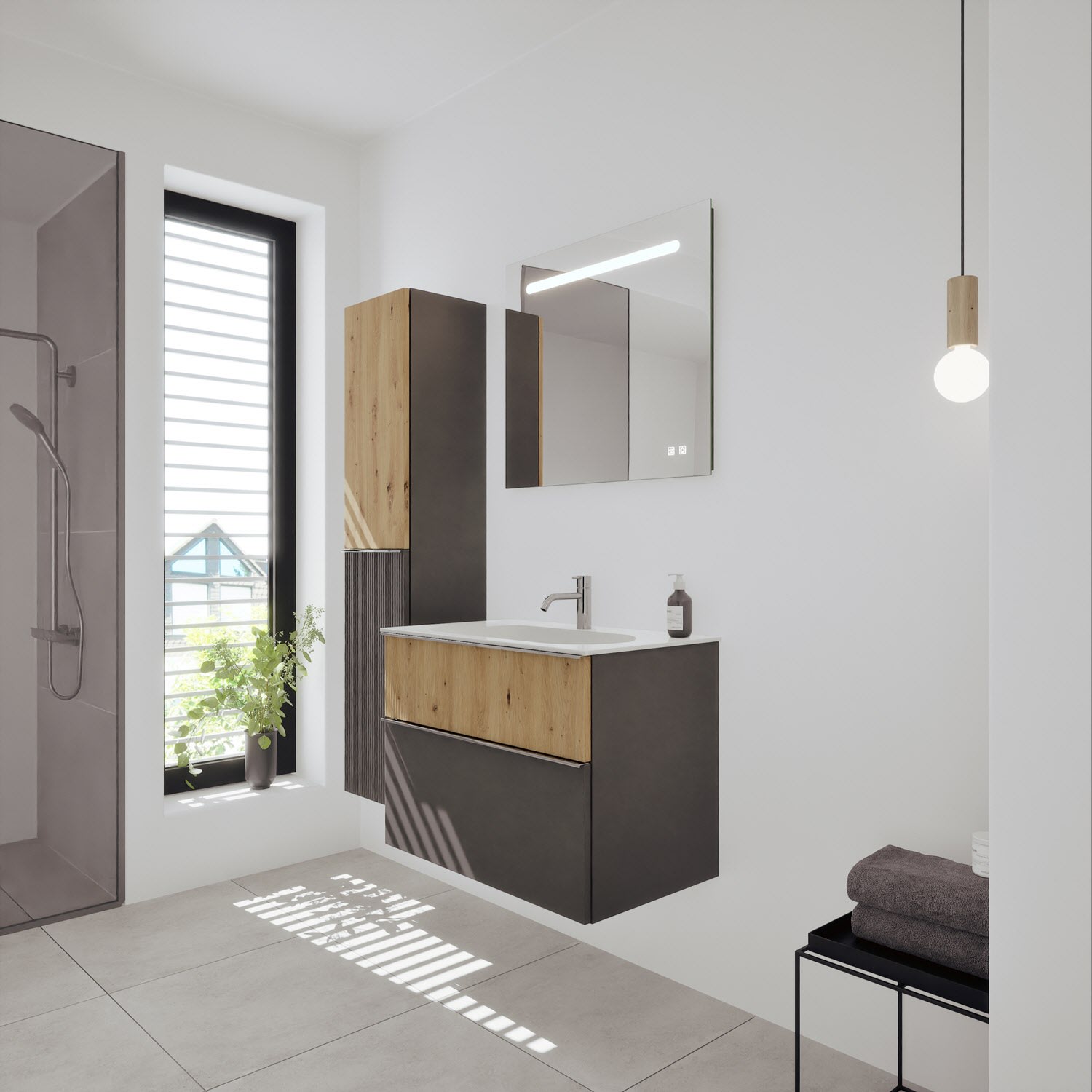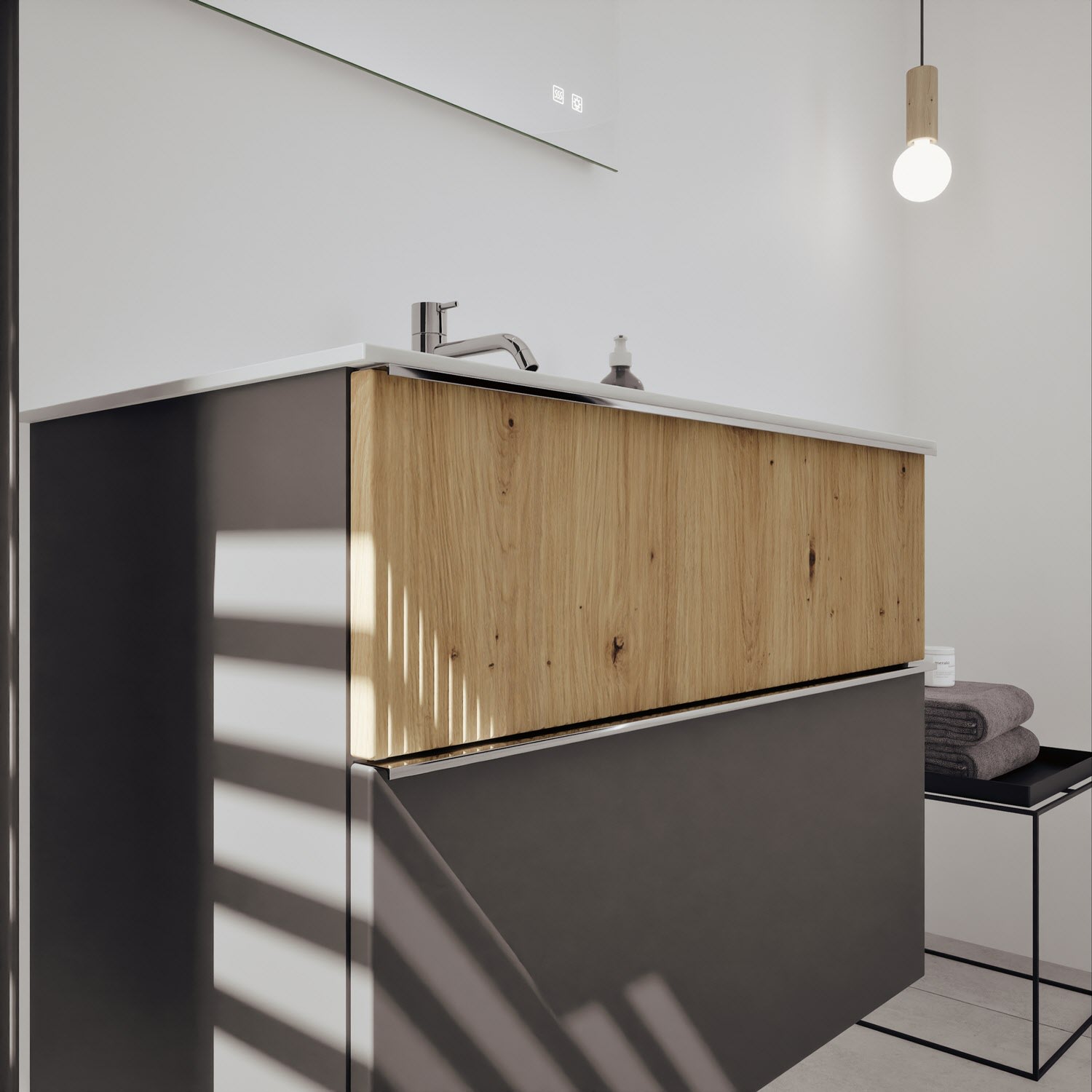 burgbad Fiumo 2.0 Mineralguss-Waschtisch mit Waschtischunterschrank 82 cm, mit Griff G0146