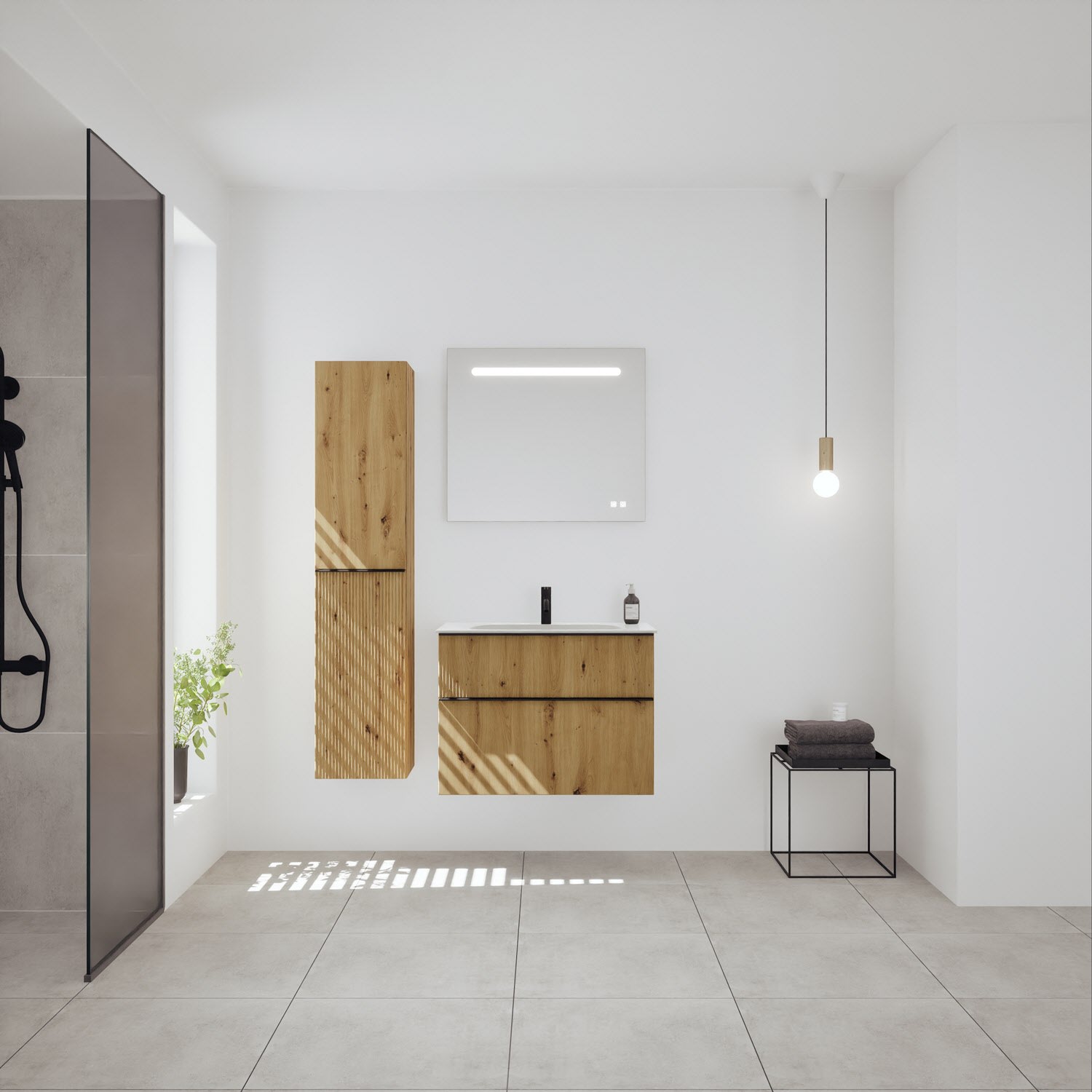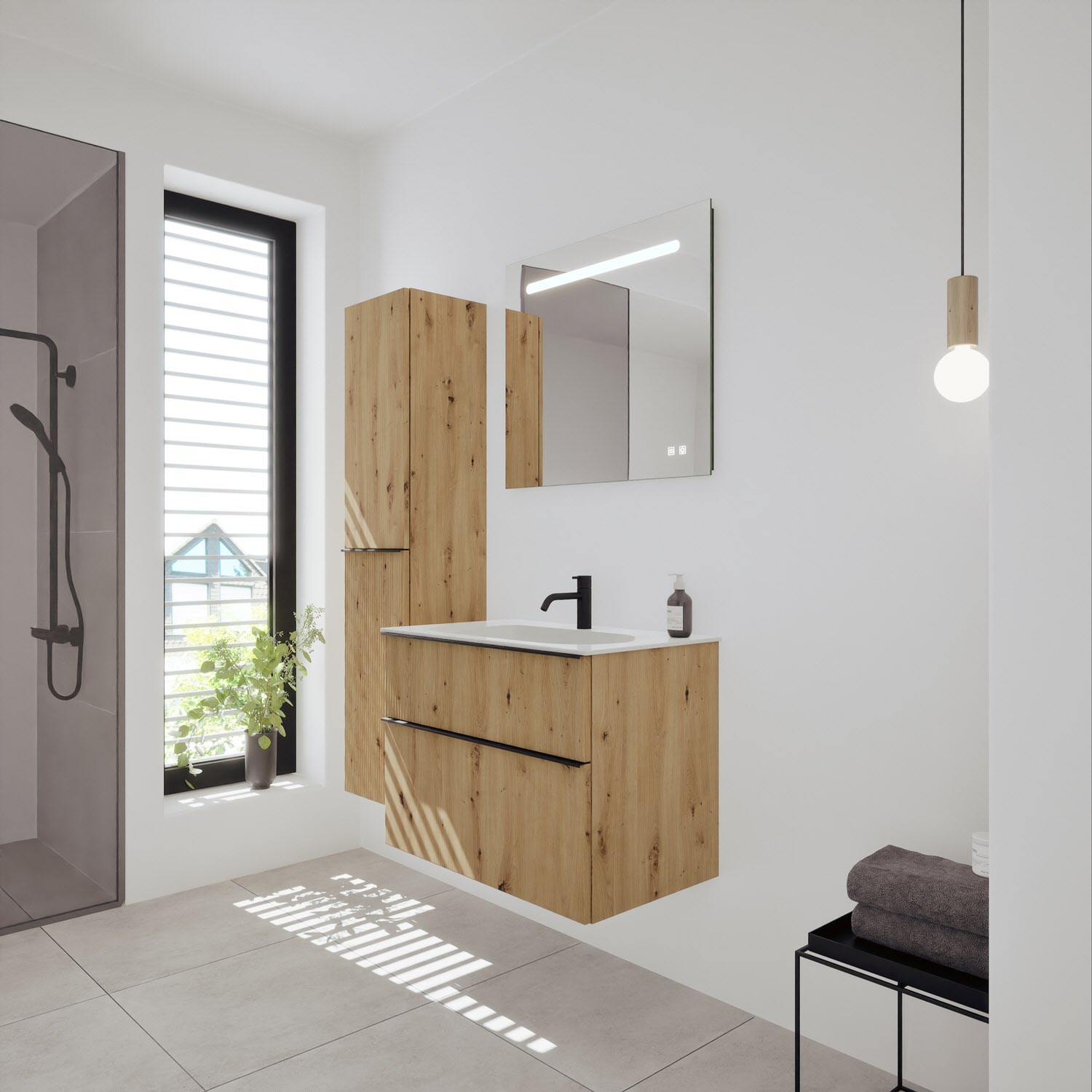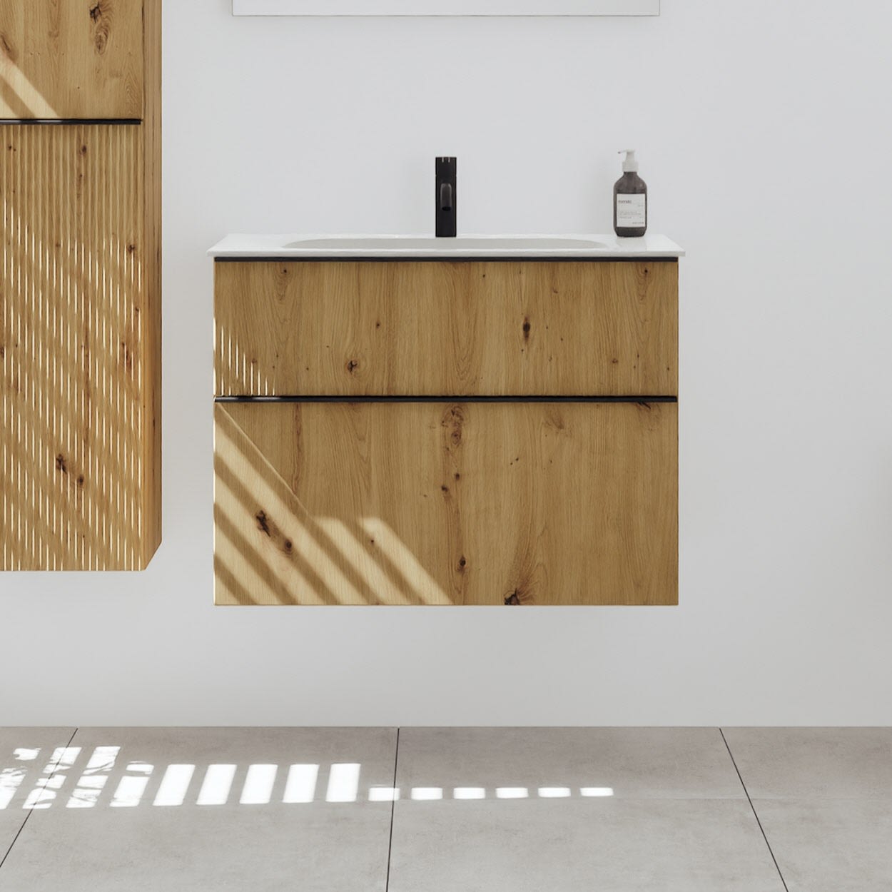 burgbad Fiumo 2.0 Mineralguss-Waschtisch mit Waschtischunterschrank 82 cm, mit Griff G0200