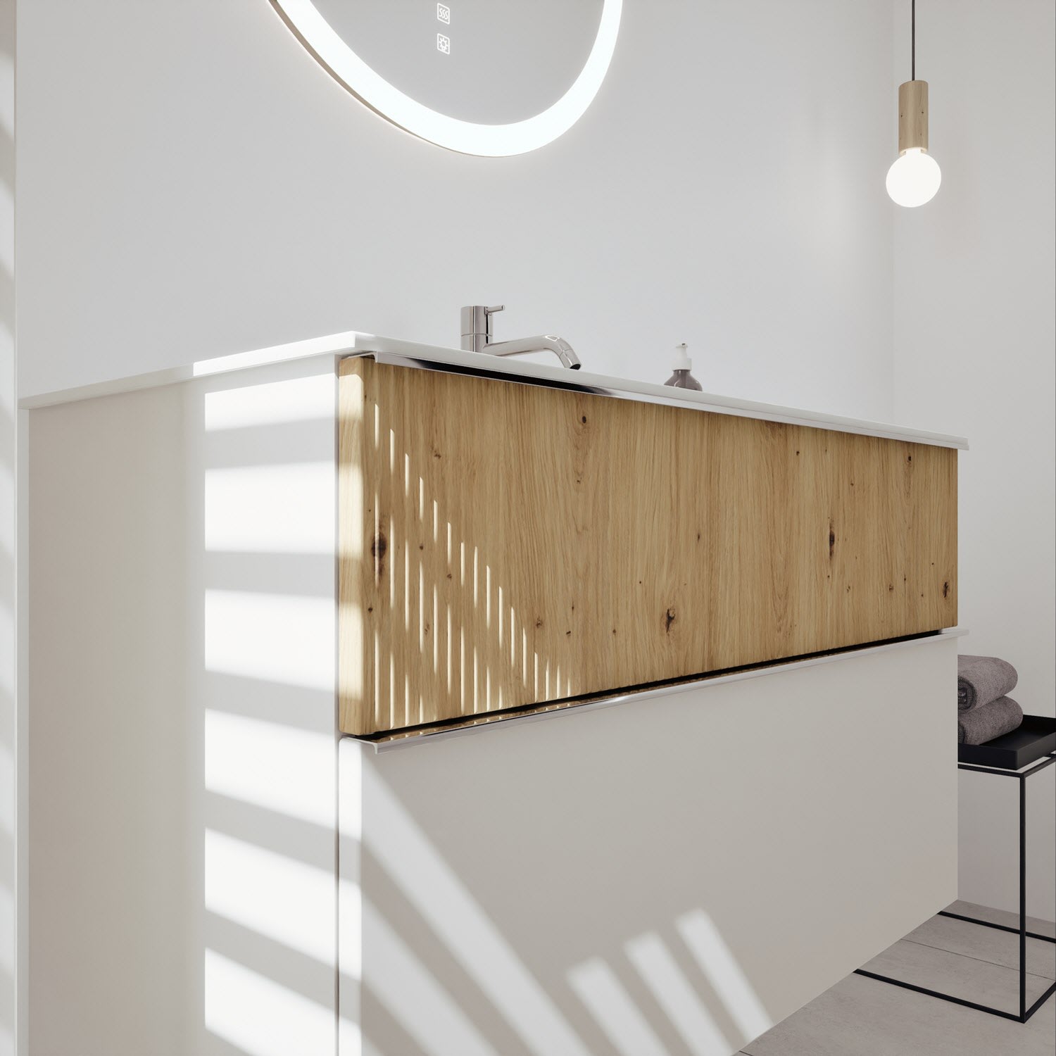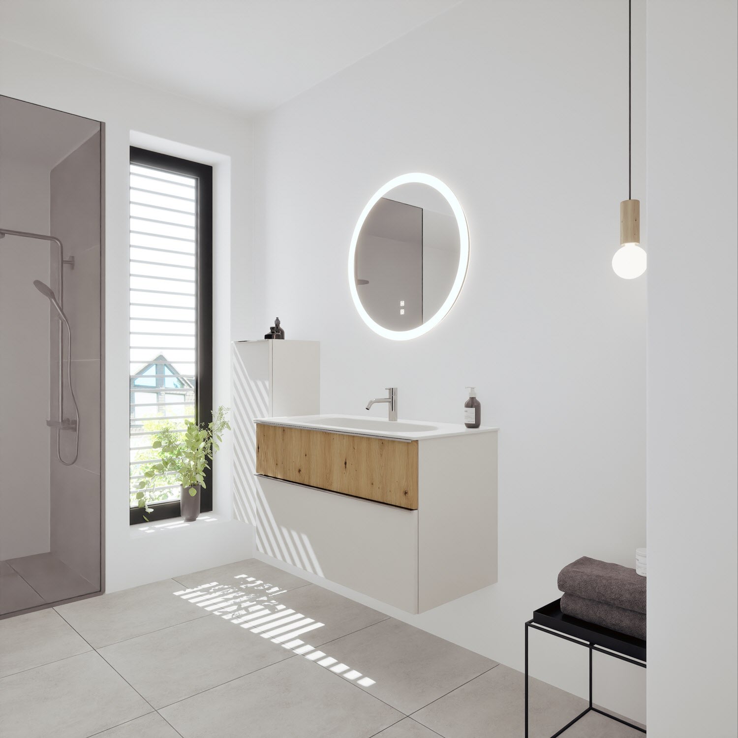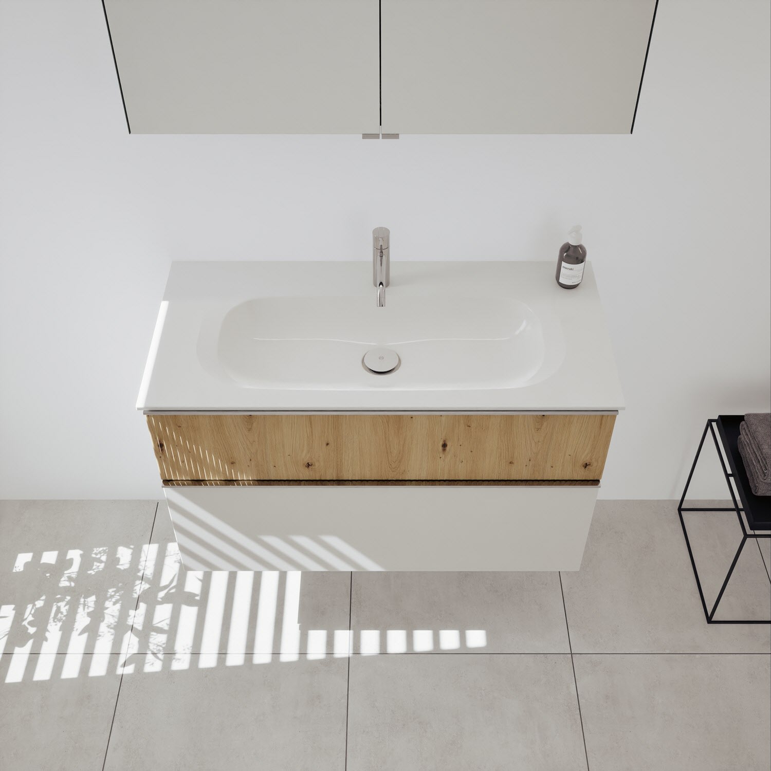 burgbad Fiumo 2.0 Mineralguss-Waschtisch mit Waschtischunterschrank 102 cm, mit Griff G0146