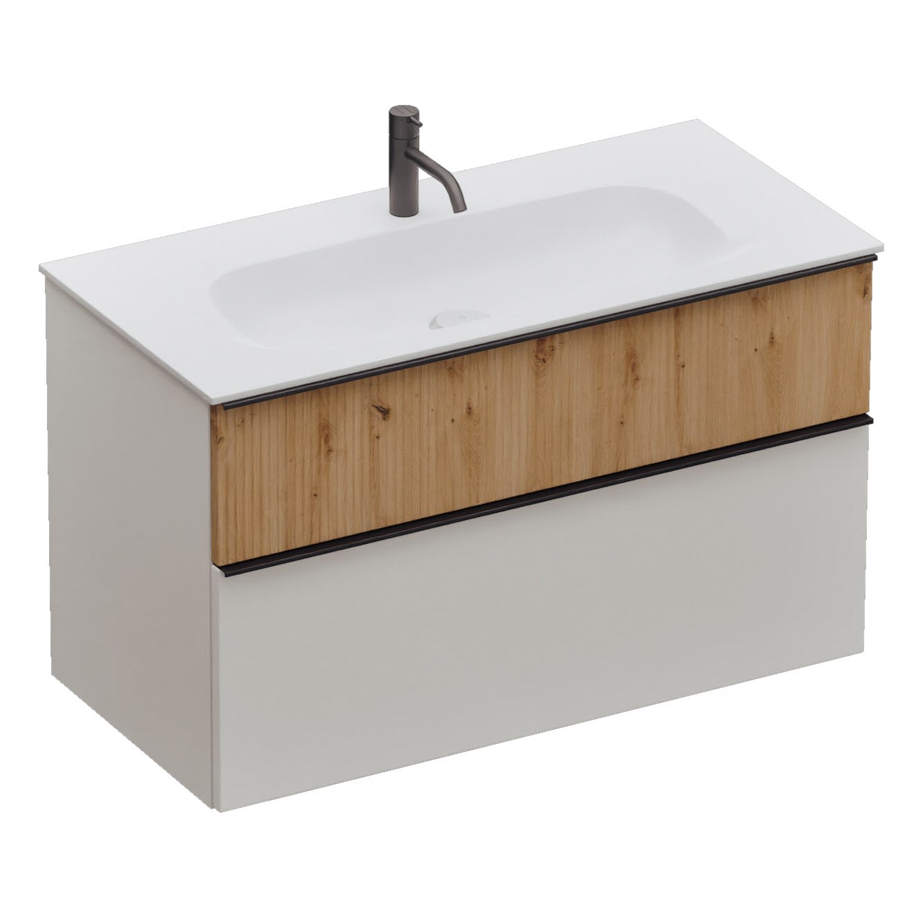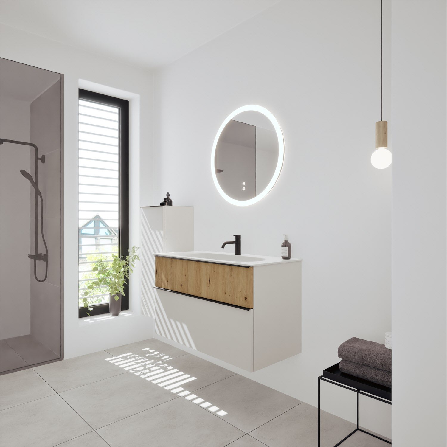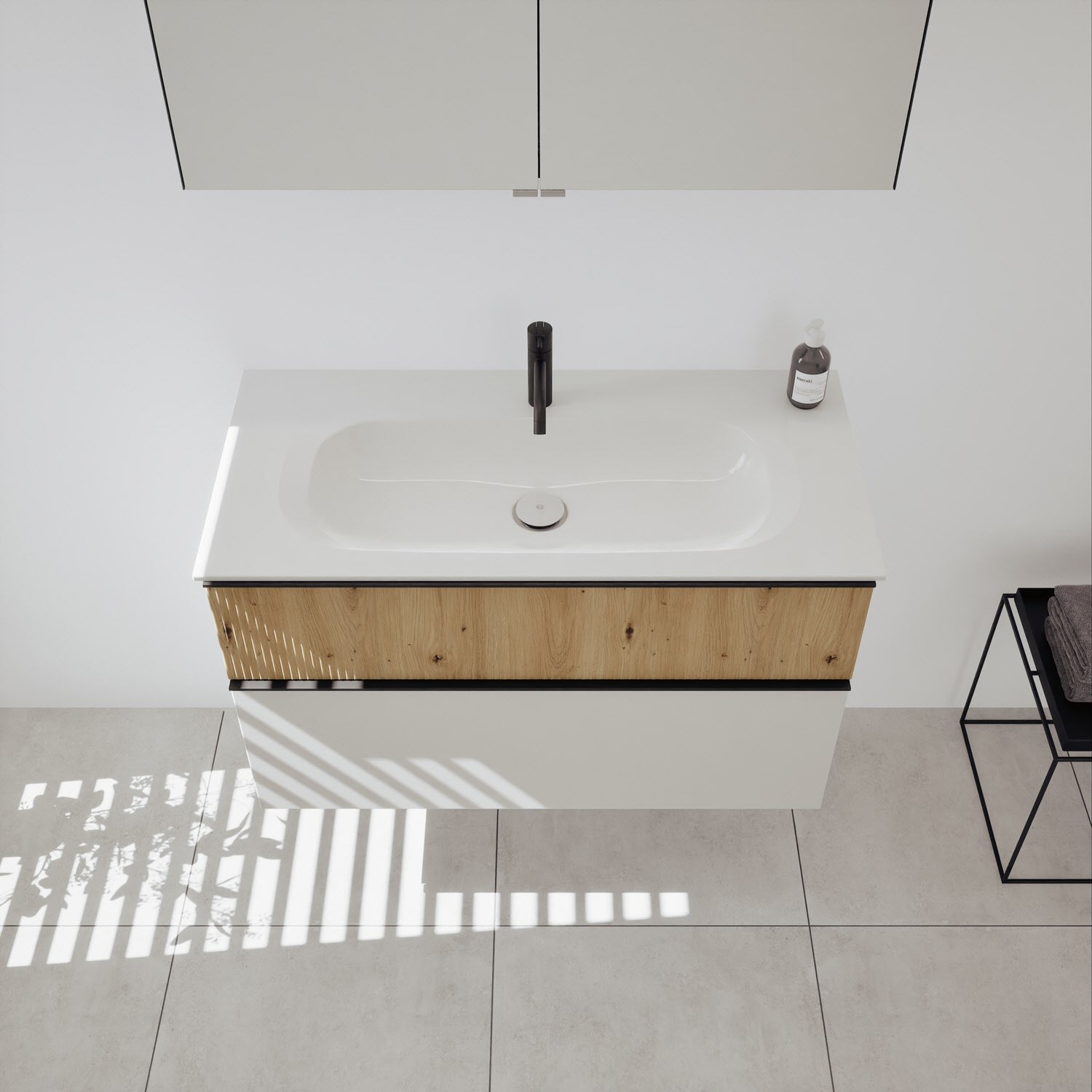 burgbad Fiumo 2.0 Mineralguss-Waschtisch mit Waschtischunterschrank 102 cm, mit Griff G0200