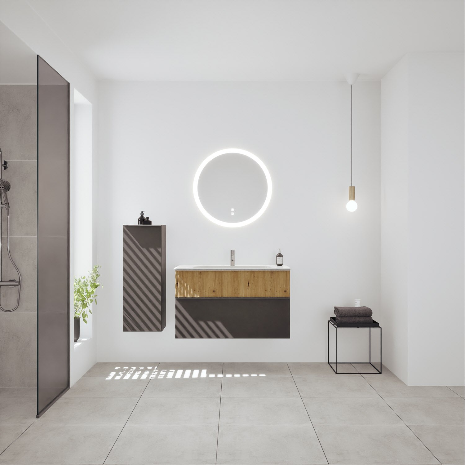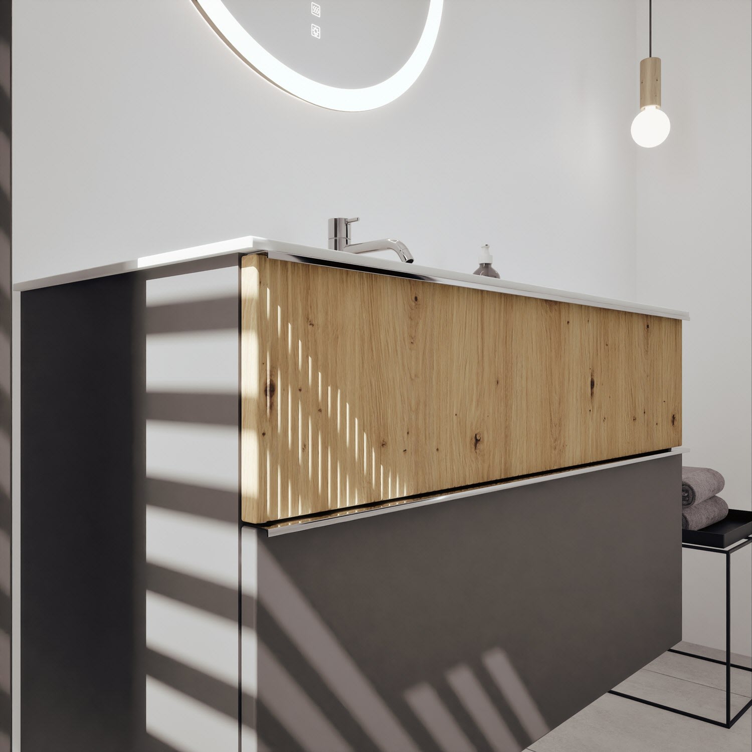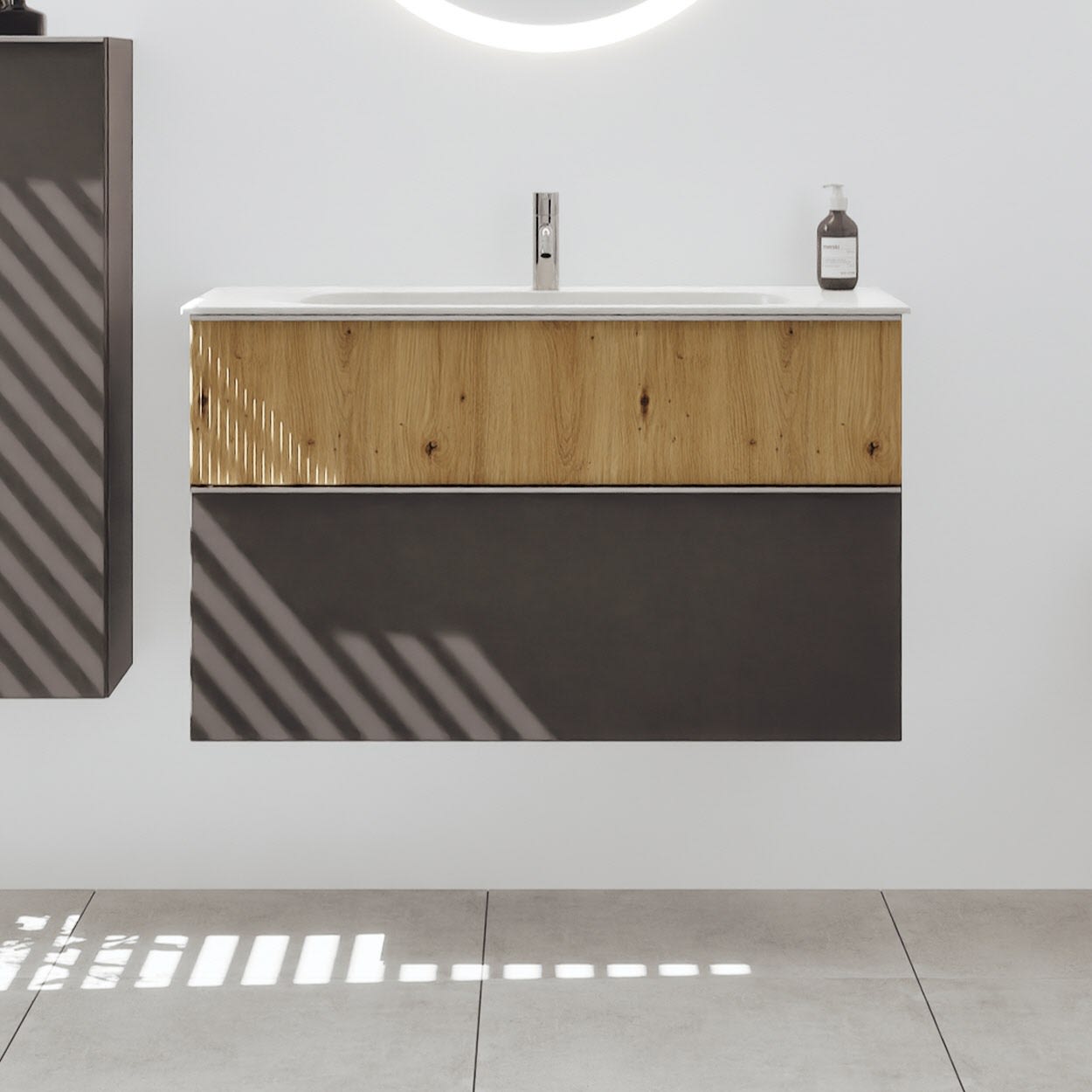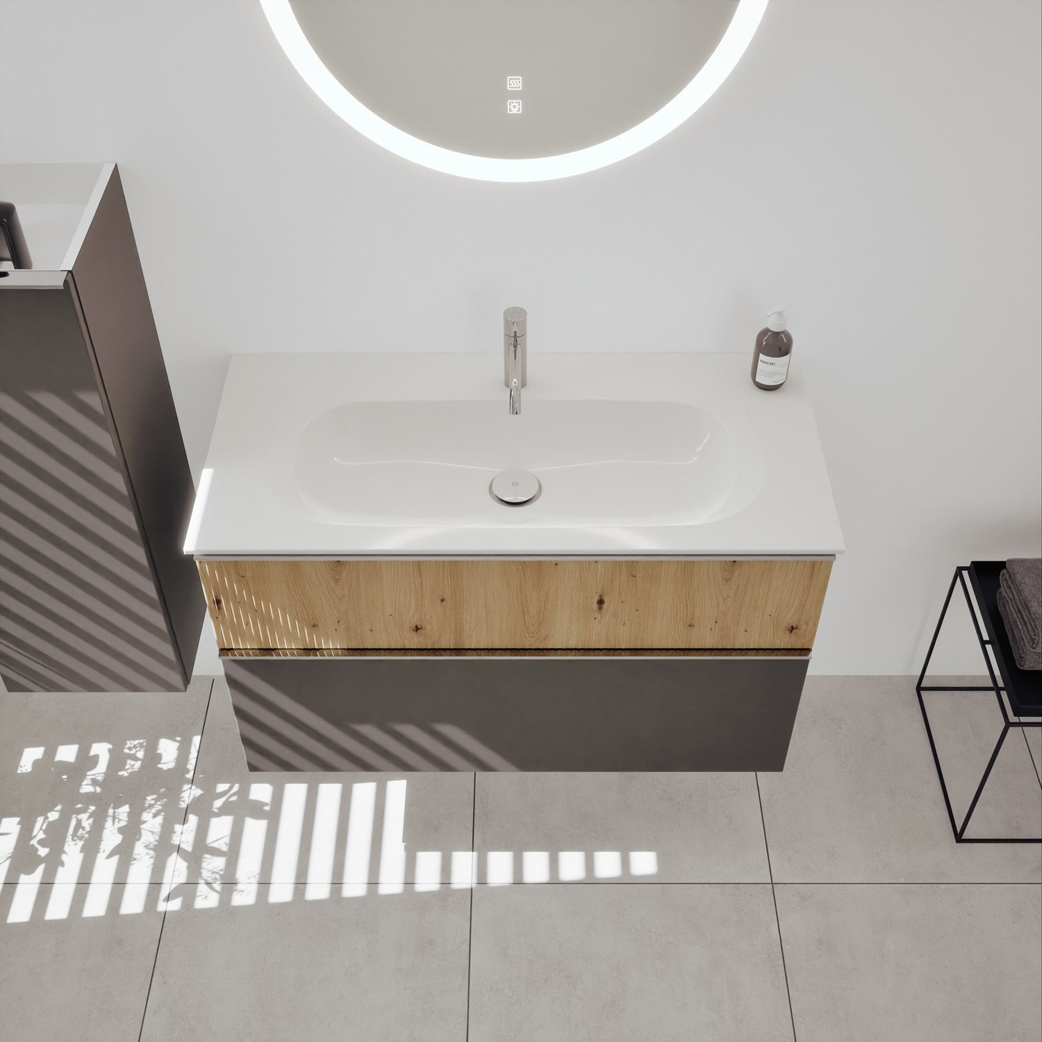 burgbad Fiumo 2.0 Mineralguss-Waschtisch mit Waschtischunterschrank 102 cm, mit Griff G0146