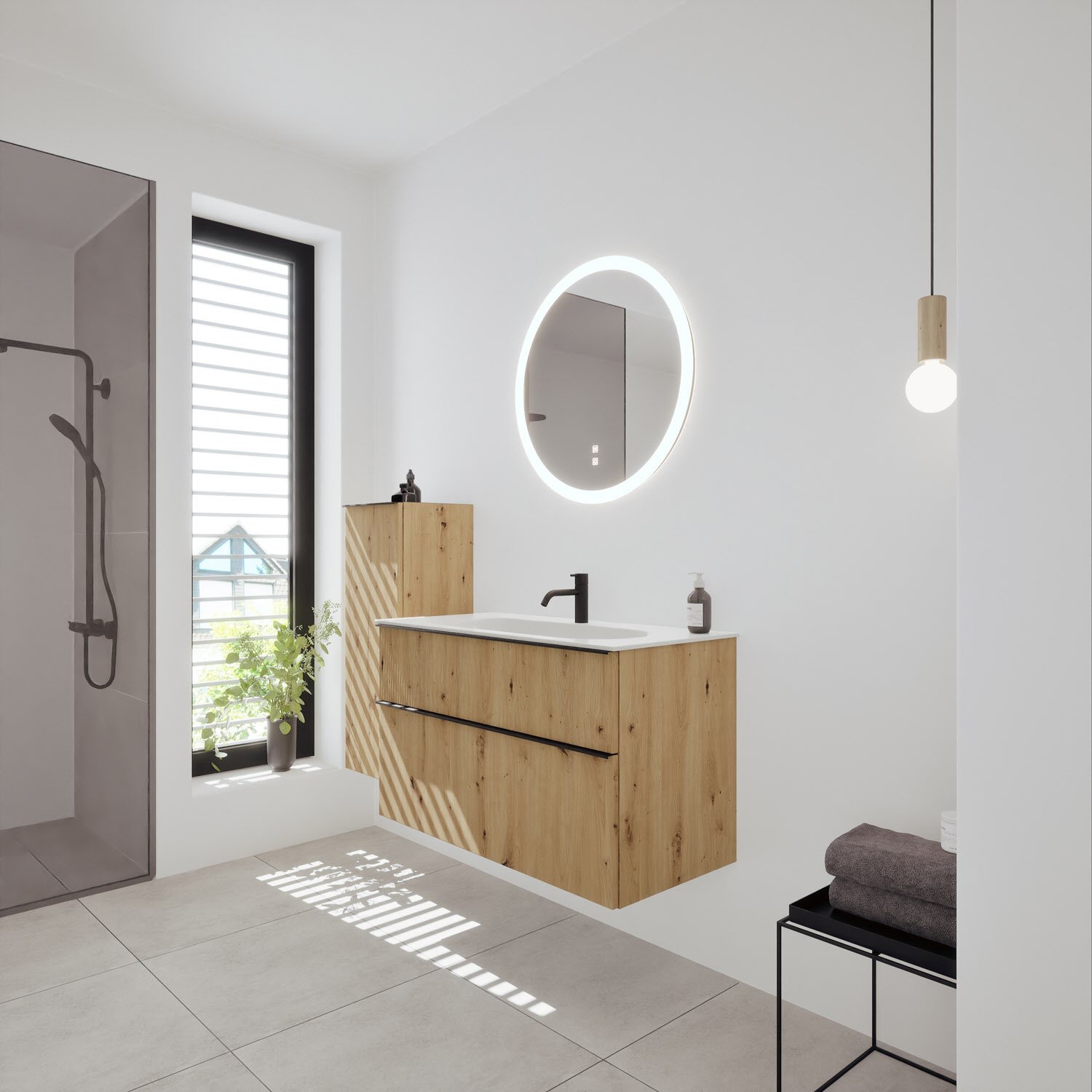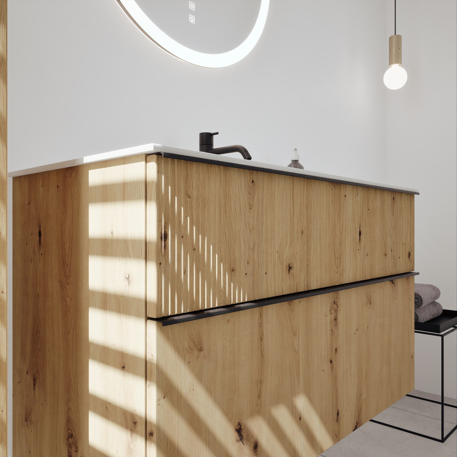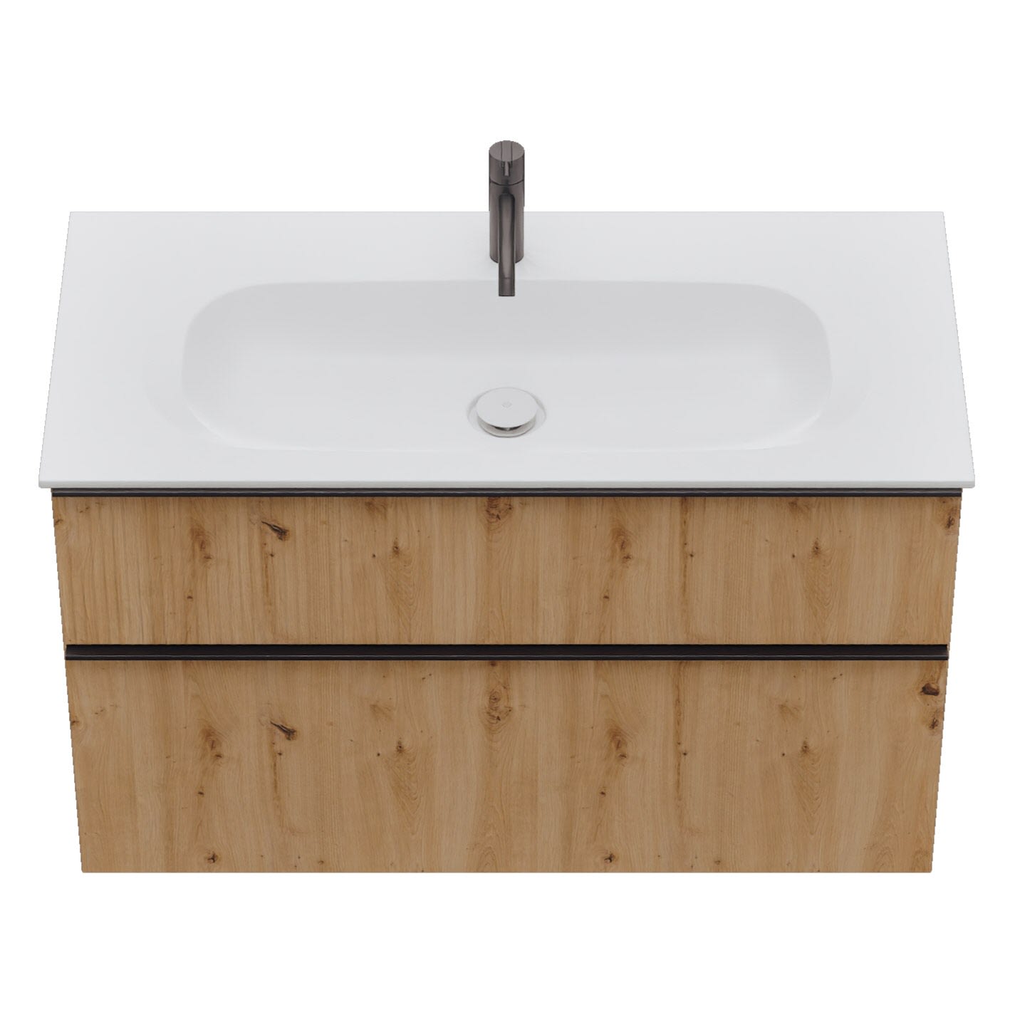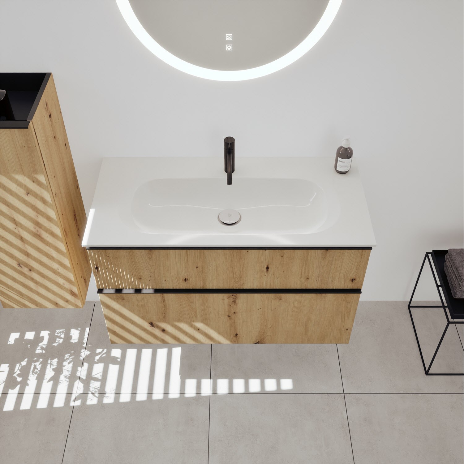 burgbad Fiumo 2.0 Mineralguss-Waschtisch mit Waschtischunterschrank 102 cm, mit Griff G0200
