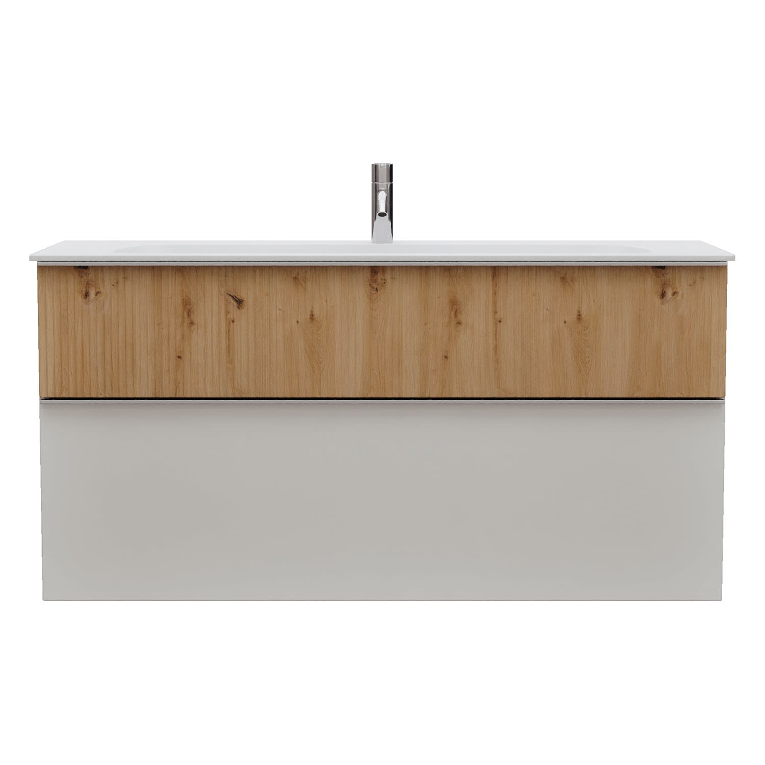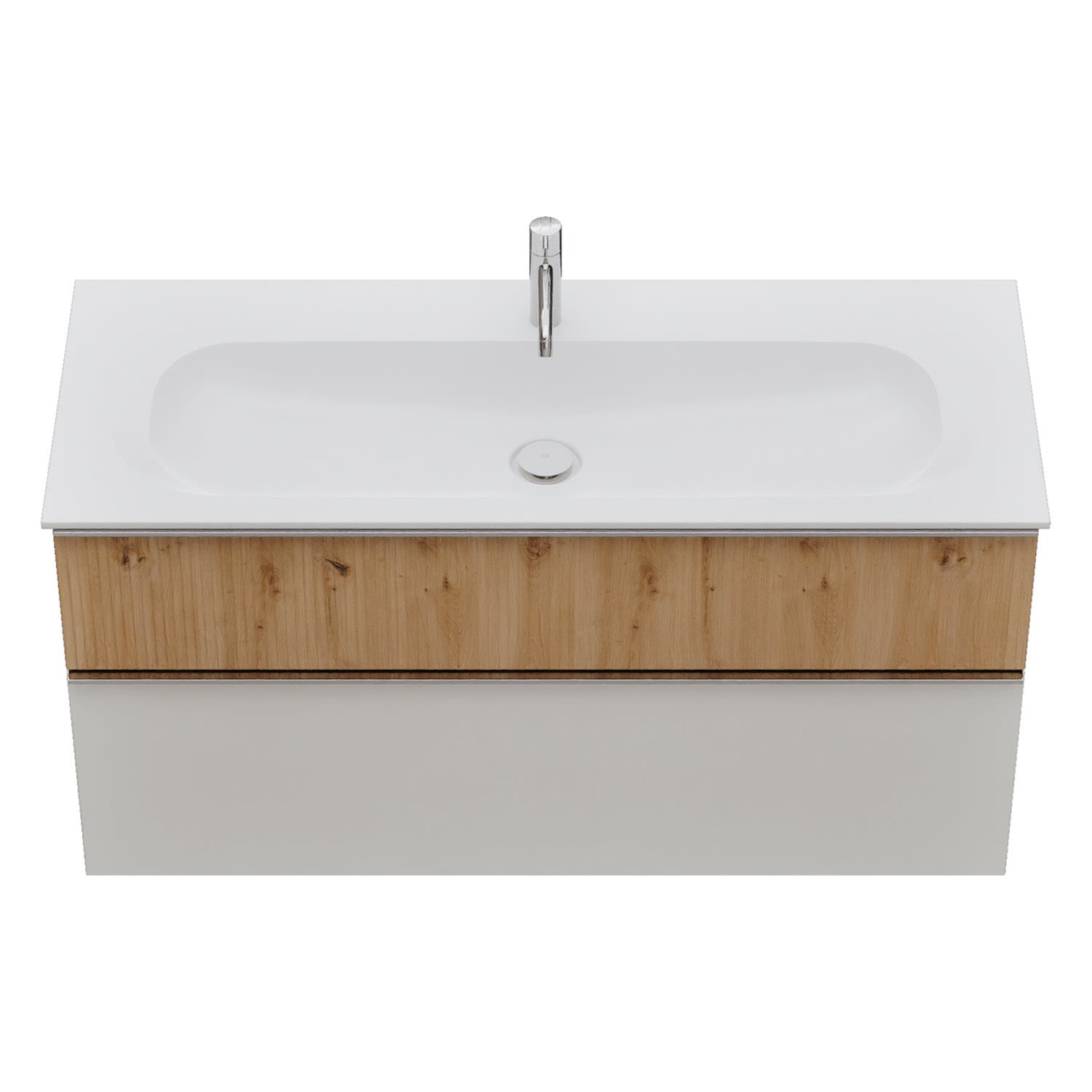 - 1 Schublade oben: 35 cm tief, mit vertikaler Struktur inkl. Siphonausschnitt und Inneneinteilung