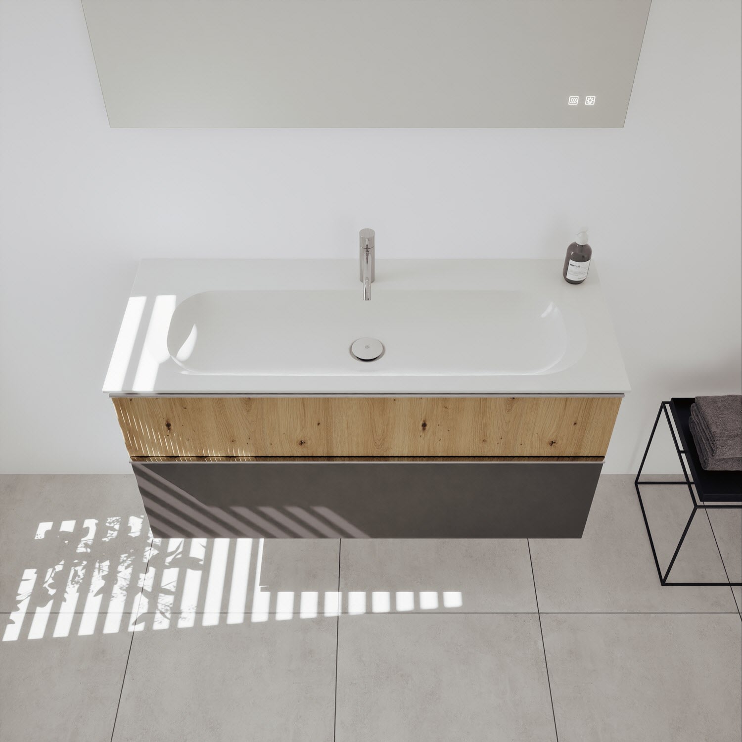 burgbad Fiumo 2.0 Mineralguss-Waschtisch mit Waschtischunterschrank 122 cm, mit Griff G0146