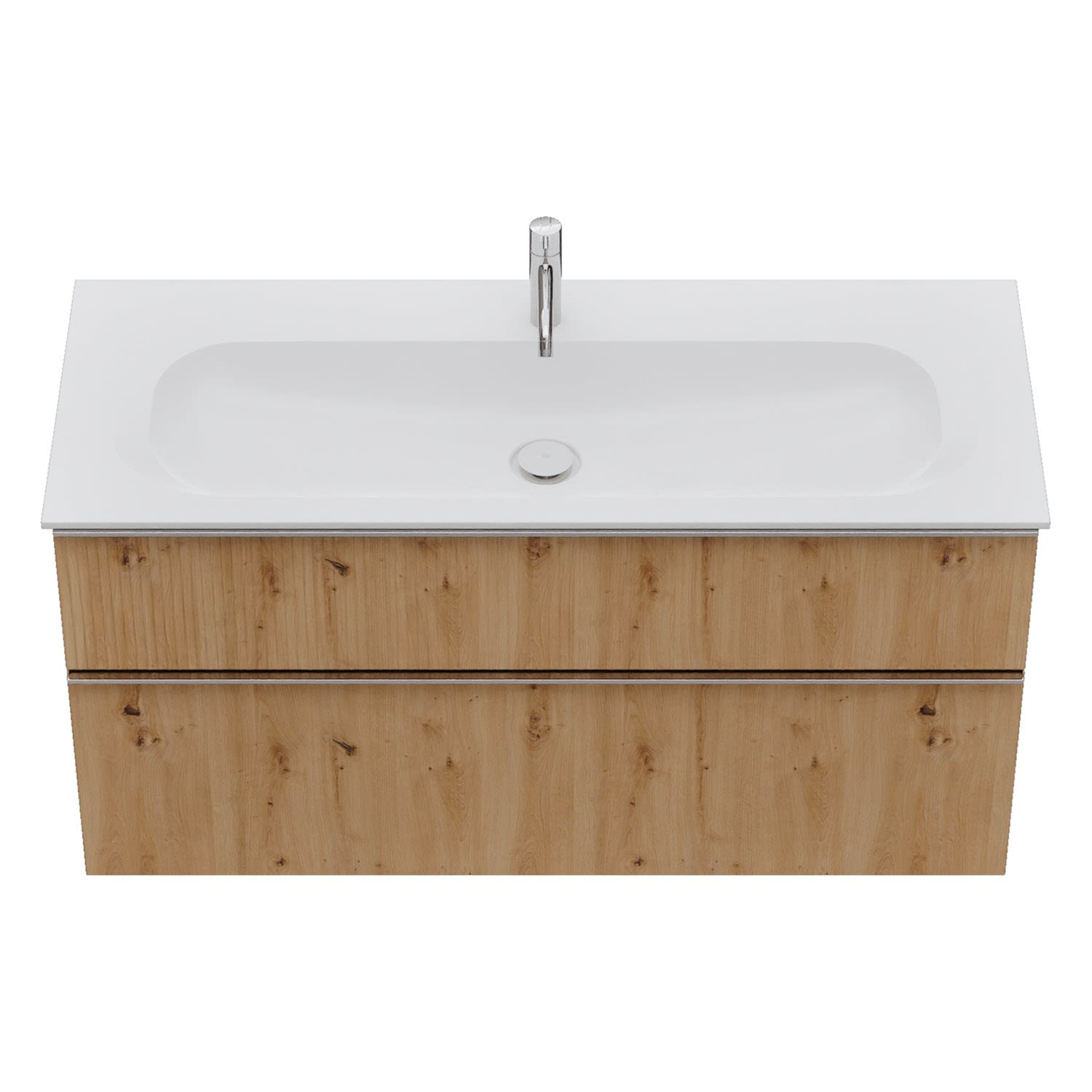 - 1 Schublade oben: 35 cm tief, mit vertikaler Struktur inkl. Siphonausschnitt und Inneneinteilung