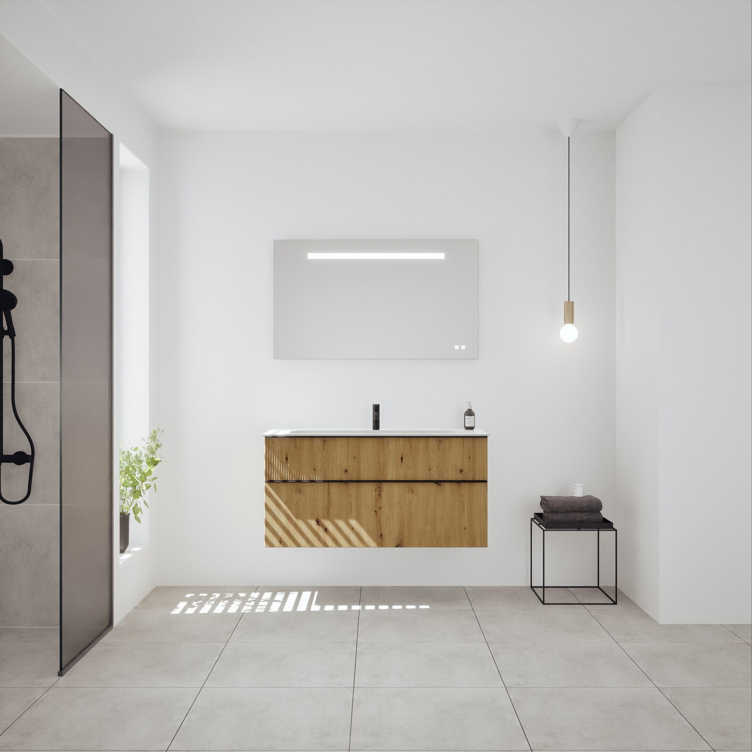 burgbad Fiumo 2.0 Badmöbelset 142 cm mit Waschtisch mit Unterschrank mit Griff G0200 und Spiegelschrank