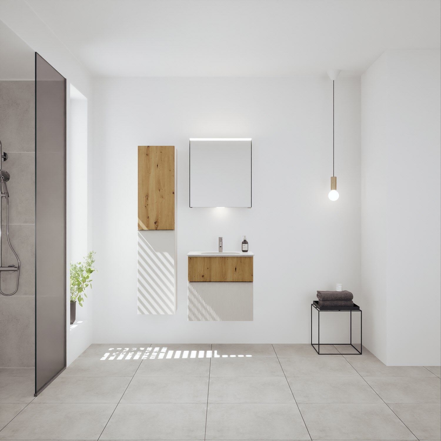 burgbad Fiumo 2.0 Mineralguss-Waschtisch mit Waschtischunterschrank 62 cm, mit Griff G0146