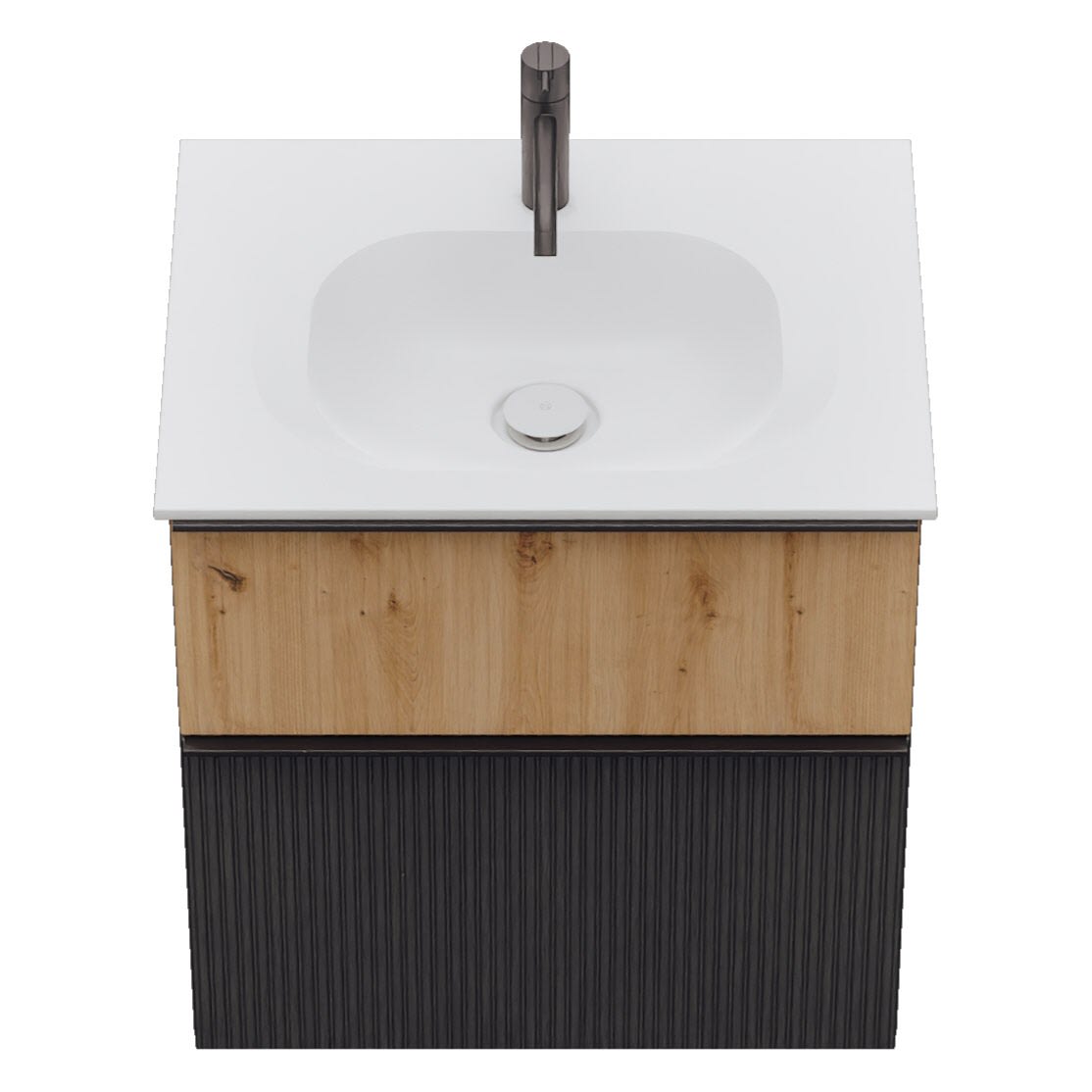 burgbad Fiumo 2.0 Mineralguss-Waschtisch mit Waschtischunterschrank 62 cm, mit Griff G0200