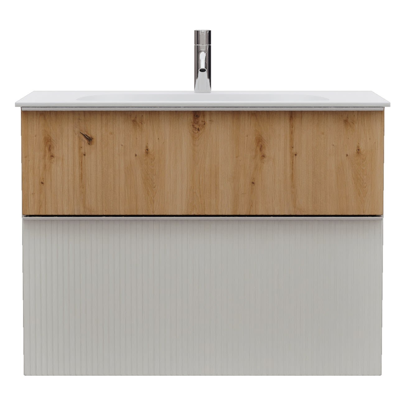 burgbad Fiumo 2.0 Mineralguss-Waschtisch mit Waschtischunterschrank 82 cm, mit Griff G0146