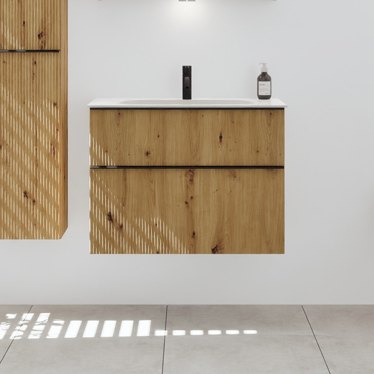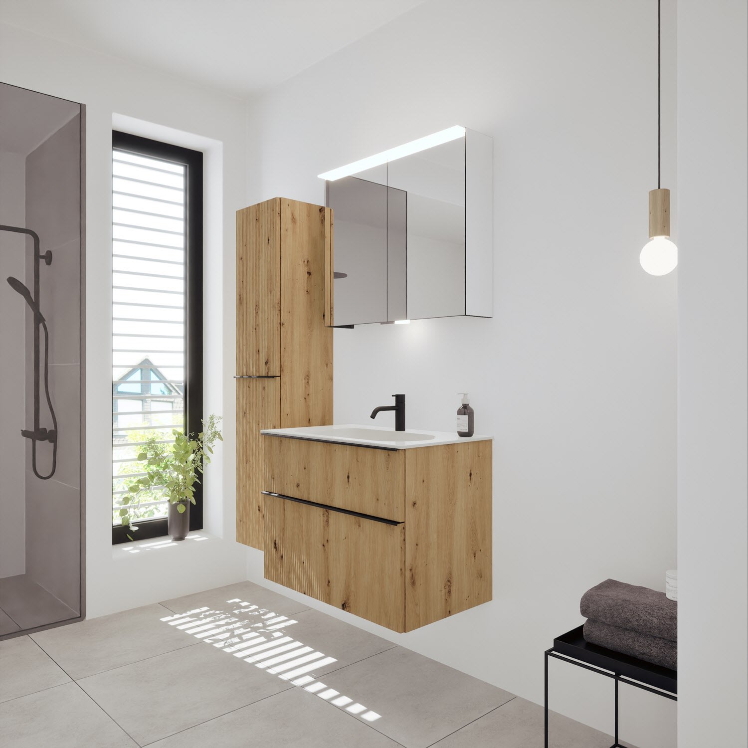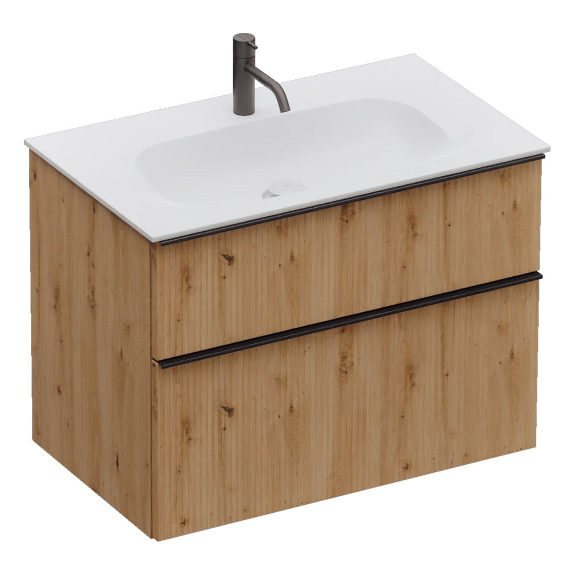 burgbad Fiumo 2.0 Mineralguss-Waschtisch mit Waschtischunterschrank 82 cm, mit Griff G0200