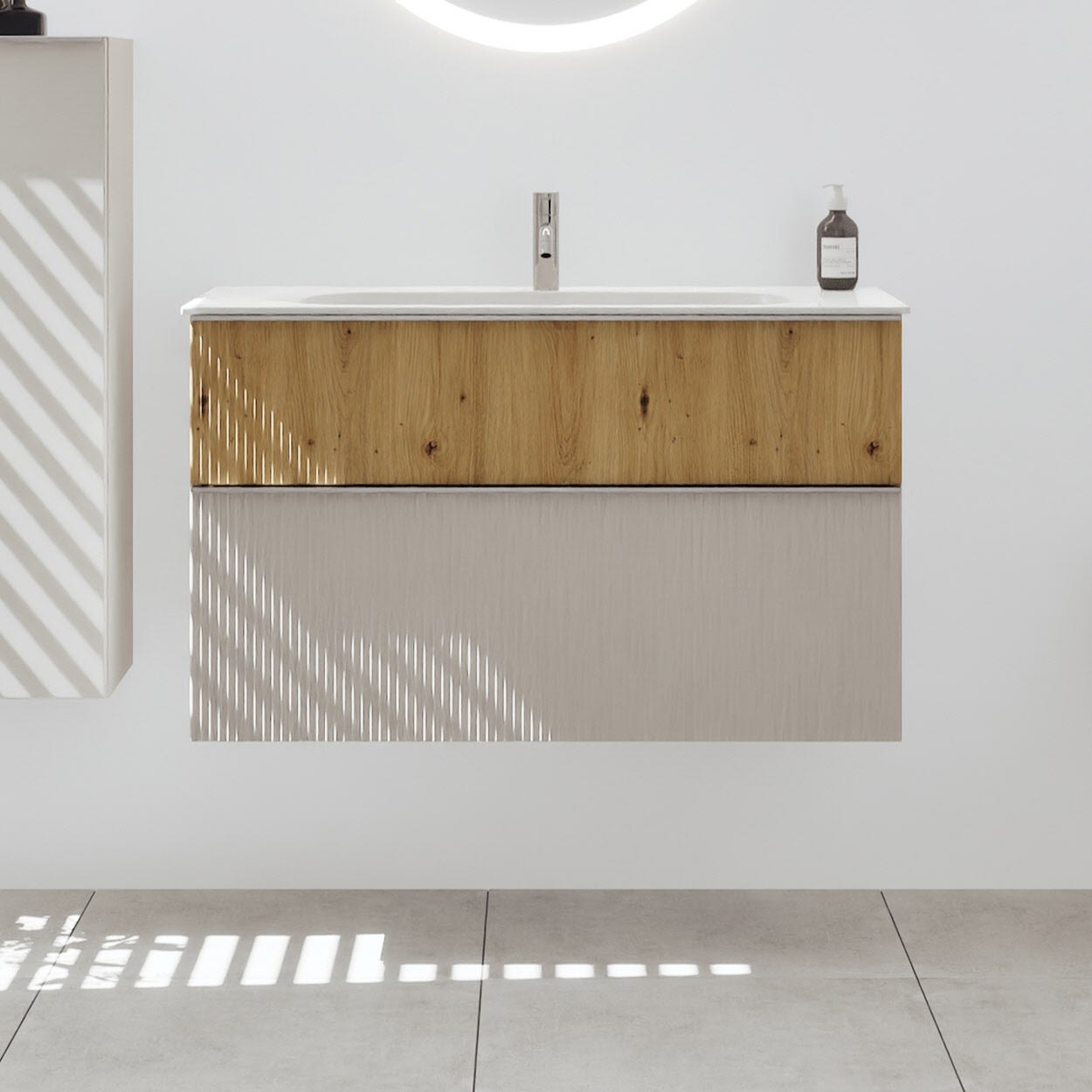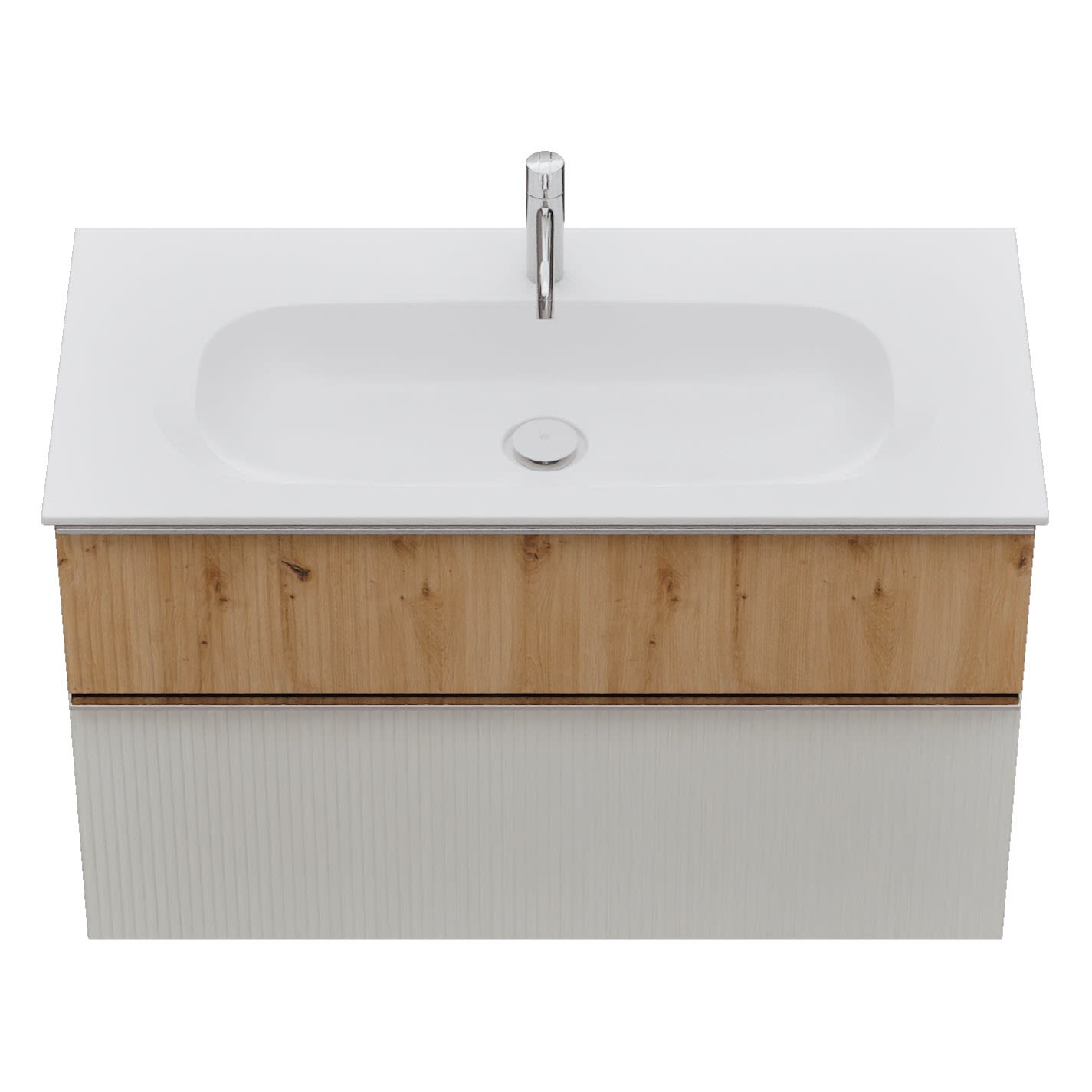 burgbad Fiumo 2.0 Mineralguss-Waschtisch mit Waschtischunterschrank 102 cm, mit Griff G0146