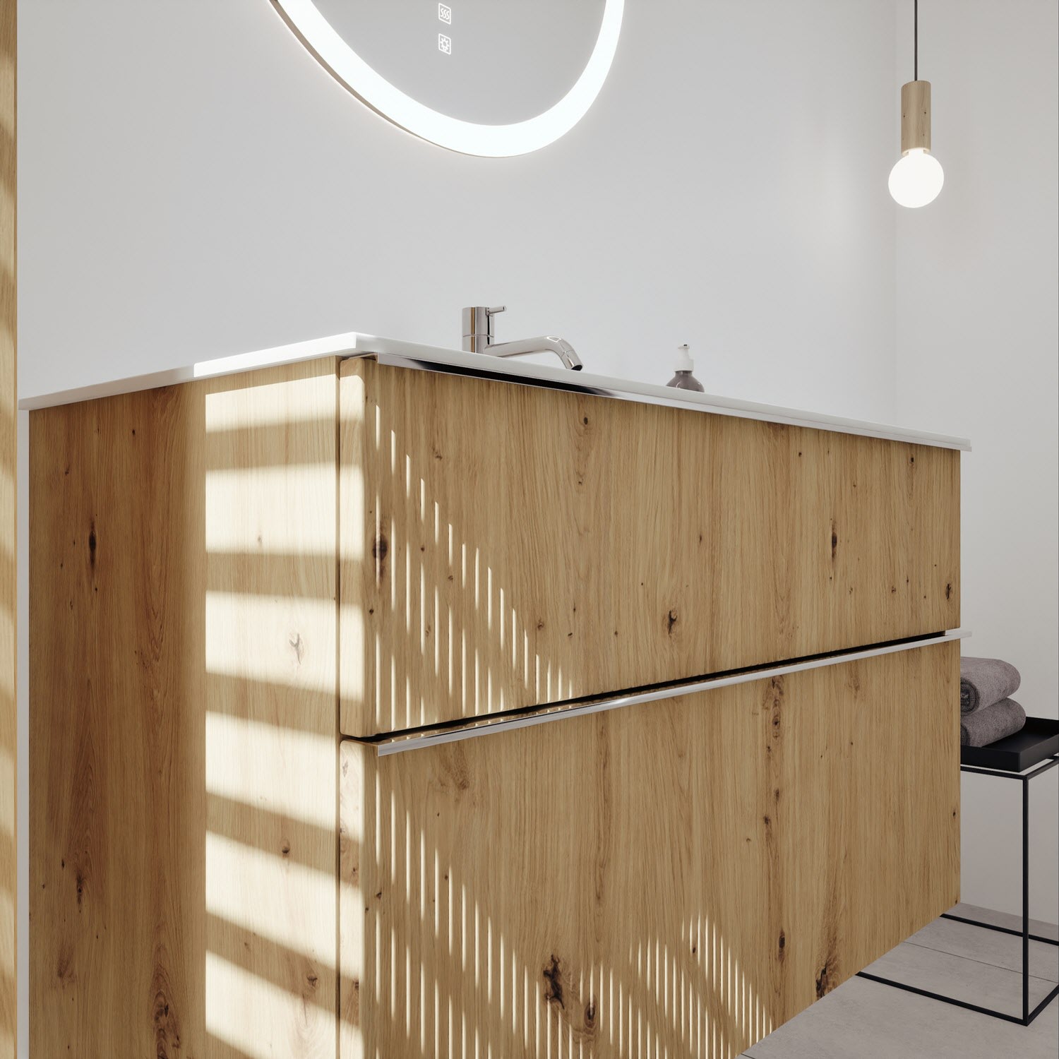 burgbad Fiumo 2.0 Mineralguss-Waschtisch mit Waschtischunterschrank 102 cm, mit Griff G0146