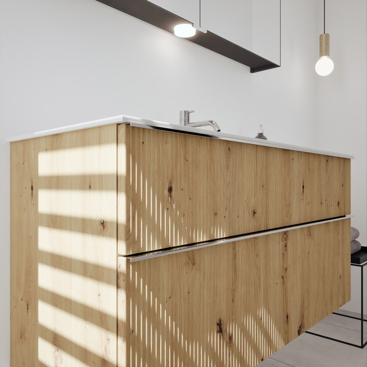 burgbad Fiumo 2.0 Mineralguss-Waschtisch mit Waschtischunterschrank 122 cm, mit Griff G0146