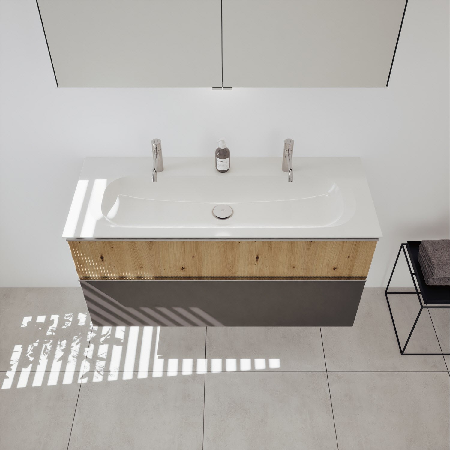 burgbad Fiumo 2.0 Mineralguss-Waschtisch mit Waschtischunterschrank 122 cm, mit Griff G0146