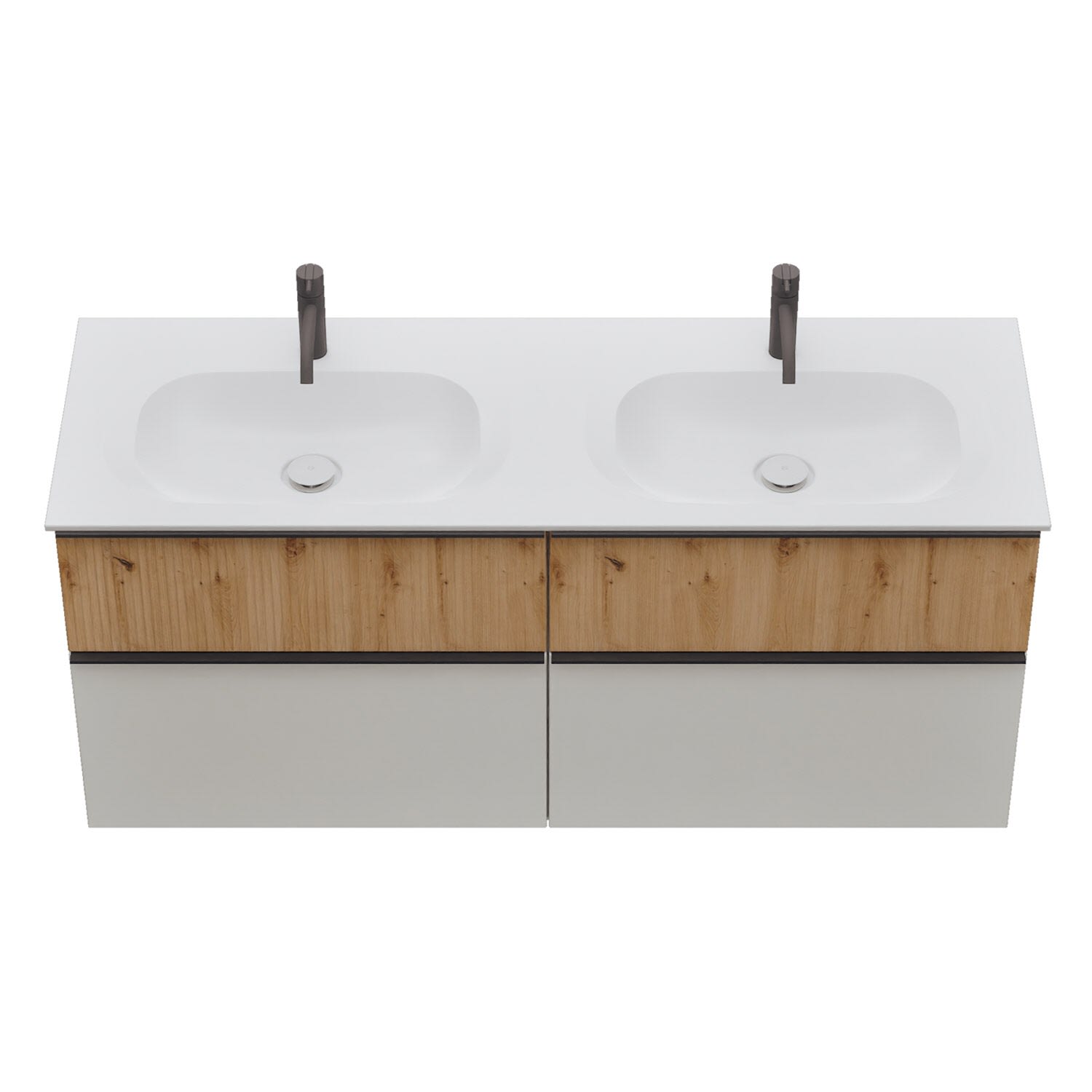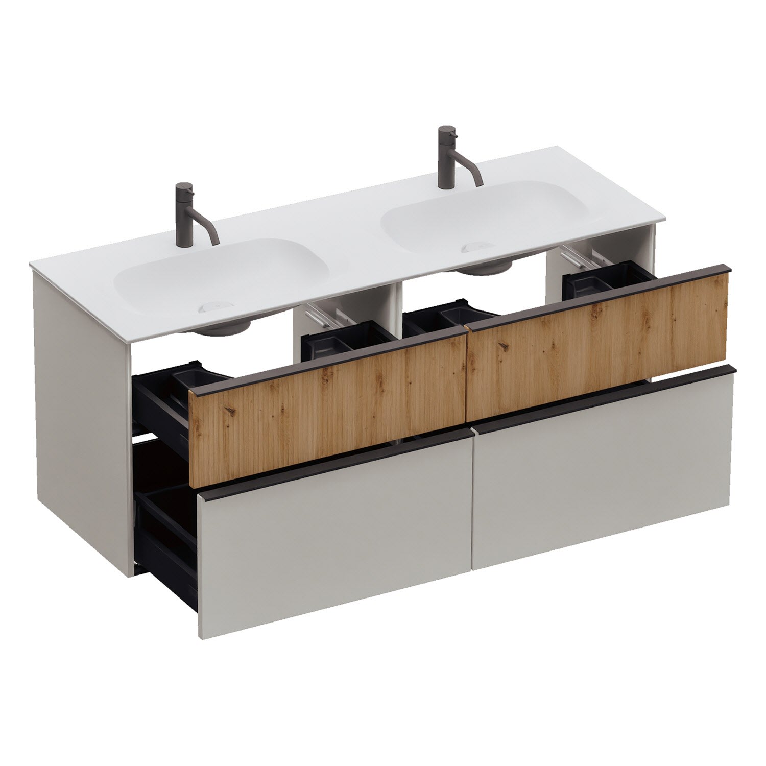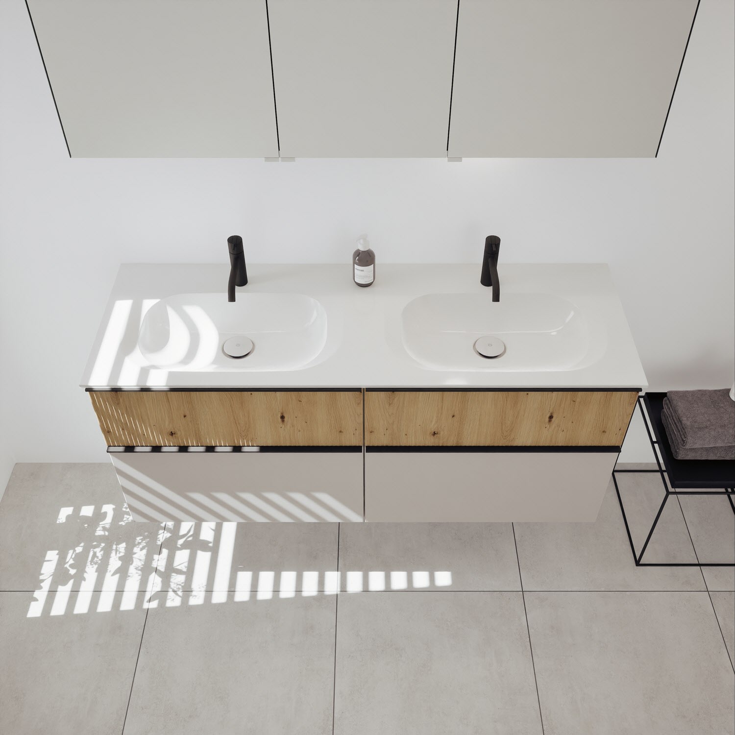 burgbad Fiumo 2.0 Mineralguss-Waschtisch mit Waschtischunterschrank 142 cm, mit Griff G0200