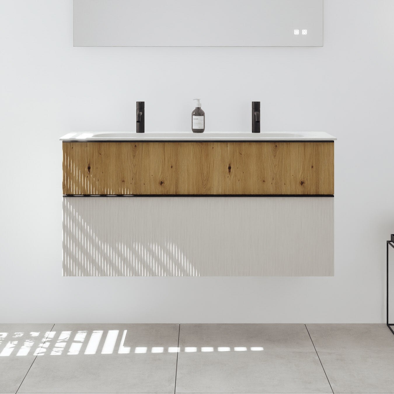 burgbad Fiumo 2.0 Mineralguss-Waschtisch mit Waschtischunterschrank 122 cm, mit Griff G0200