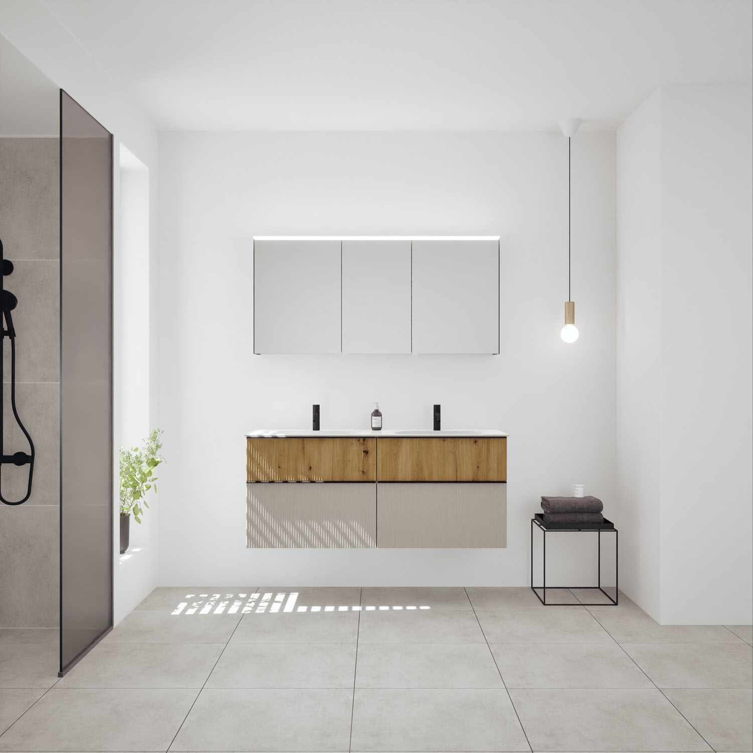 burgbad Fiumo 2.0 Spiegelschrank 140,6 cm mit LED-Aufsatzleuchte und Waschplatzbeleuchtung, 3 Spiegeltüren